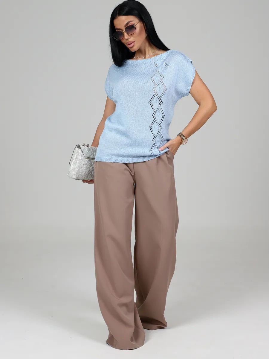 Футболка летняя вязаная - настоящая находка для ценителей стильных и комфортных вещей. Ее ажурная отделка придает изысканный вид, добавляя немного ретро-стиля в ваш образ. Модный дизайн делает базовую футболку универсальной для любого случая - будь то вечерние прогулки или праздничные мероприятия. Нарядная футболка с приталенной посадкой замечательно впишется в образ любой модницы. Однотонная футболка с вырезом лодочка станет замечательным подарком на любой праздник. Большие размеры и удобный свободный крой делают эту оверсайз футболку идеальным выбором как для беременных, так и для высоких и невысоких женщин. Классическая футболка с длинной посадкой и авторским рисунком в виде ромбов подойдет для офиса, школы и для домашнего отдыха. Она подходит для девушек и женщин всех возрастов.