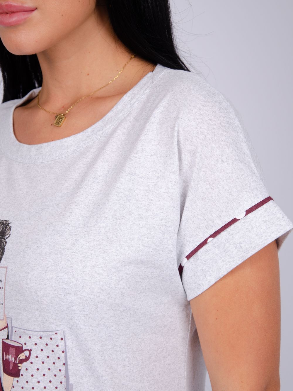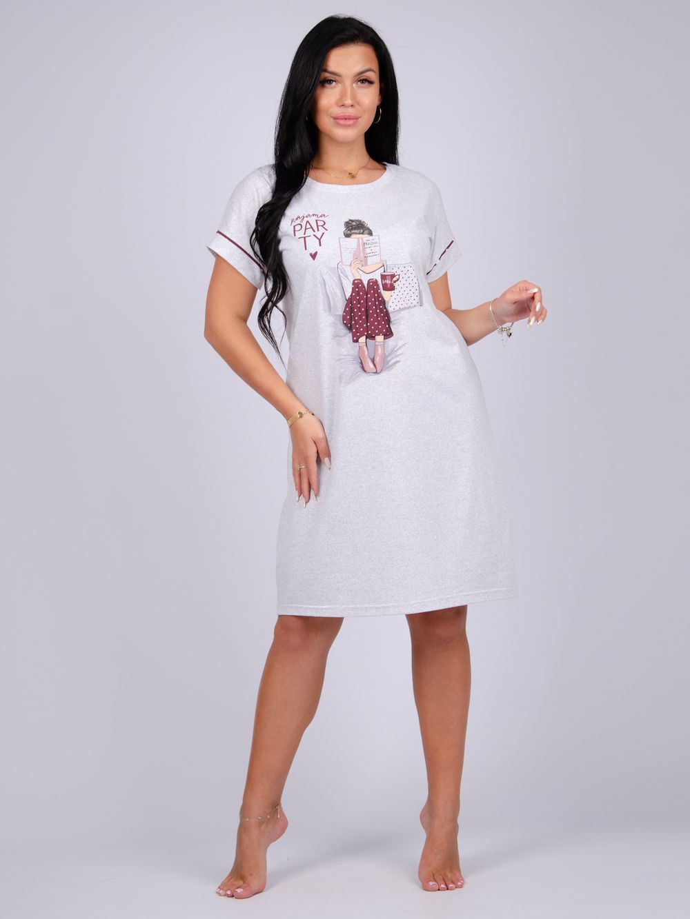 Трикотажная сорочка средней длины максимально комфортна, благодаря свободному и простому крою. Спинка и перед цельные, прямые без вытачек и швов. Хлопковая базовая сорочка с коротким рукавом украшена принтом, гипоаллергенна, позволяет коже дышать во время сна, всесезонная подойдет для любого времени года.
