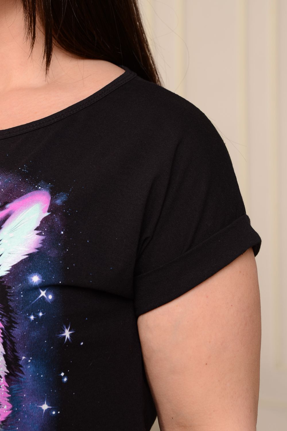 Футболка женская прямого силуэта со светящимся в темноте ярким принтом. Горловина круглая, рукав цельнокроеный с отворотами по низу. Удобная, практичная, лёгкая футболка не стесняет движения. Выполнена из 100% хлопка. Светящееся покрытие - необычный декоративный материал, который привнесет в дизайн оригинальные нотки. Люминесцентная краска будет красиво светиться в темноте, подержав светящийся пигмент на солнце. В составе материала нет вредных компонентов, что делает изделие безопасным. Благодаря стильному дизайну футболка с оригинальным принтом отлично смотрится в тандеме с джинсами, шортами, кедами, кроссовками или ботинками. Отличный вариант на каждый день! В любое время года станет незаменимой и любимой вещью.