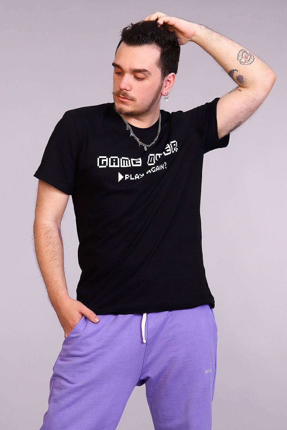 Мужская футболка с коротким рукавом. Данная модель выполнена из трикотажного полотна кулирка (хлопок 100%). Горловина обработана эластичным трикотажным полотном (рибана). На полочке присутствует принт. Отлично подходит для прогулок и повседневной носки.