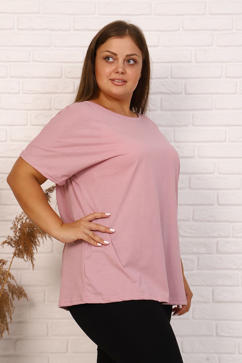 Футболка женская, свободного покроя. Рукав спущенный. Низ изделия обработан на плоскошовке.