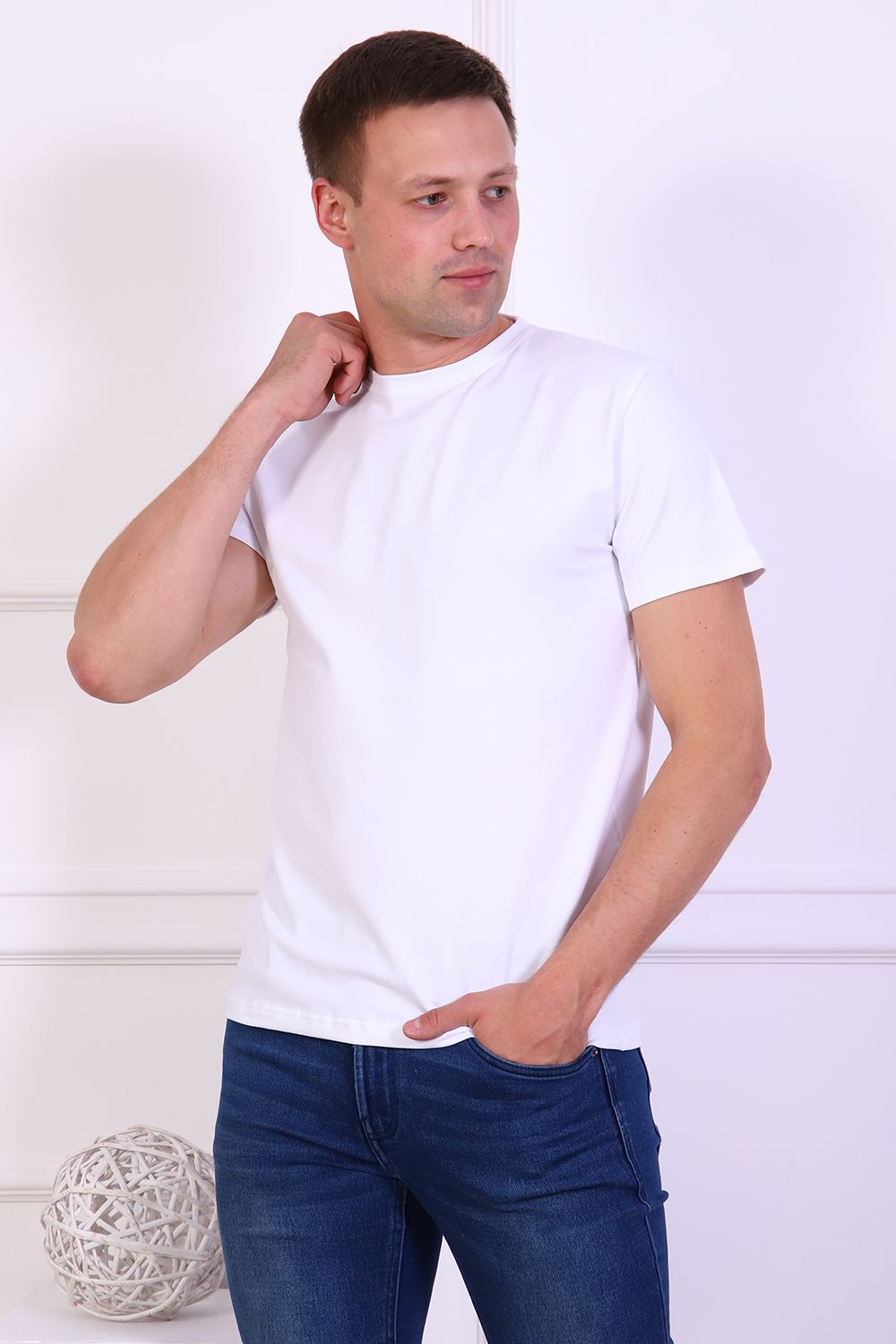 Классическая мужская футболка с коротким рукавом, выполнена из кулирки с лайкрой в базовых цветах, без нанесений. Окантовка округлой горловины в тон полотна. Рукава и низ изделия обработаны швом в подгибку.