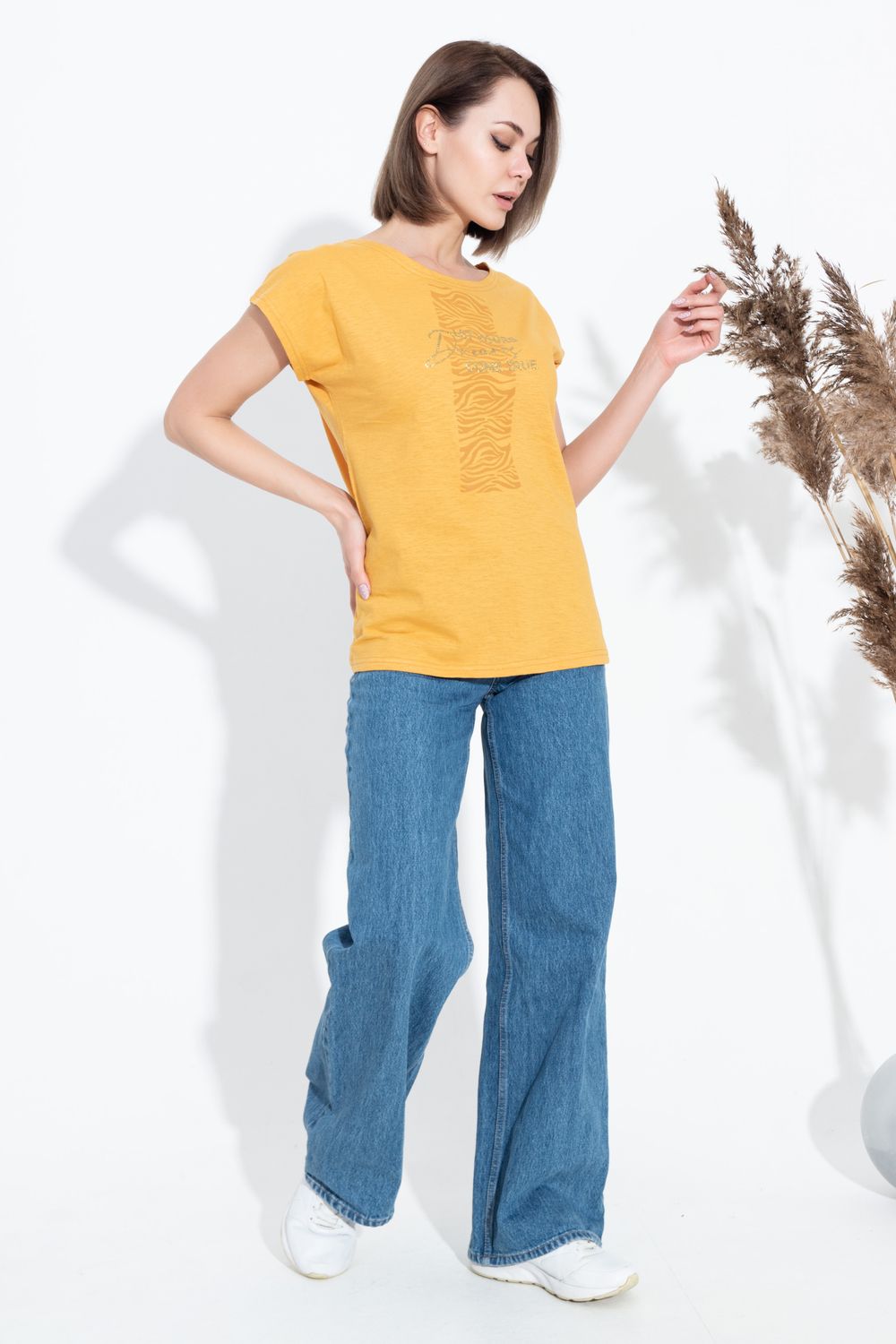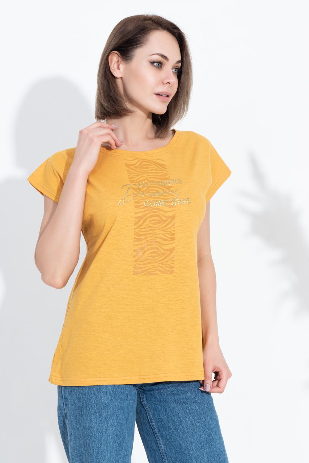 Футболка женская с коротким рукавом и круглым воротом. Изделие выполнено из высококачественной кулирки фламли в двух цветах. Оригинальный принт подчеркнет индивидуальность и позволит создать трендовый образ для ежедневного лука.