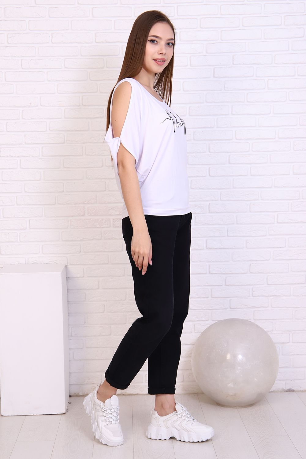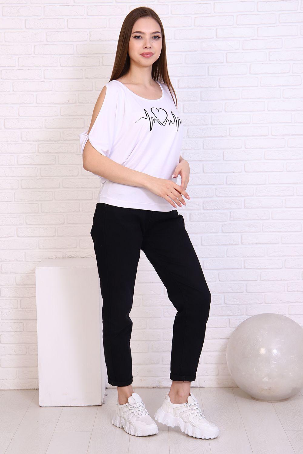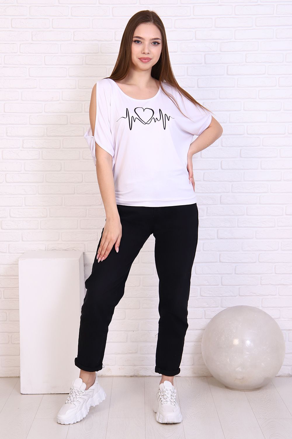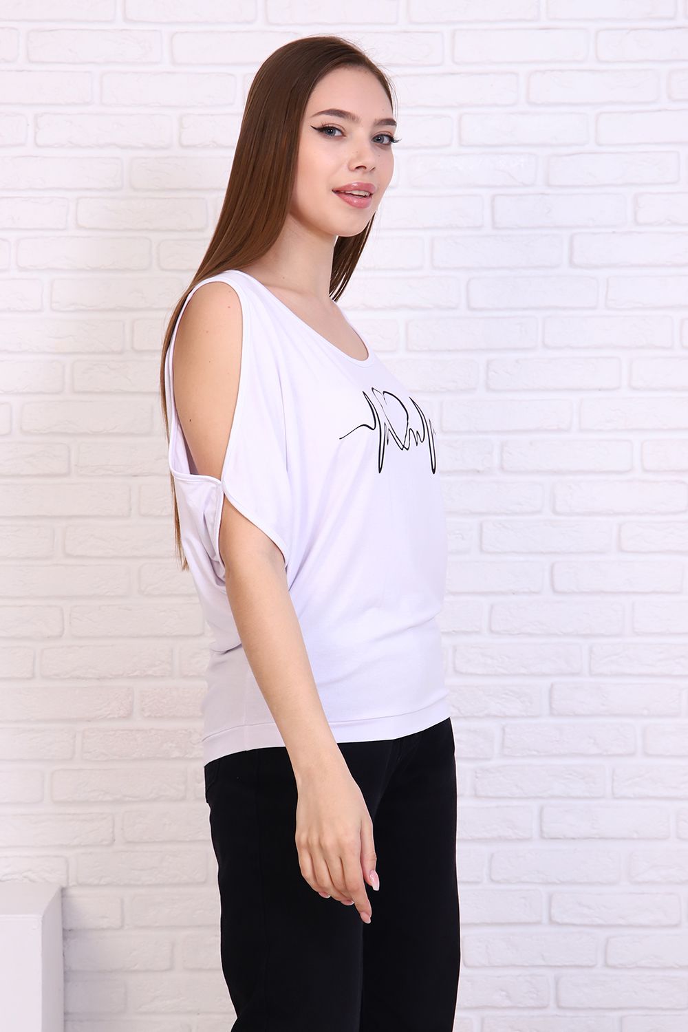 Футболка с молодёжным принтом из приятной к телу вискозы. Модель "летучая мышь" в стиле ОВЕРСАЙЗ, с глубоким декольте, большими разрезами по рукаву, что придаёт изделию некую изюминку и привлекательность. Низ футболки обработан широким манжнтом. Отличный вариант для летнего гардероба.