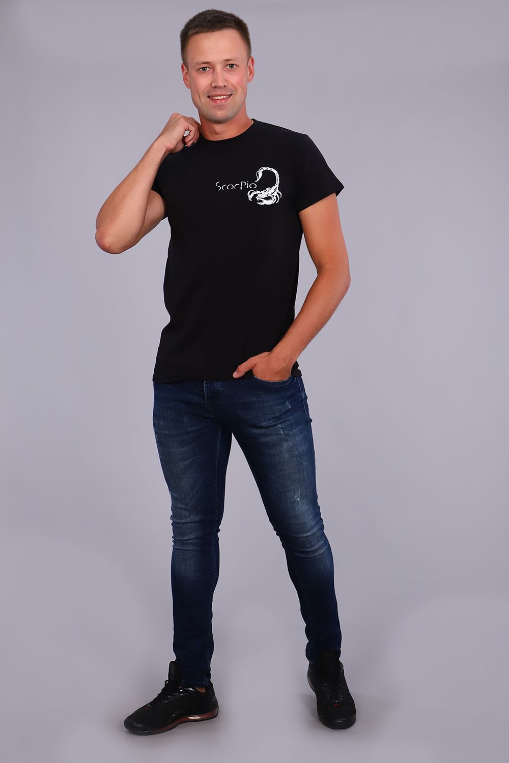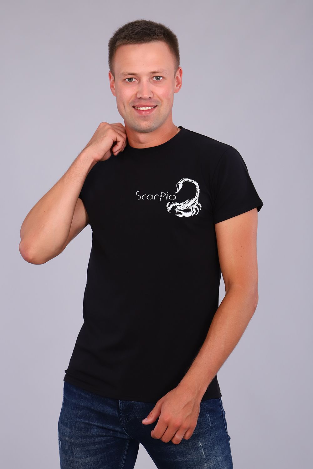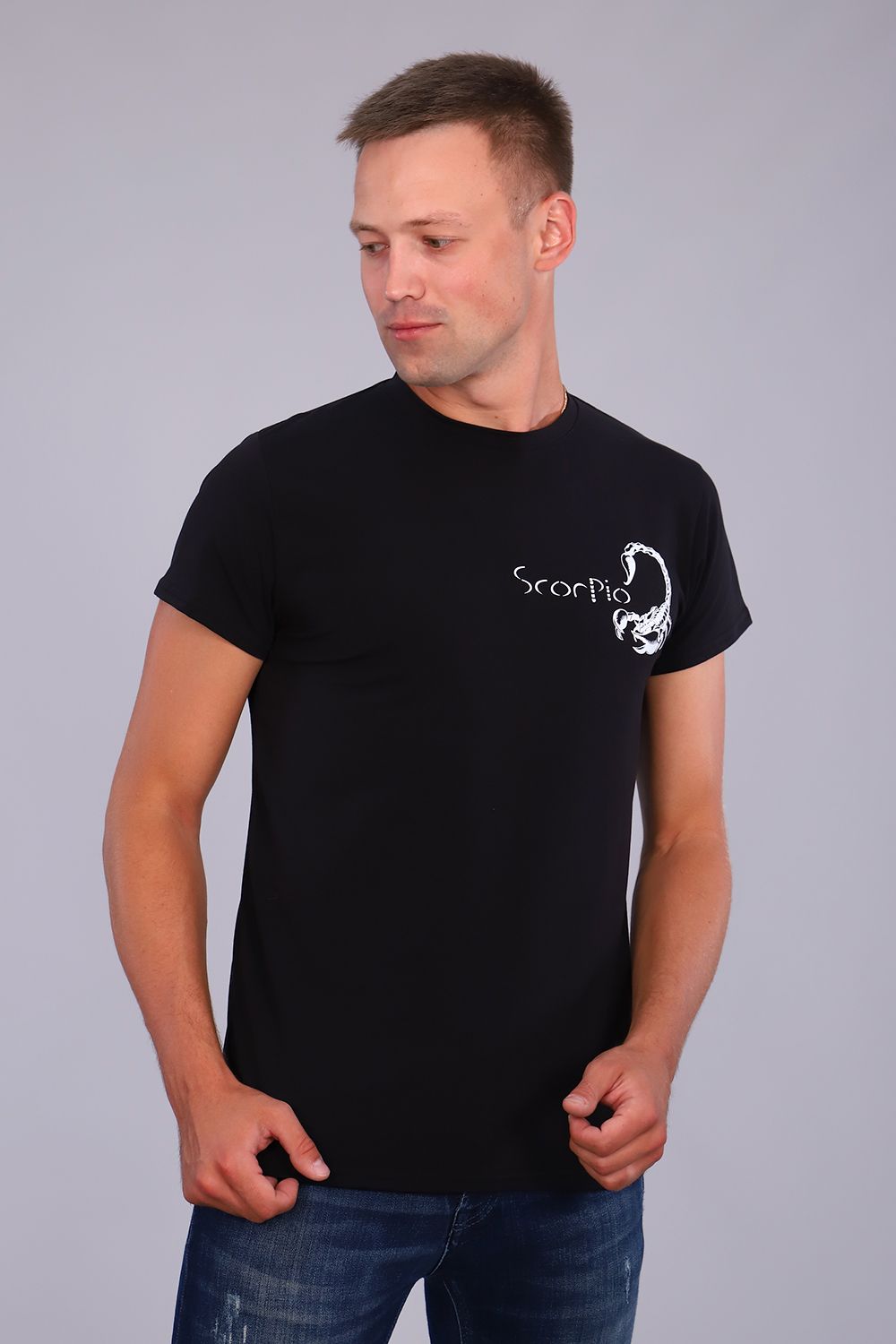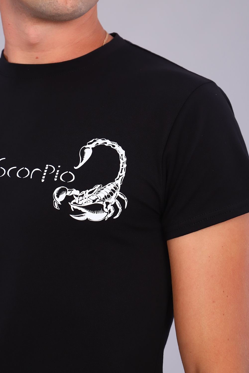 Футболка мужская с принтом в виде скорпиона из кулирки с лайкрой высокого качества пенье. Модель прямого покроя, с коротким рукавом и усиленным плечевым швом. Футболка - незаменимый предмет в мужском гардеробе. Футболку носят дома, на отдыхе, с помощью футболки создают стильные образы.