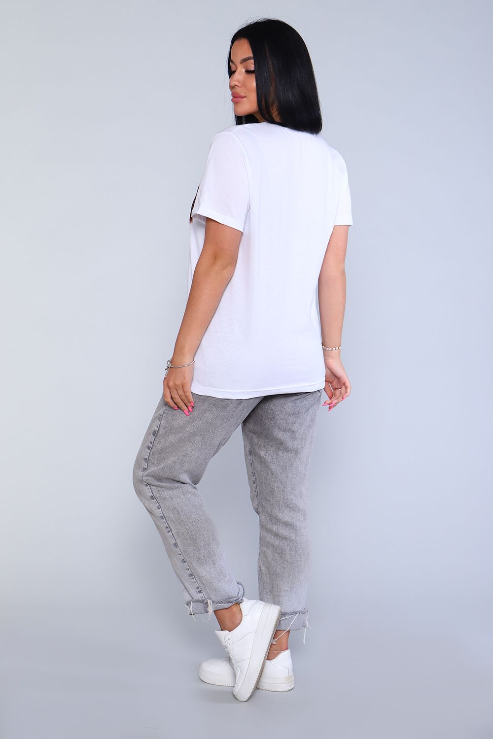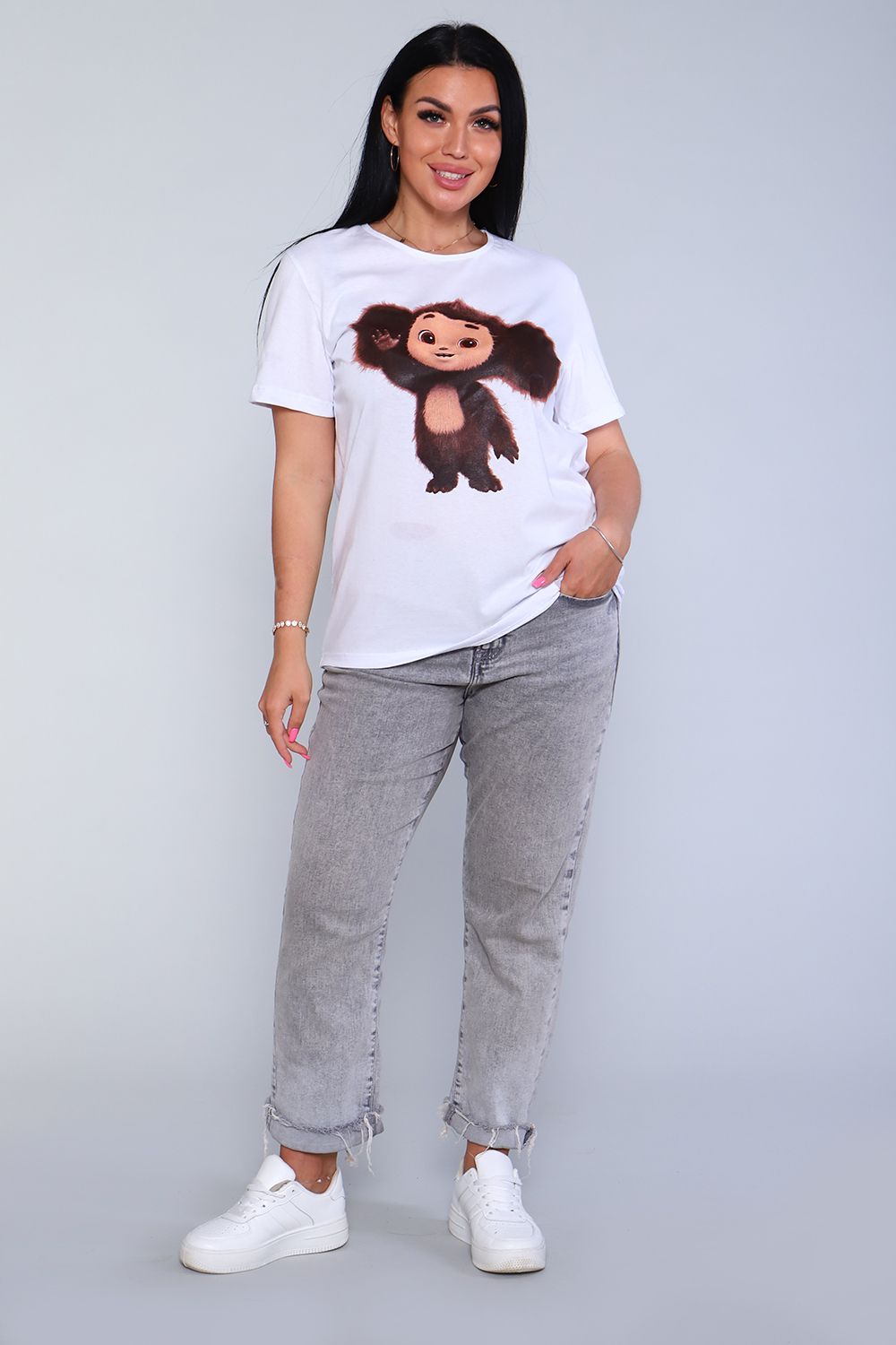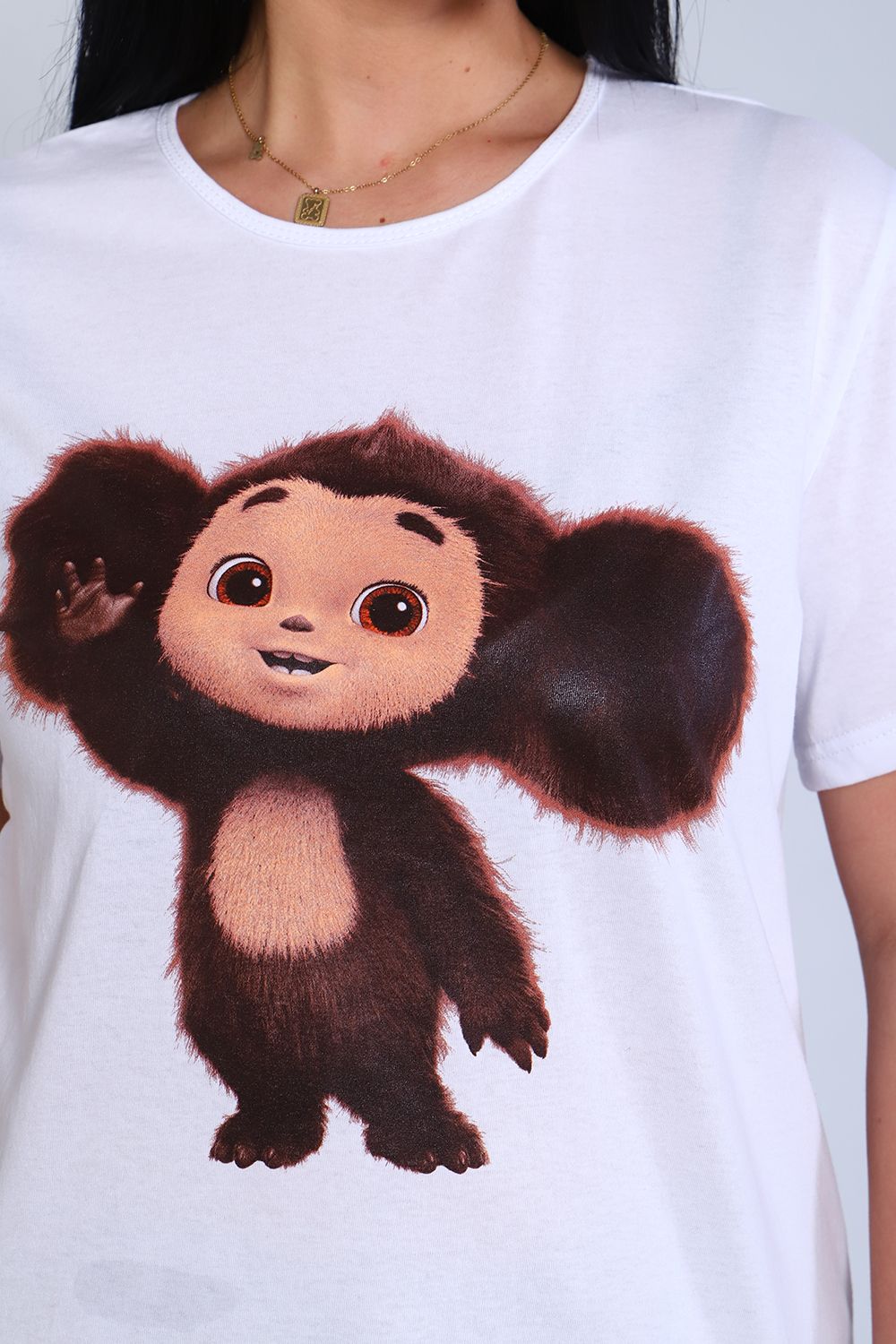 Футболка с принтом прямого силуэта, с коротким рукавом. Вырез горловины круглый, обработан кантом.