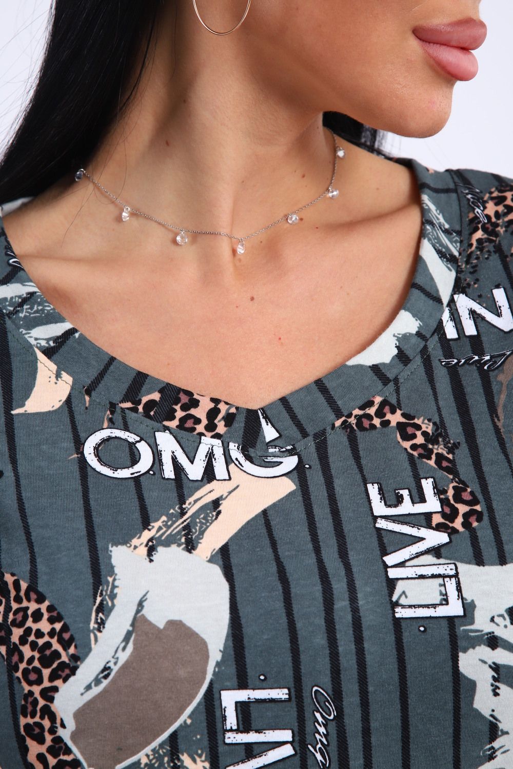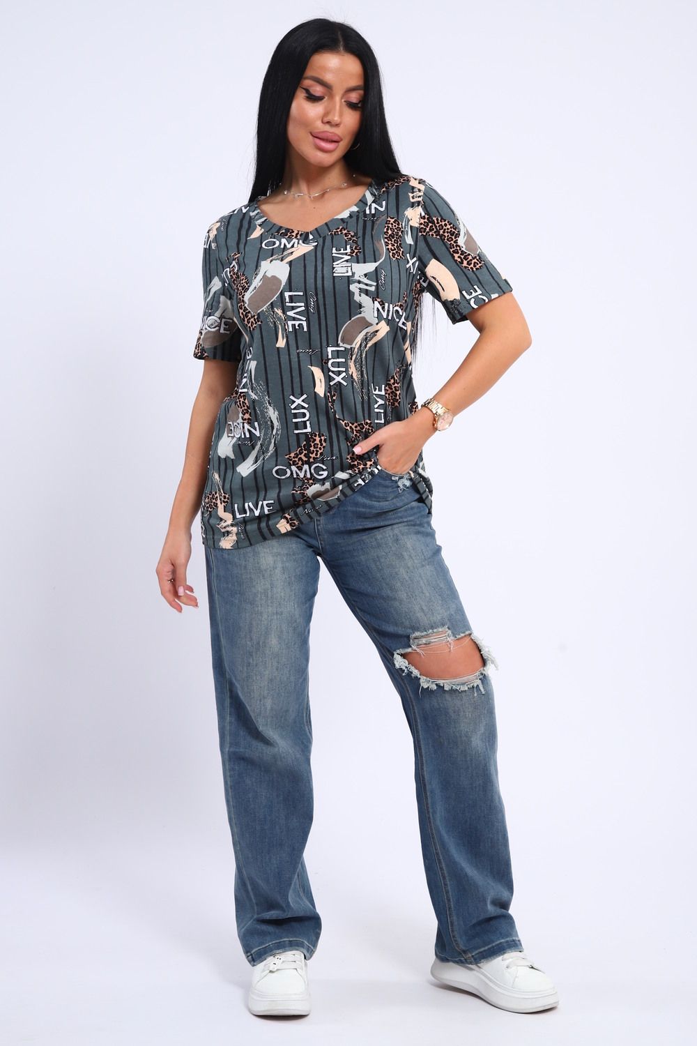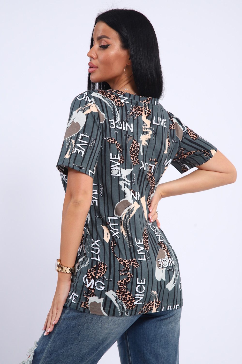Футболка женская с V образным вырезом горловины и коротким рукавом.
