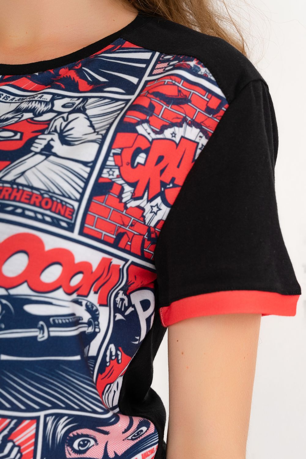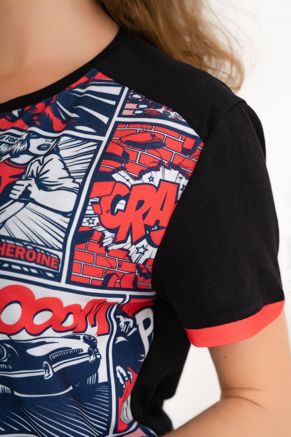Стильная женская футболка. Основная ткань изделия 100% хлопок. На передней полочке принтованная вставка из ткани джерси (полиэстер), принт выполнен с использованием технологии сублимационной печати. Идеально подойдет для прогулок в теплую погоду.