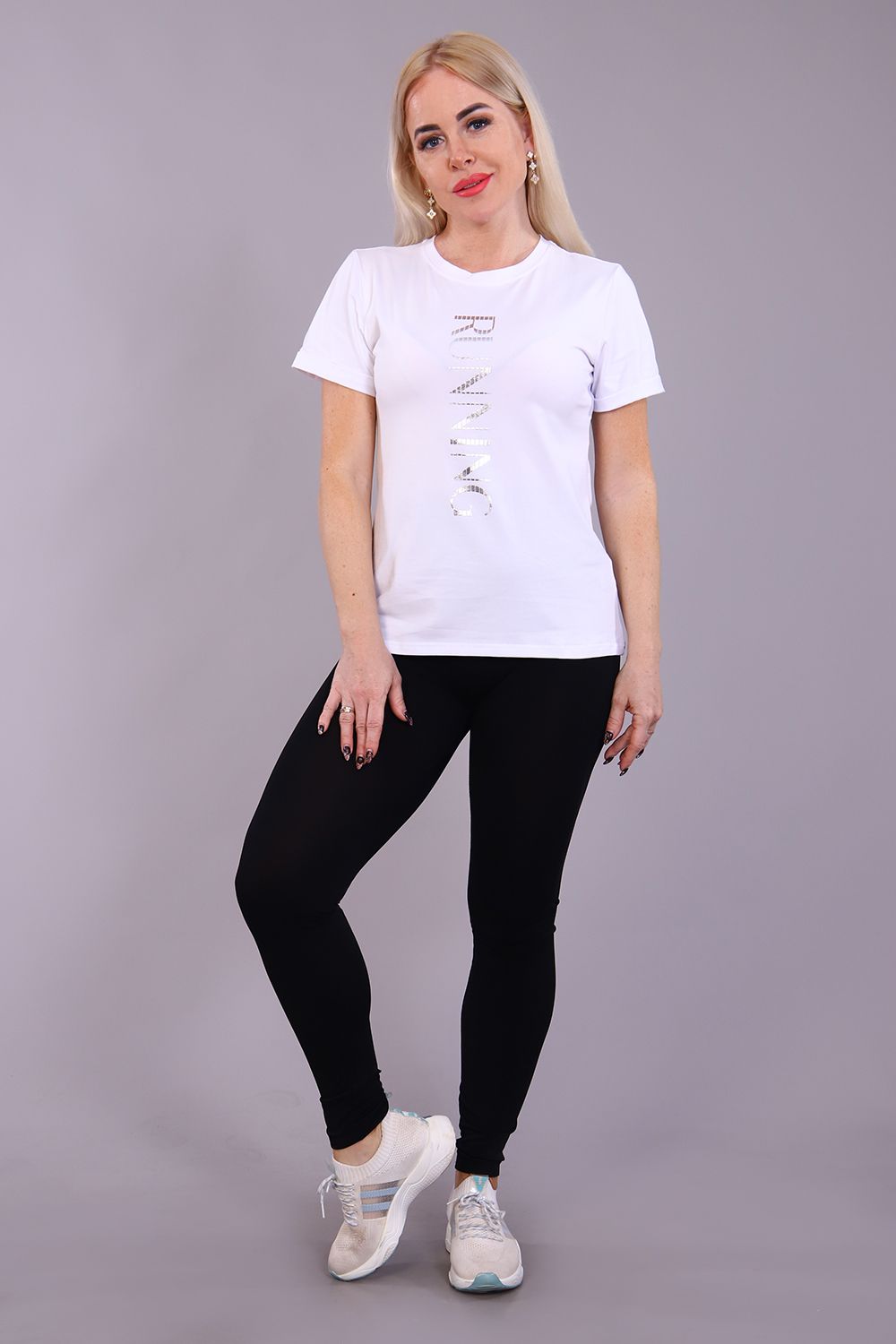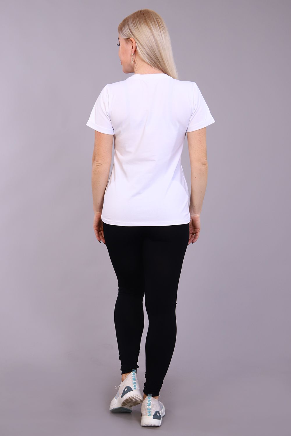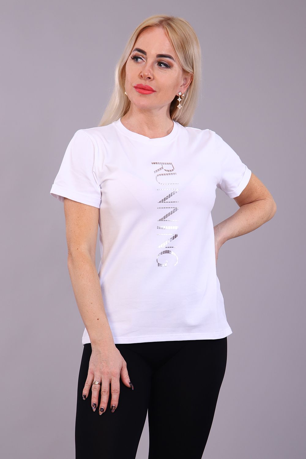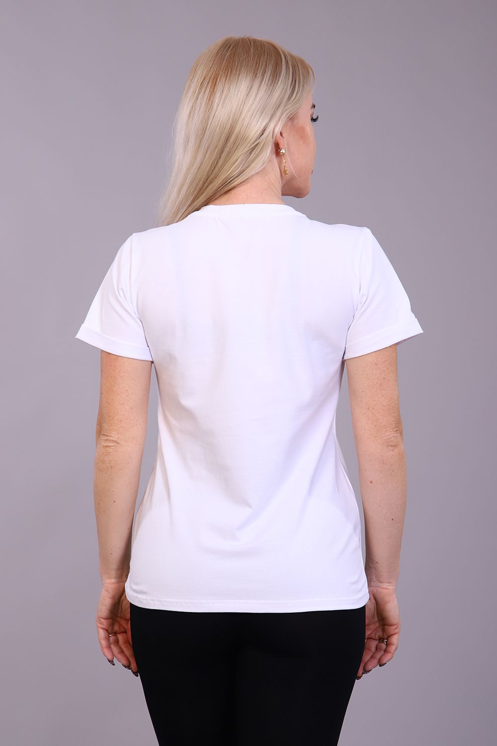 Классическая женская белая футболка. Оригинальная печать подчеркнет ее уникальность. Рукав подвернутый, горловина обработана обтачкой