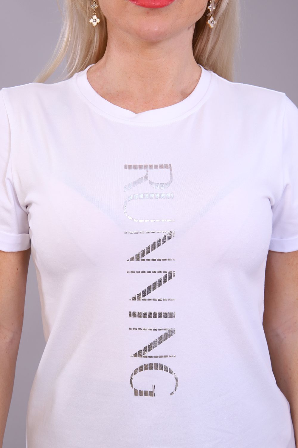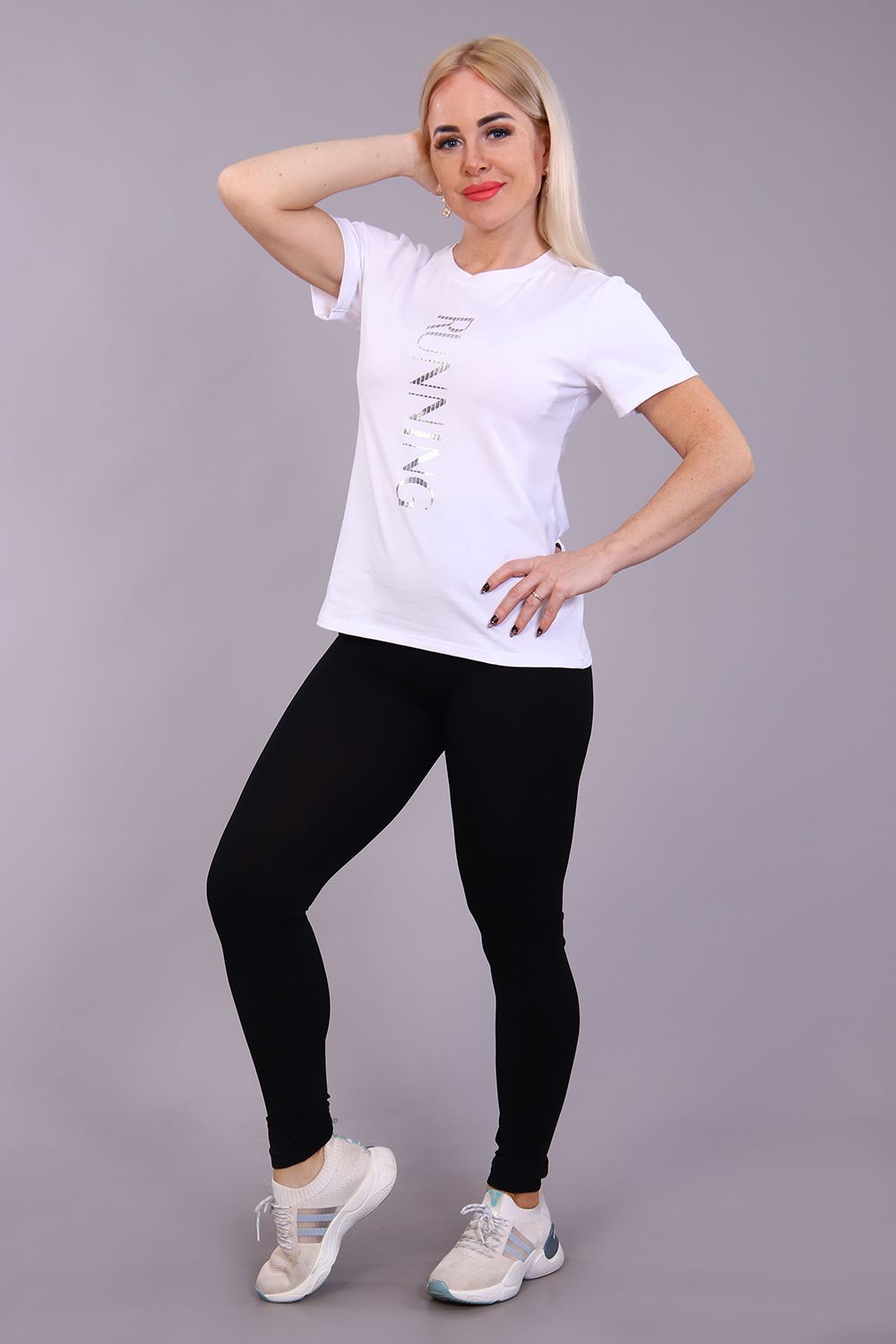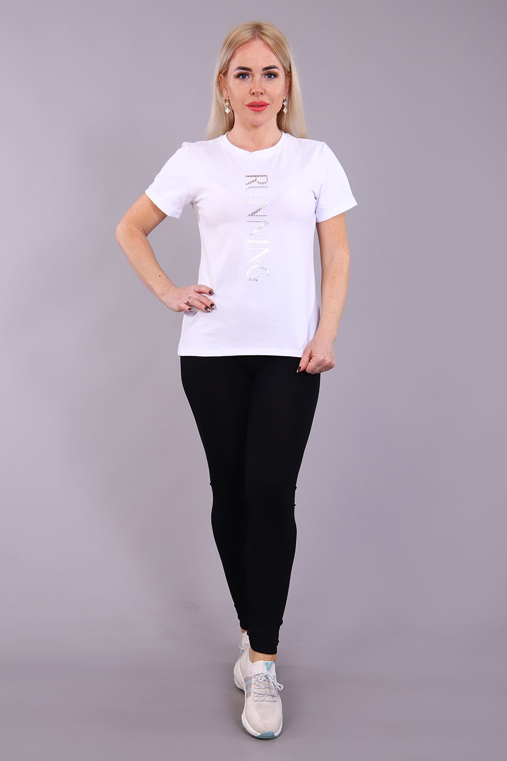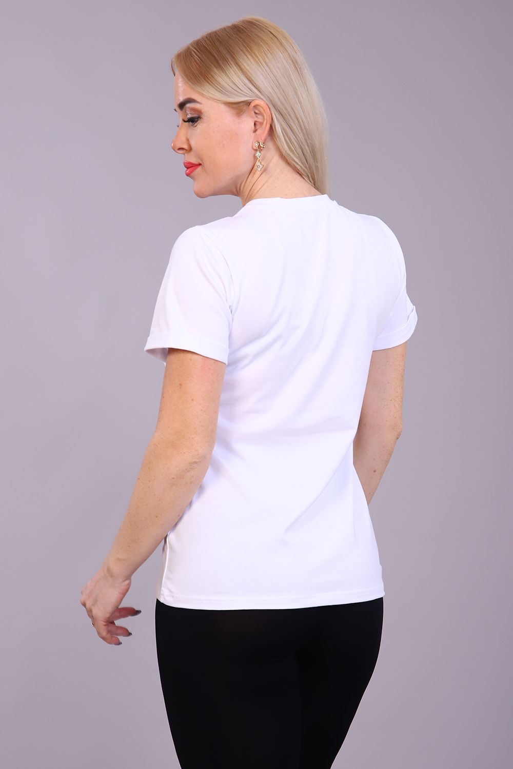 Классическая женская белая футболка. Оригинальная печать подчеркнет ее уникальность. Рукав подвернутый, горловина обработана обтачкой