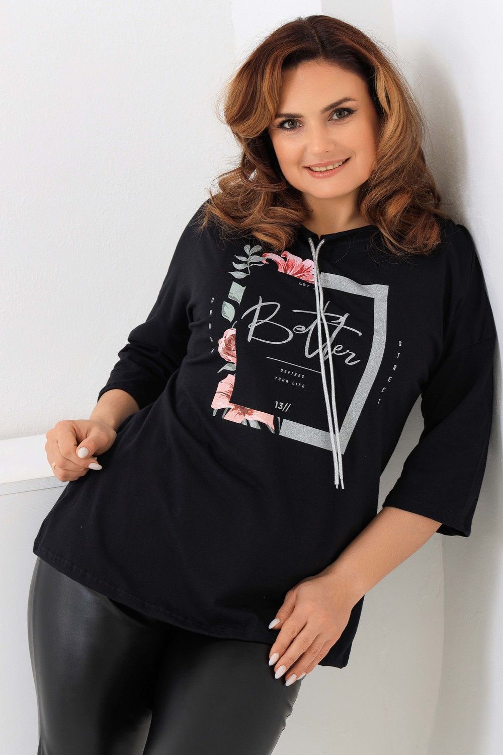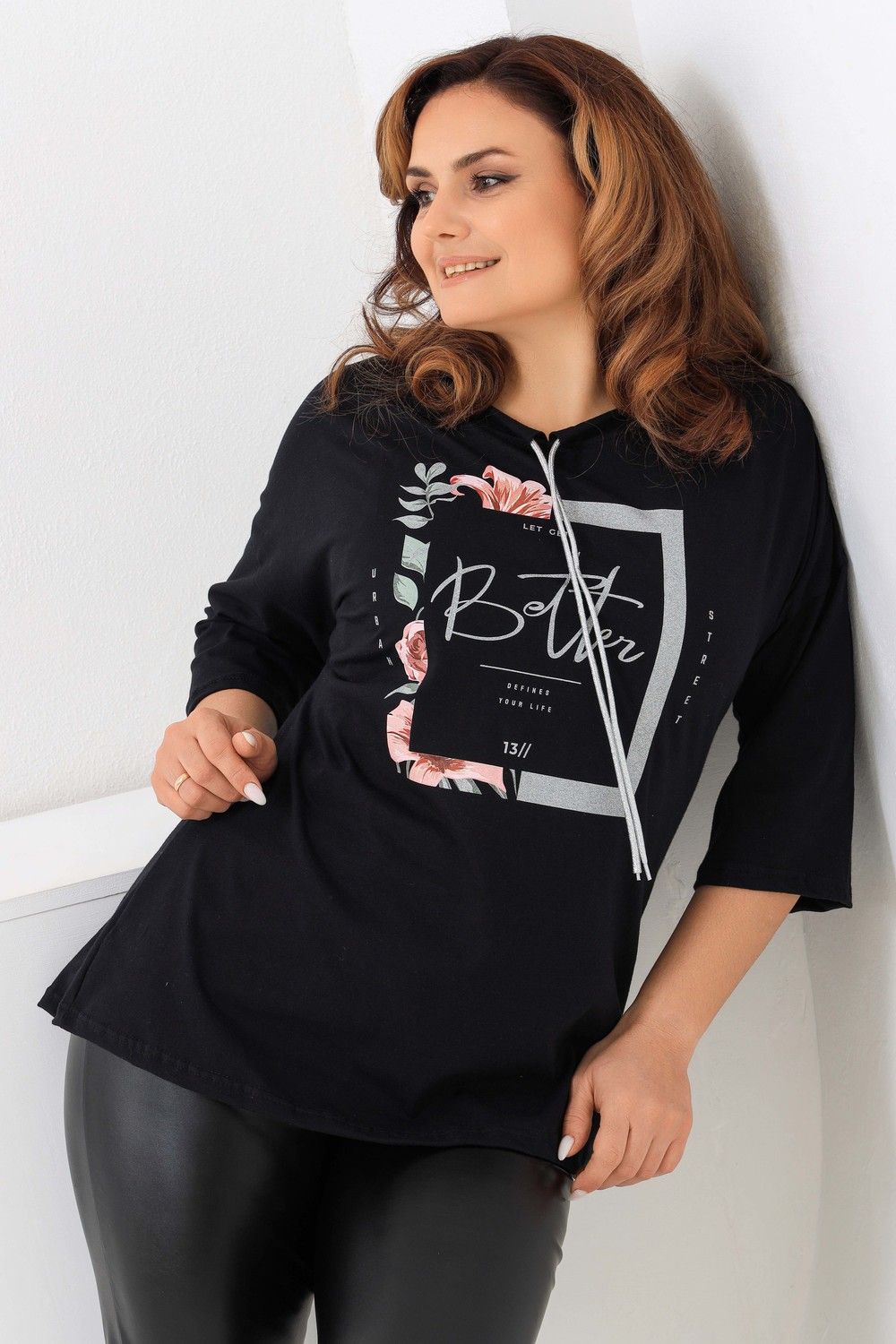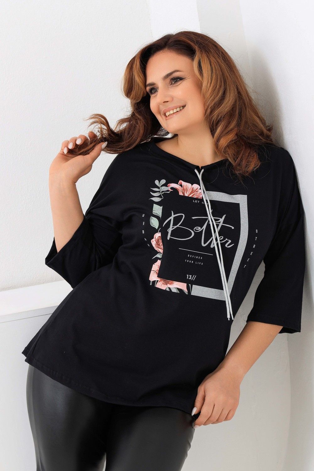 Удлиненная женская футболка со шнурком, длиной до середины бедра с округлым вырезом горловины. Представленная в цветах - красный, фисташковый, лиловый, молочный и черном не утратят своей актуальности. Модели средней длины прекрасно смотрятся с брюками - дудочками или облегающими джинсами. В прохладную погоду хорошо будет смотреться в паре с утепленной жилеткой или курткой. Принт из блестящего глиттера прекрасно гармонирует с серебристым шнурком. Модель выполнена из хлопка высшего качества. Размер на модели 48. Параметры 105-86-98/169