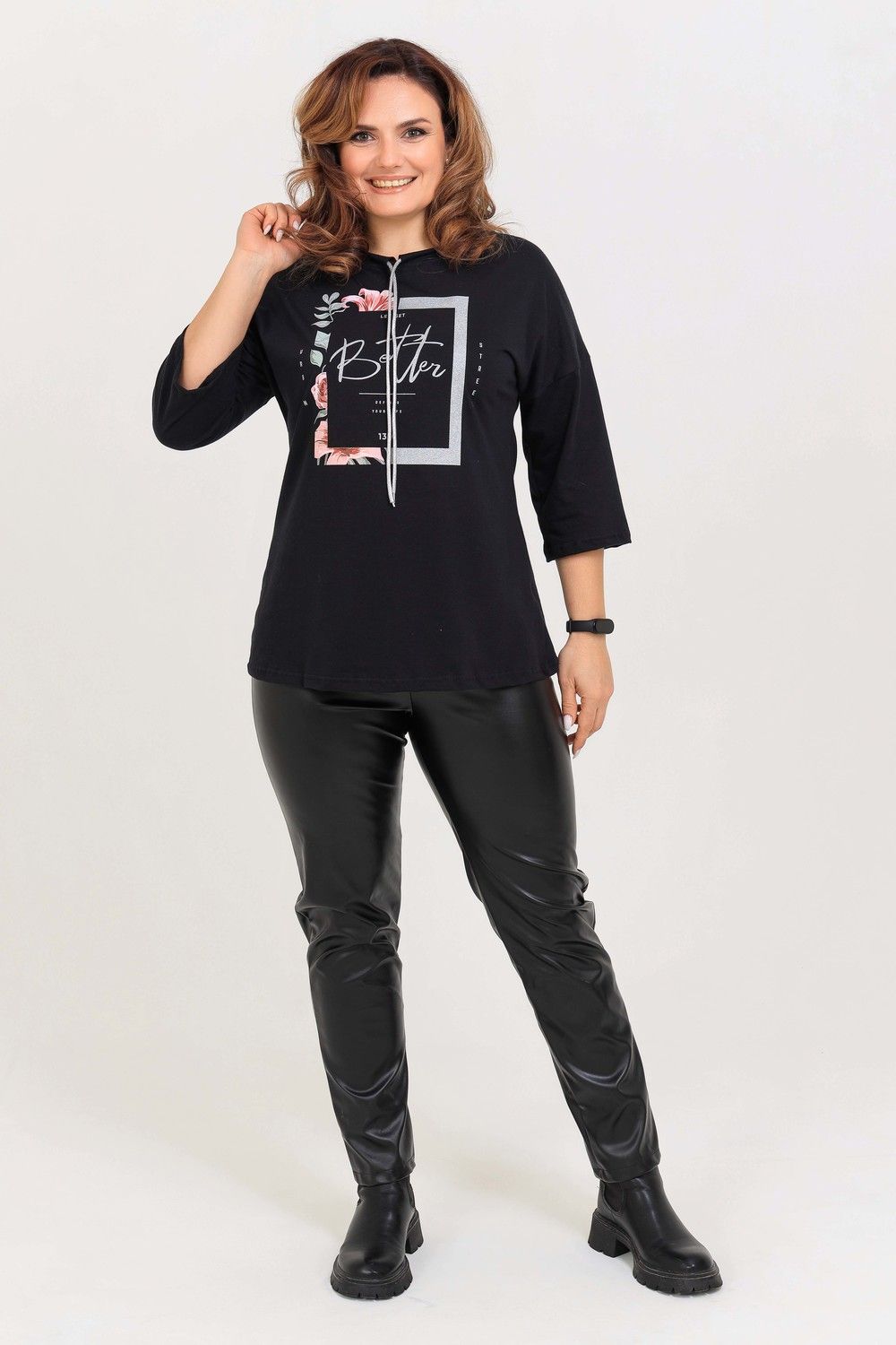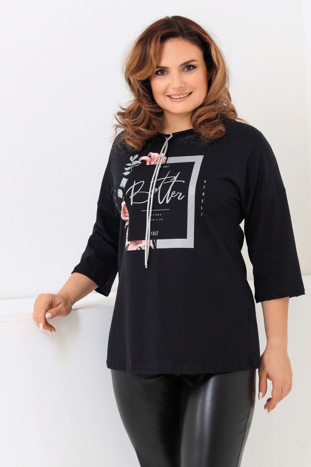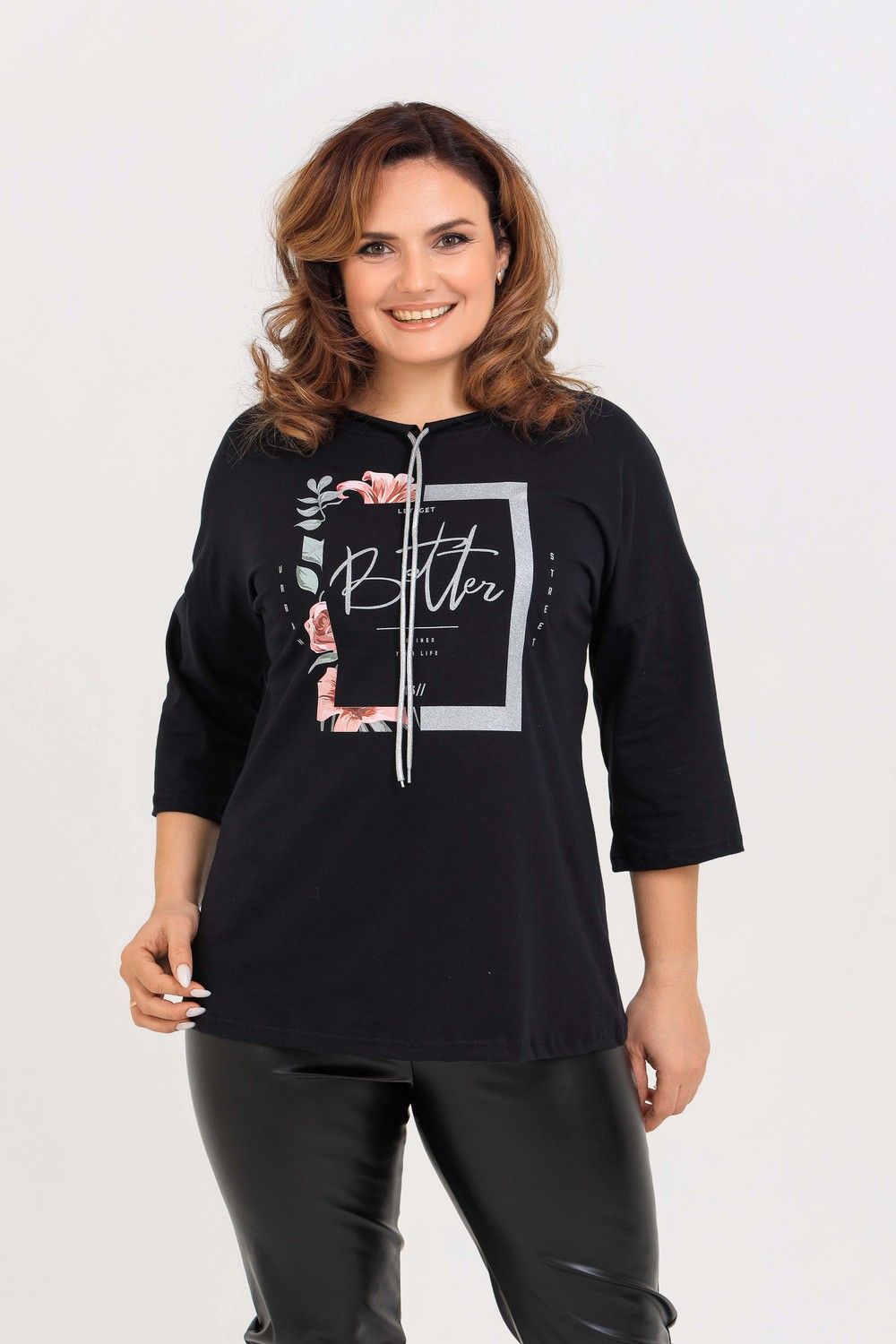 Удлиненная женская футболка со шнурком, длиной до середины бедра с округлым вырезом горловины. Представленная в цветах - красный, фисташковый, лиловый, молочный и черном не утратят своей актуальности. Модели средней длины прекрасно смотрятся с брюками - дудочками или облегающими джинсами. В прохладную погоду хорошо будет смотреться в паре с утепленной жилеткой или курткой. Принт из блестящего глиттера прекрасно гармонирует с серебристым шнурком. Модель выполнена из хлопка высшего качества. Размер на модели 48. Параметры 105-86-98/169