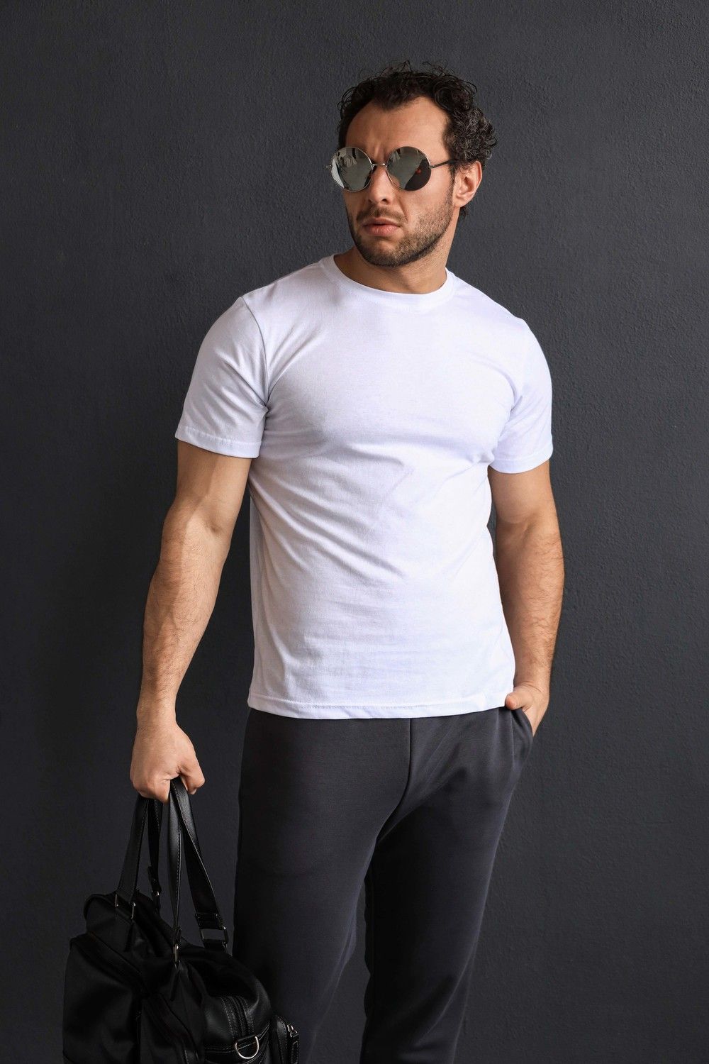 Футболка мужская однотонная базовая с коротким рукавом. Классического кроя - это вещь унисекс, которая подойдет и мужчинам, и женщинам. Футболка подходит для отдыха, туризма и занятий спортом: фитнеса, йоги, бега и тренировок в зале. В ней можно отправиться на прогулку в город. Ее можно носить дома или надеть в школу и на работу в офис под пиджак. Плотность ткани 160гр/мк o/e. Рост модели на фото 182, размер 48.