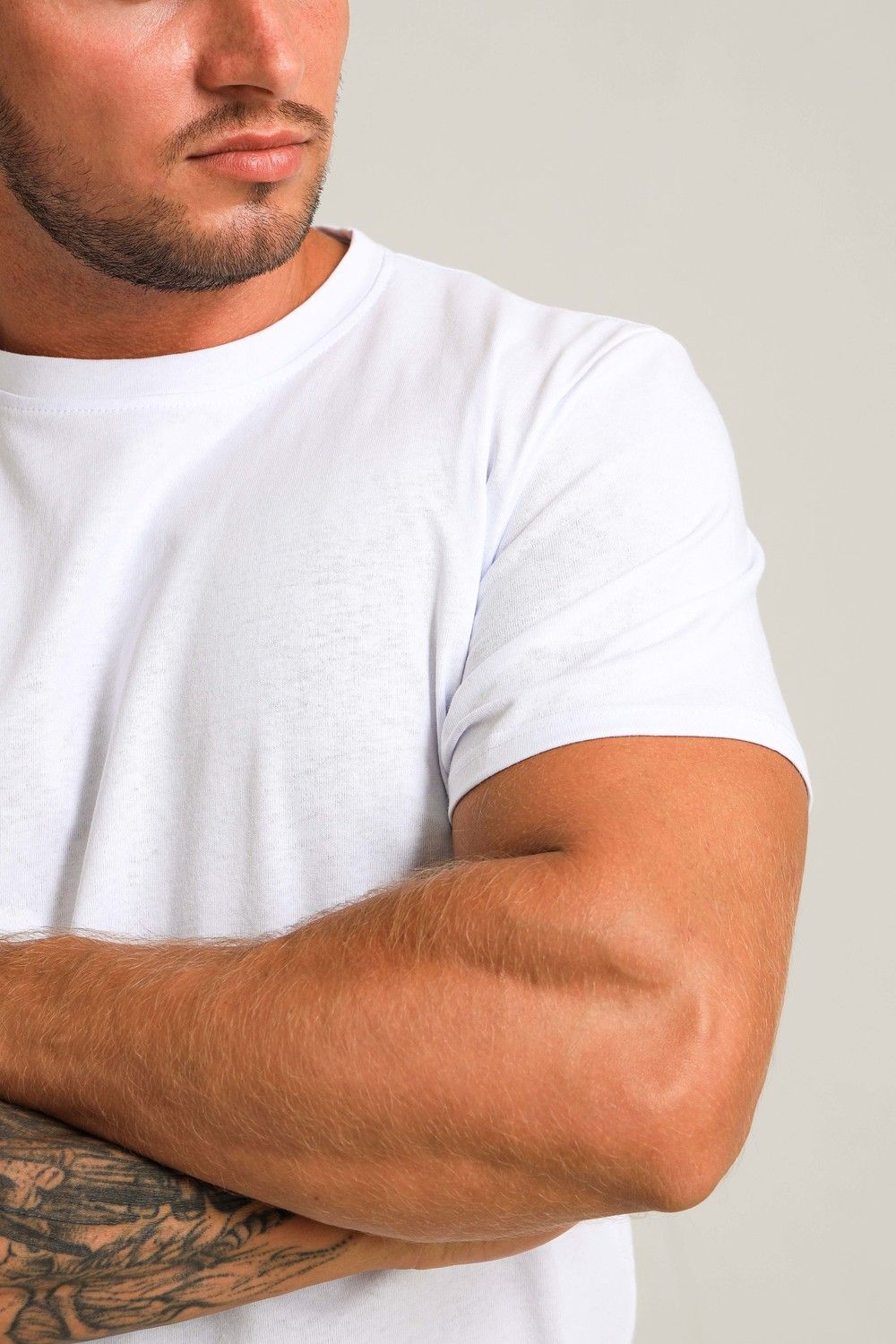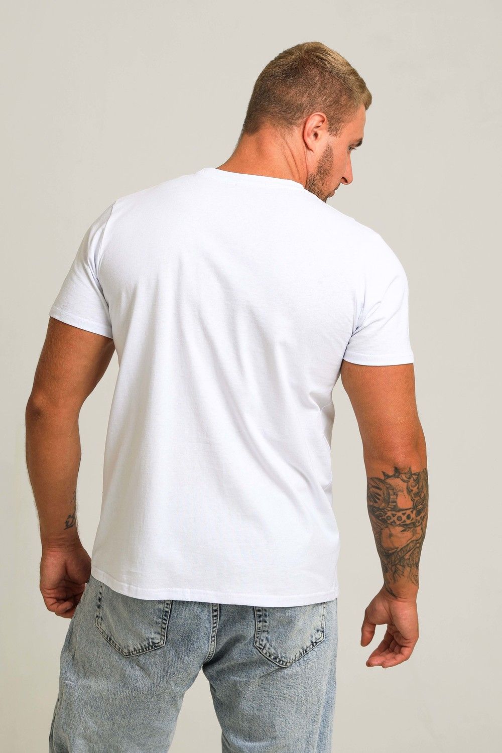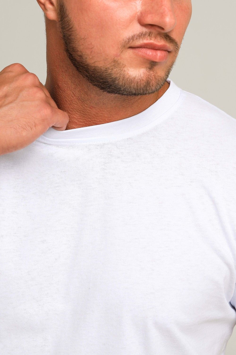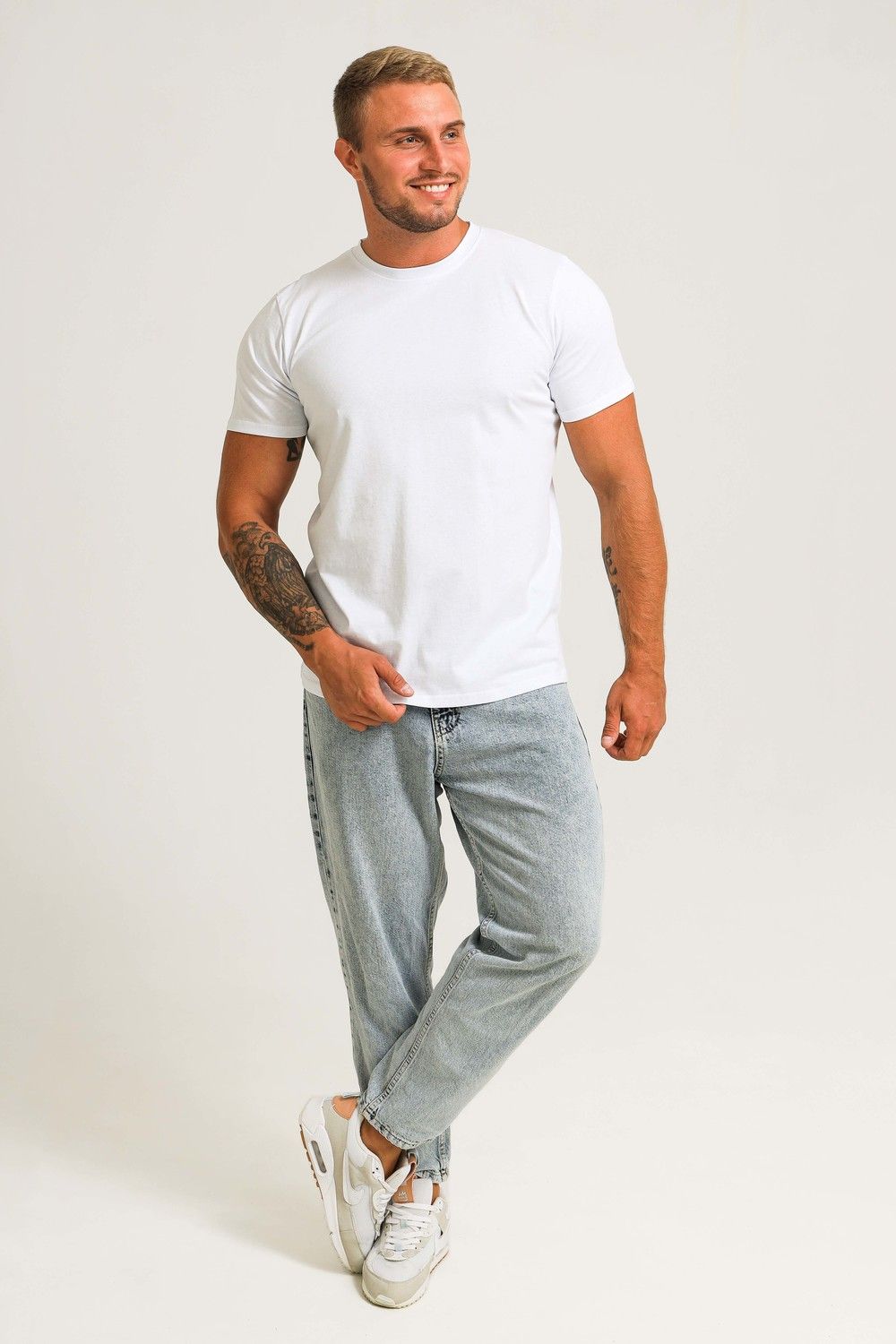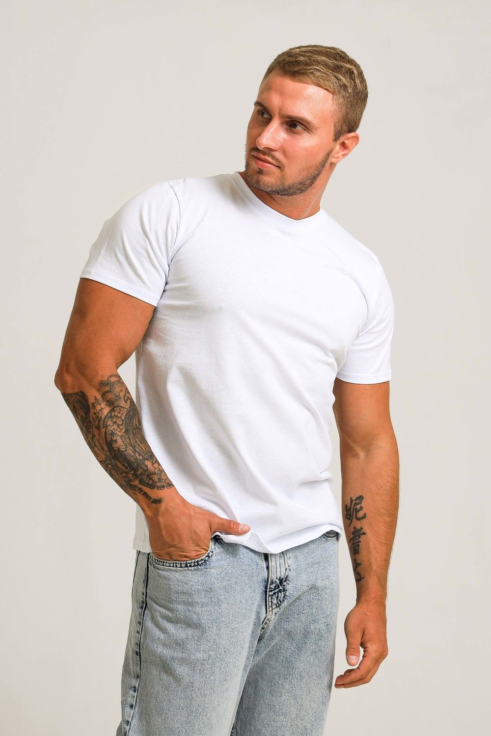 Мужская футболка однотонная, представлена в 3 базовых цветах - белый, черный, темно-синий. Спинка горловины отделана усилением. Плотная, износостойкая ткань не просвечивает и не вытягивается. Плотность ткани 190гр/м2. Размер на модели 52.