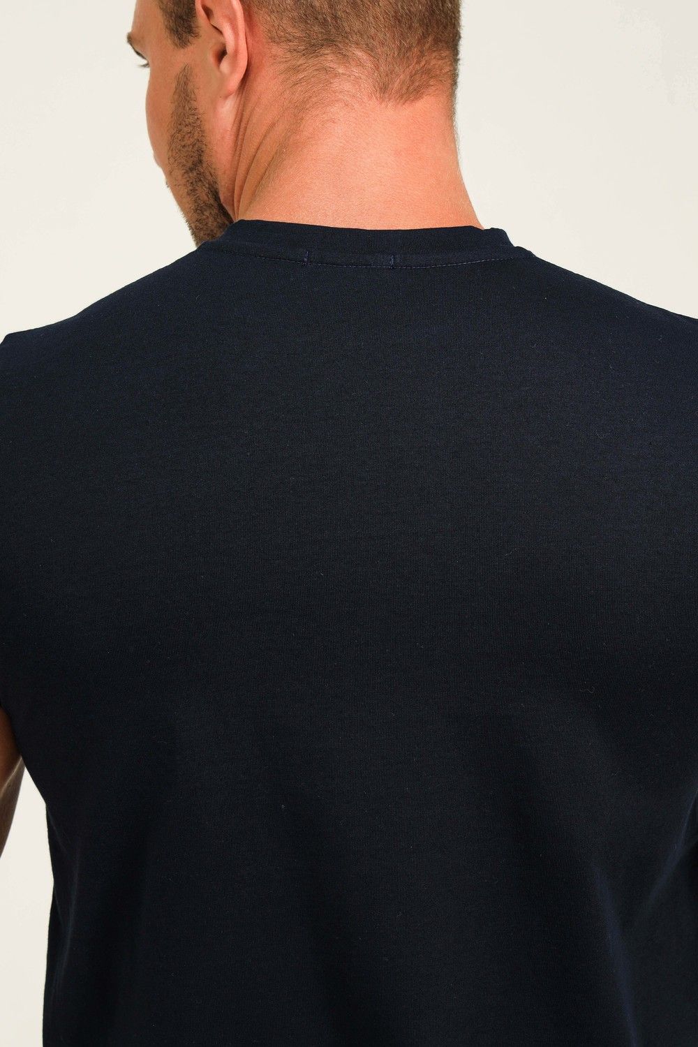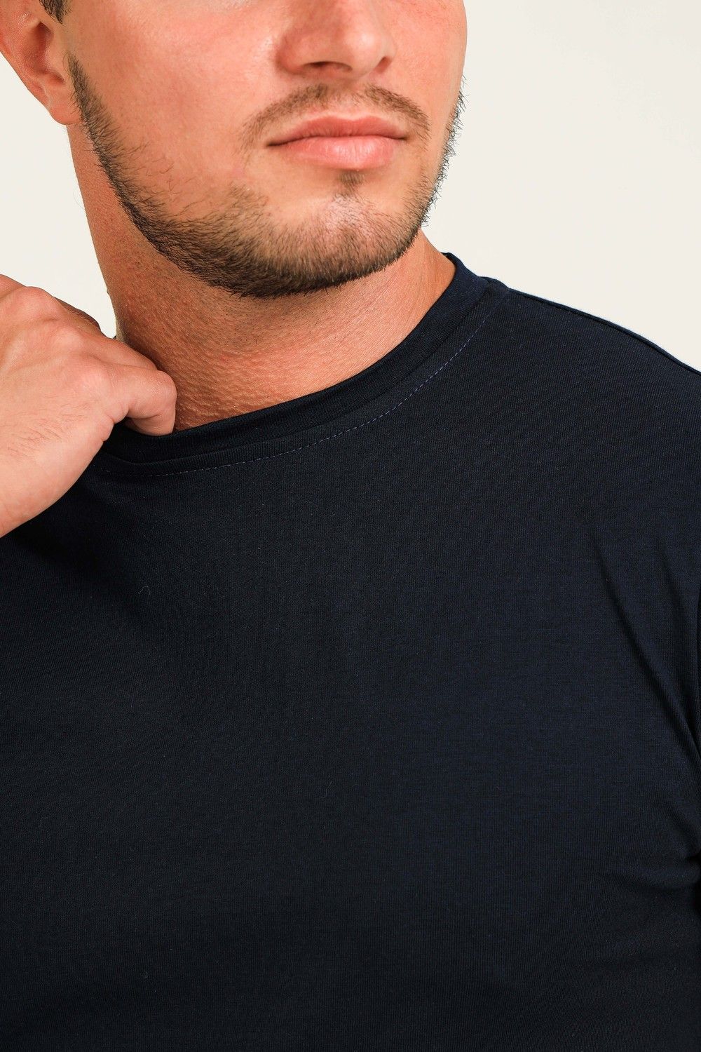 Мужская футболка однотонная, представлена в 3 базовых цветах - белый, черный, темно-синий. Спинка горловины отделана усилением. Плотная, износостойкая ткань не просвечивает и не вытягивается. Плотность ткани 190гр/м2. Размер на модели 52.