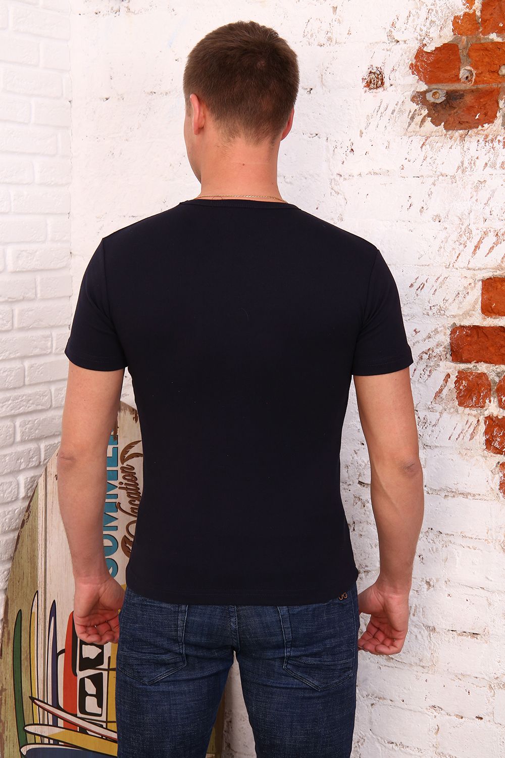 Мужская футболка из кулирки. Короткие рукава, круглая горловина, прямой силуэт. Полочка украшена печатью. Подойдет на любой случай жизни.