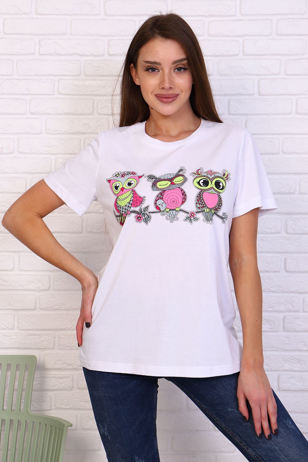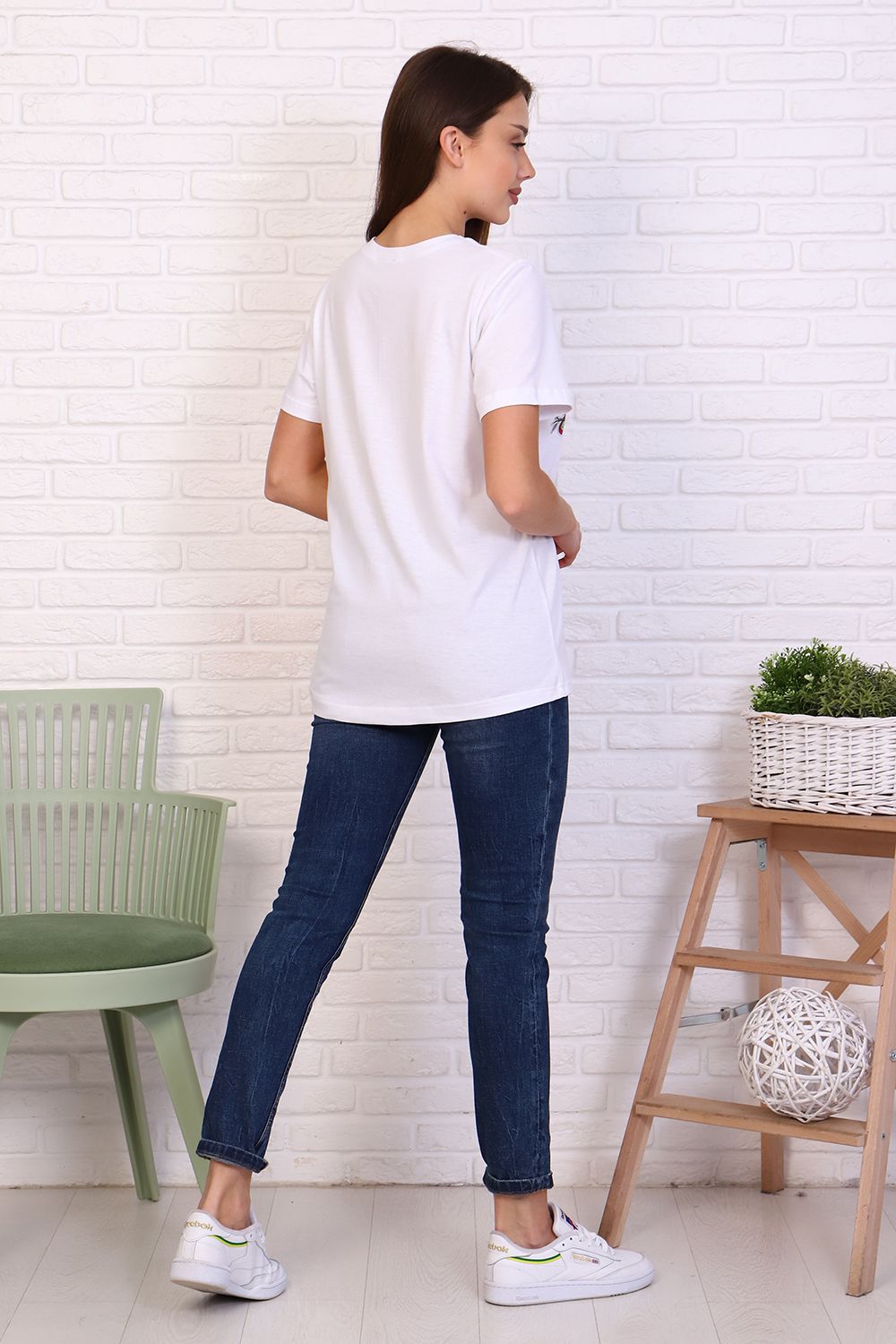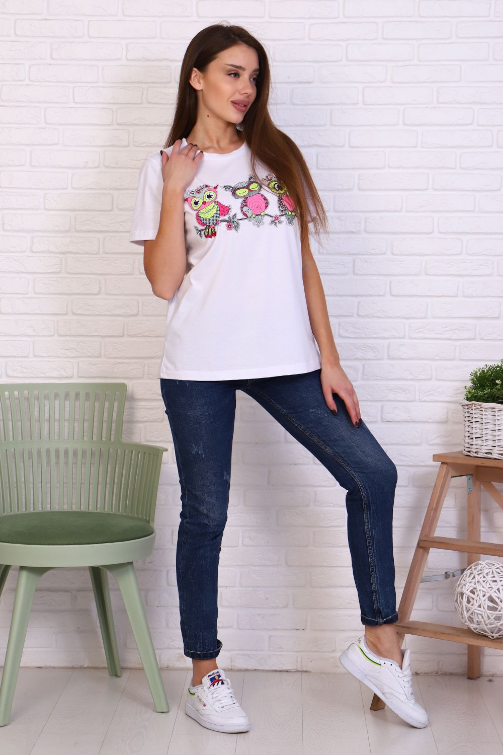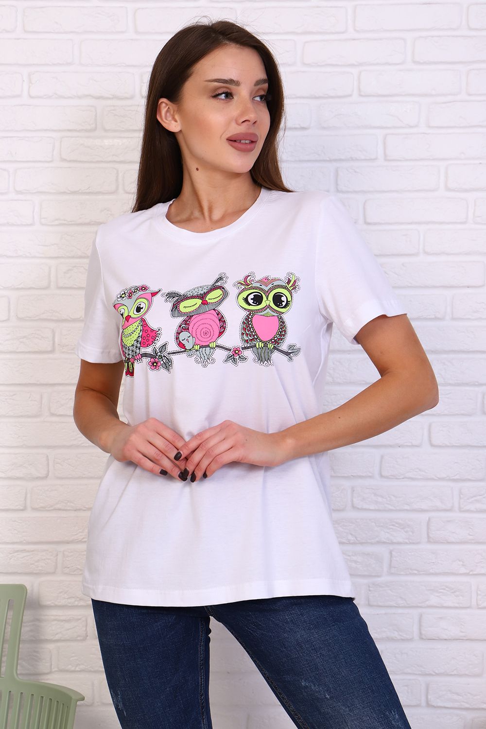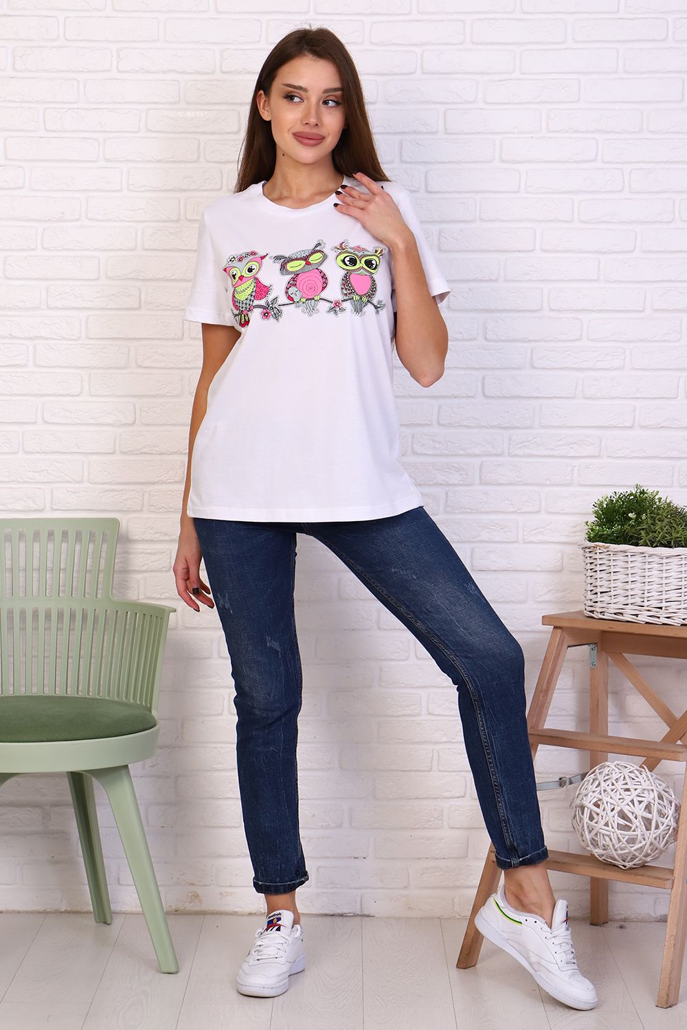 Молодежная футболка из кулирки 100% хлопок свободного кроя oversize, с втачным коротким рукавом, горловина округлой формы. На полочке изделия принт. Низ рукава и низ изделия подгибка.