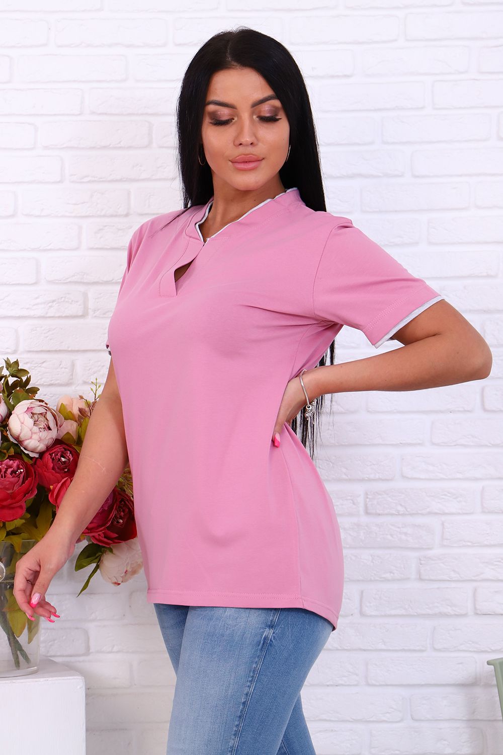 Футболка женская из ткани кулирка с лайкрой качество пенье. Стильная и современная футболка, с контрастной отделкой на воротнике и рукавах., вырез оформлен планкой. Подойдет для отдыха, дома и повседневной носки. Футболка не деформируется, не меняет цвет после стирки.