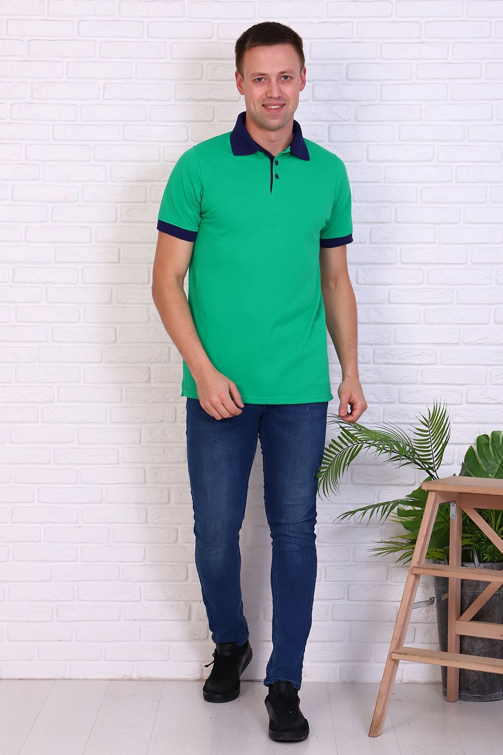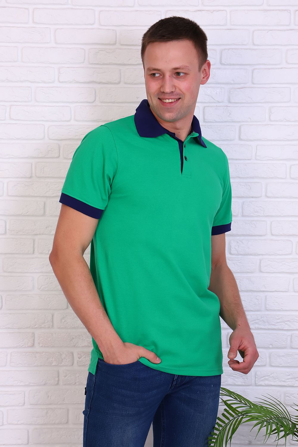 Футболка поло мужская из ткани лакост пенье 100% хлопок. Вязаные воротник и манжеты, планка на 3 пуговицы контрастного синего цвета, по бокам разрезы. Футболка удобная и комфортная, подойдет для повседневной носки, прогулок и отдыха, после стирки сохраняет цвет и форму.