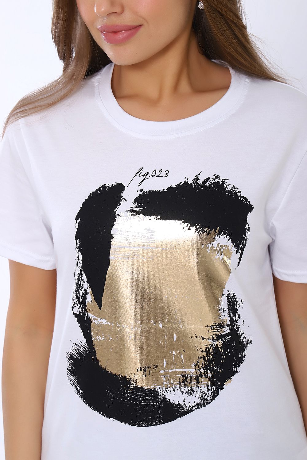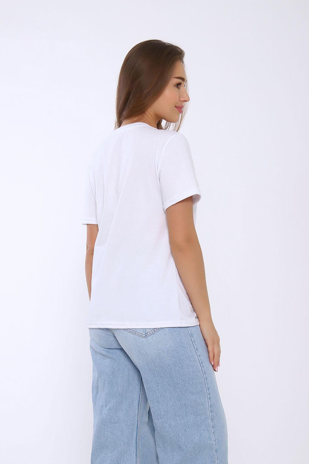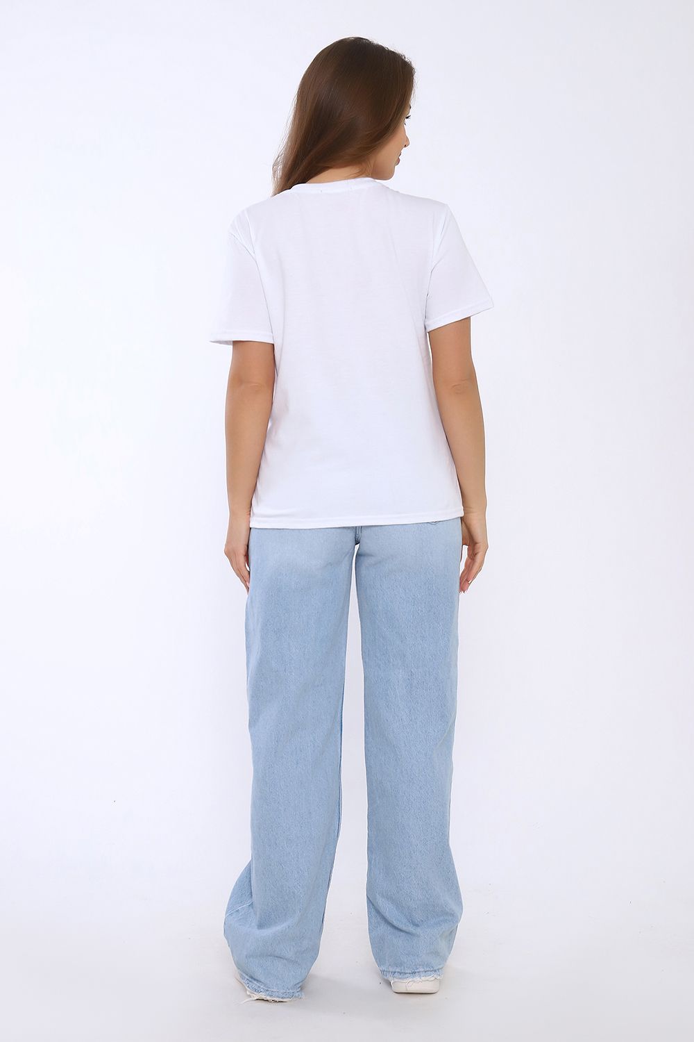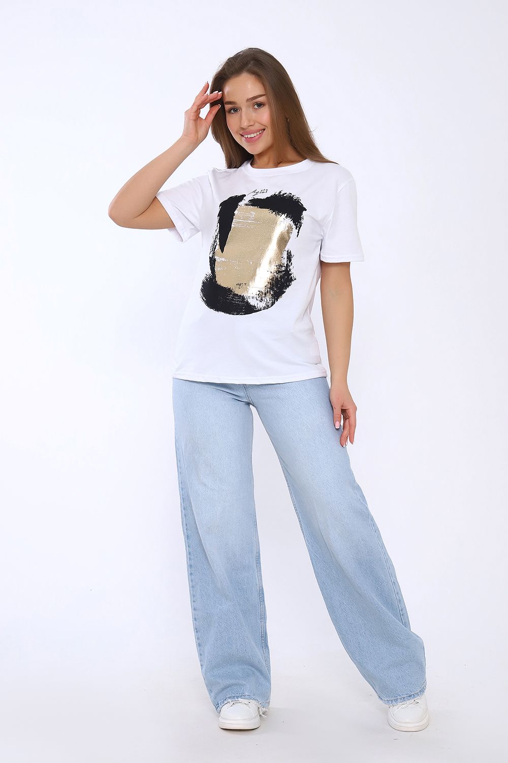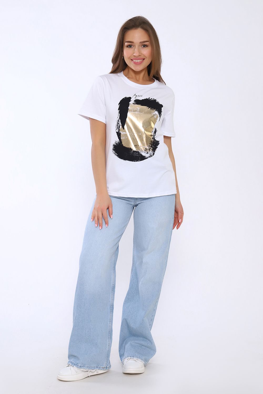 Футболка классического фасона, прямого кроя, с коротким рукавом и округлым вырезом. Декорирована принтом. Универсальная модель футболки отлично подойдет для любого образа и станет необходимой вещью в вашем гардеробе. Ткань кулирка пенье, плотность 160 г.