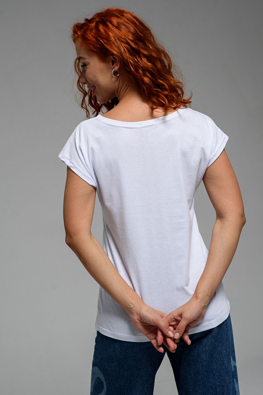 Футболка полуприлегающего силуэта, средней длины, с округлой горловиной. Рукав цельнокроеный, короткий.