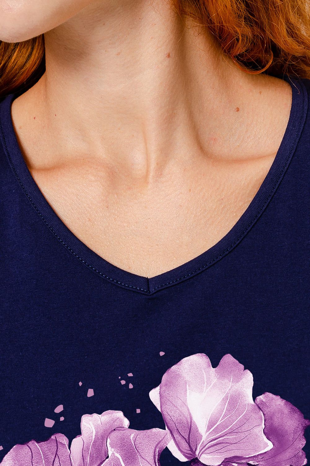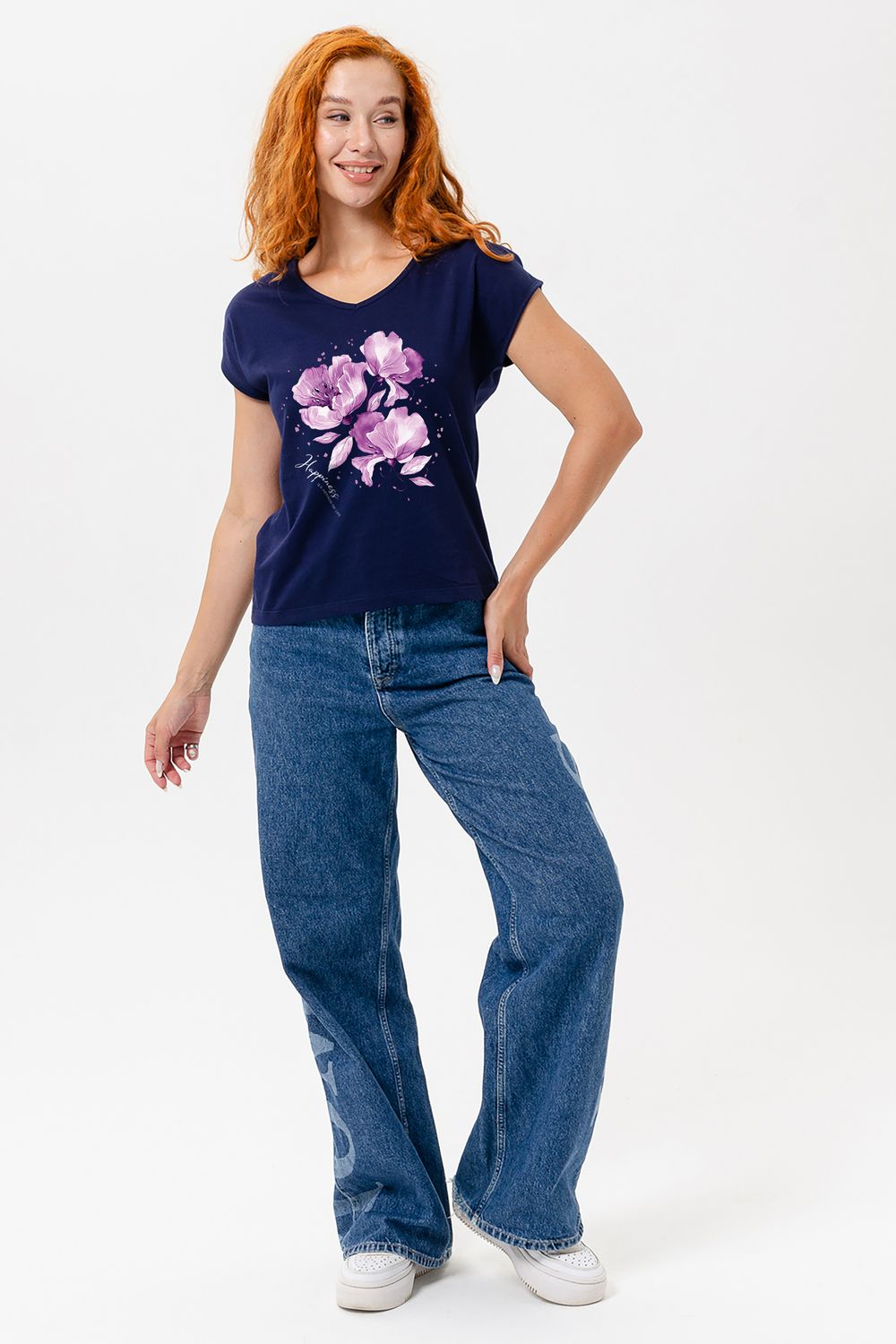 Футболка полуприлегающего силуэта, средней длины, с V-образной горловиной. Рукав цельнокроеный, короткий. Горловина и пройма обработаны бейкой из основного полотна. допустимо различие в цвете от представленного на фото.