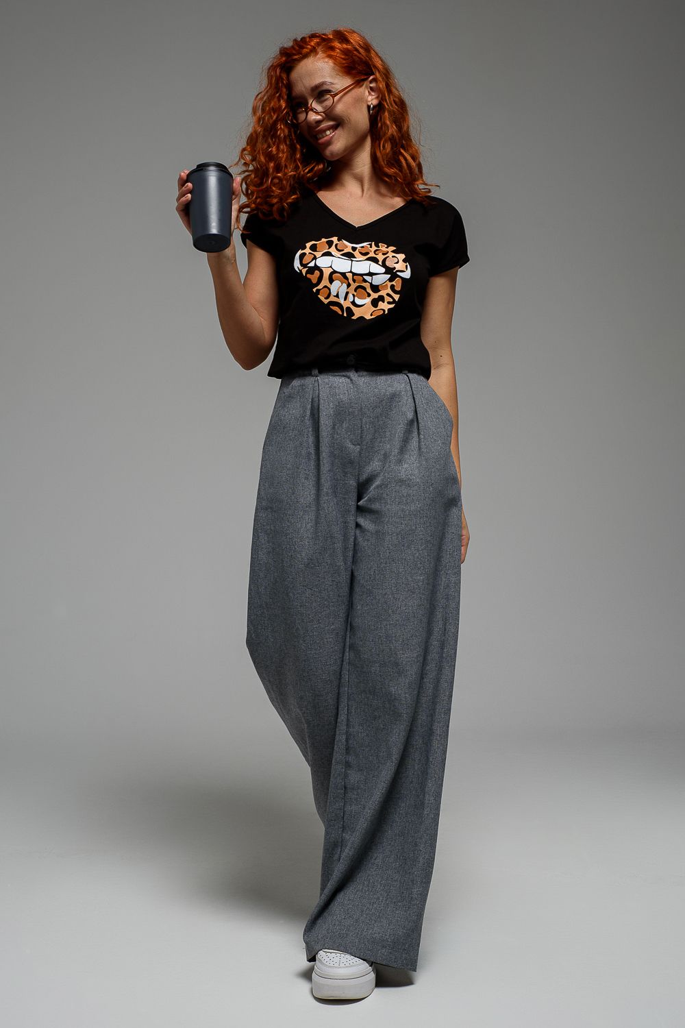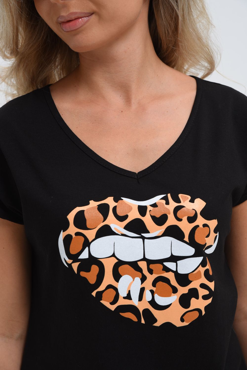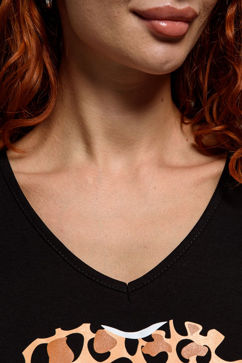 Футболка полуприлегающего силуэта, средней длины, с V-образной горловиной. Рукав цельнокроеный, короткий. Горловина и пройма обработаны бейкой из основного полотна. допустимо различие в цвете от представленного на фото.