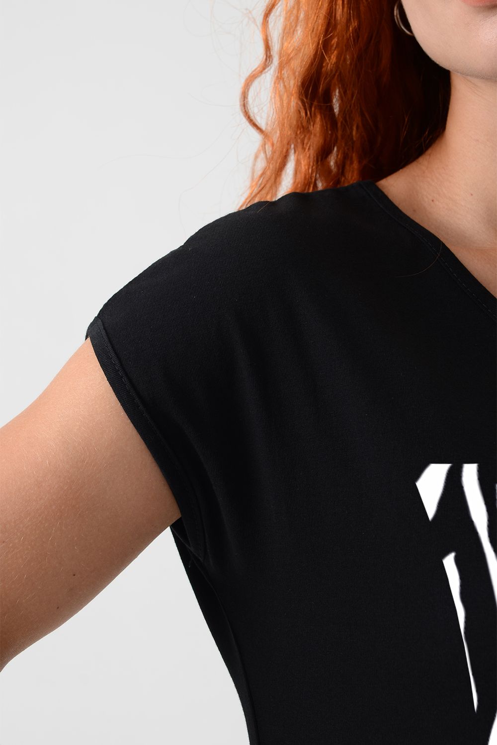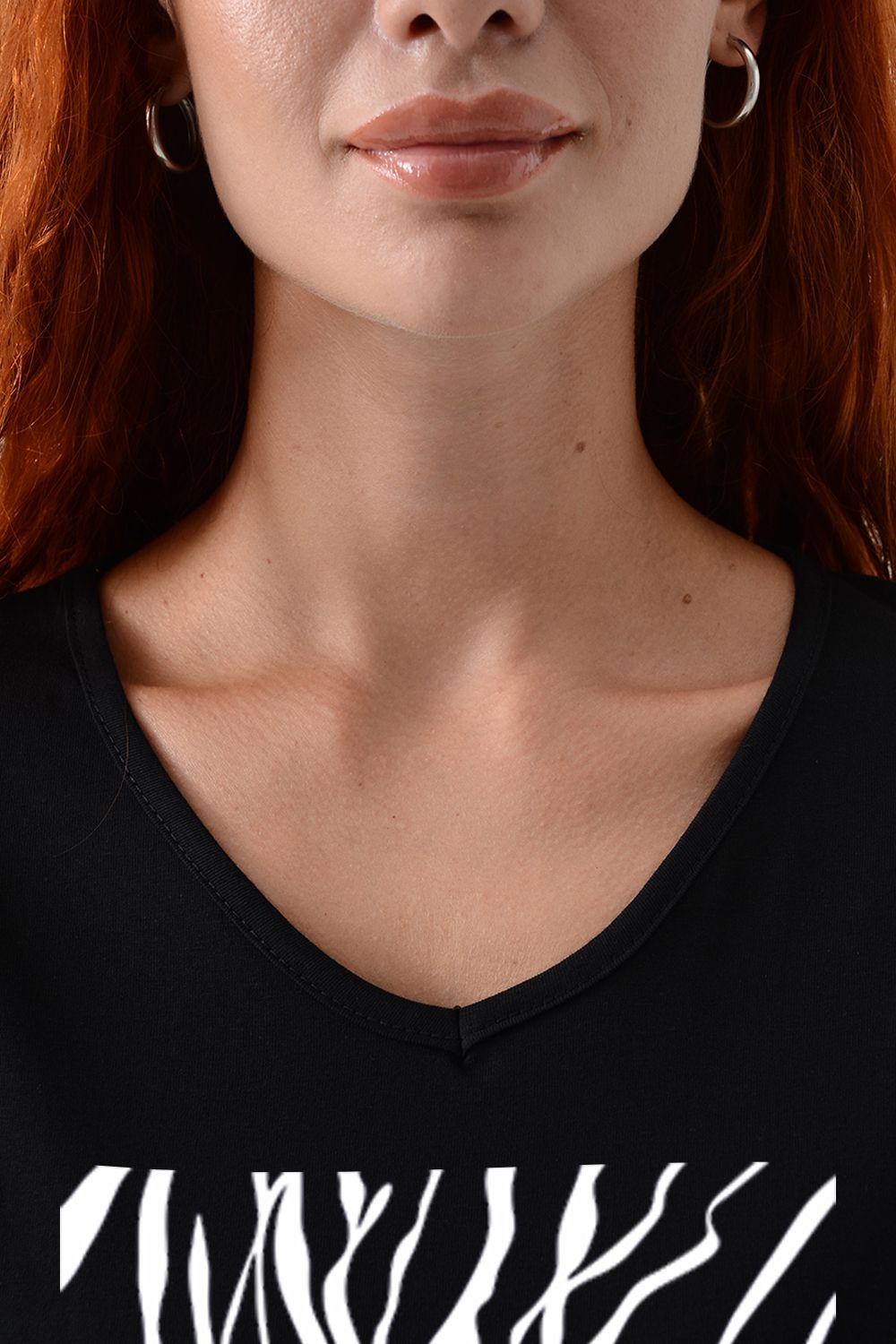 Футболка полуприлегающего силуэта, средней длины, с V-образной горловиной. Рукав цельнокроеный, короткий. Горловина и пройма обработаны бейкой из основного полотна. допустимо различие в цвете от представленного на фото.