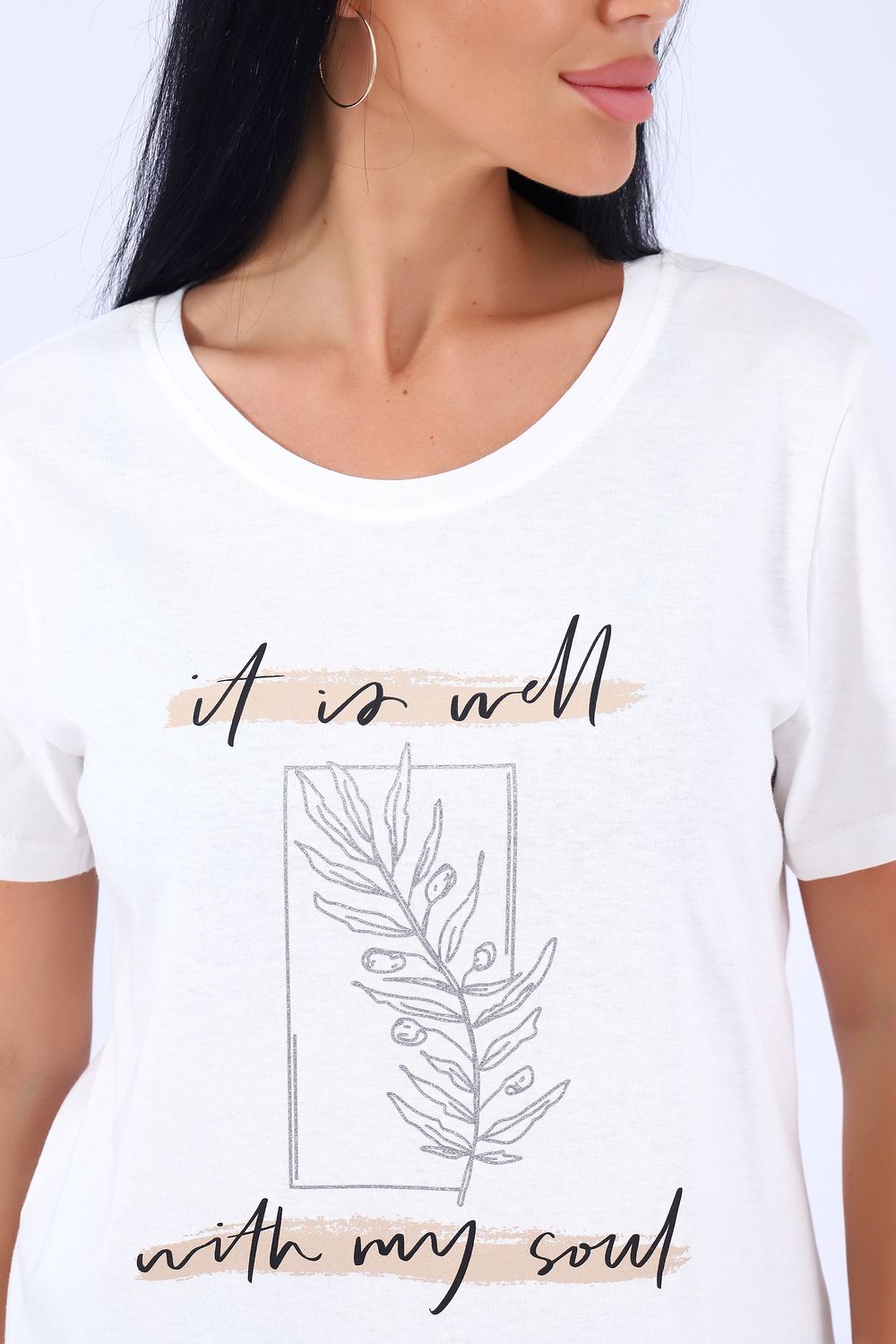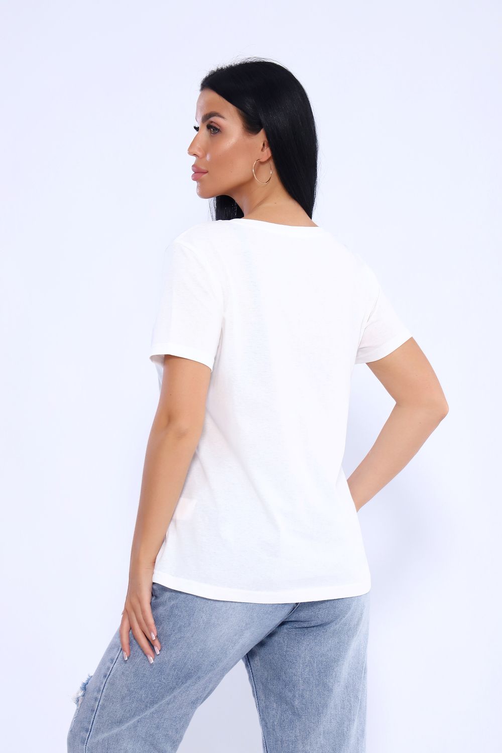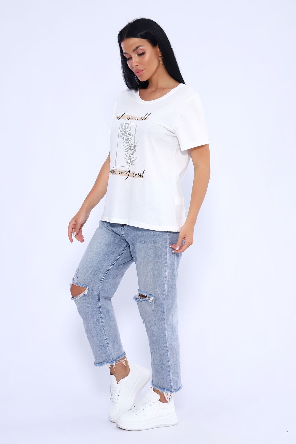 Прекрасный вариант для летнего отдыха и комфортного "лука" на каждый день! Нежные, пастельные расцветки и принт с "французским блеском" придают стиль и шарм. Футболка изготовлена из мягкого 100% хлопка. Фасон приталенный. Горловина обработана обтачкой с последующей отстрочкой. Рукава и низ изделия в подгибку.