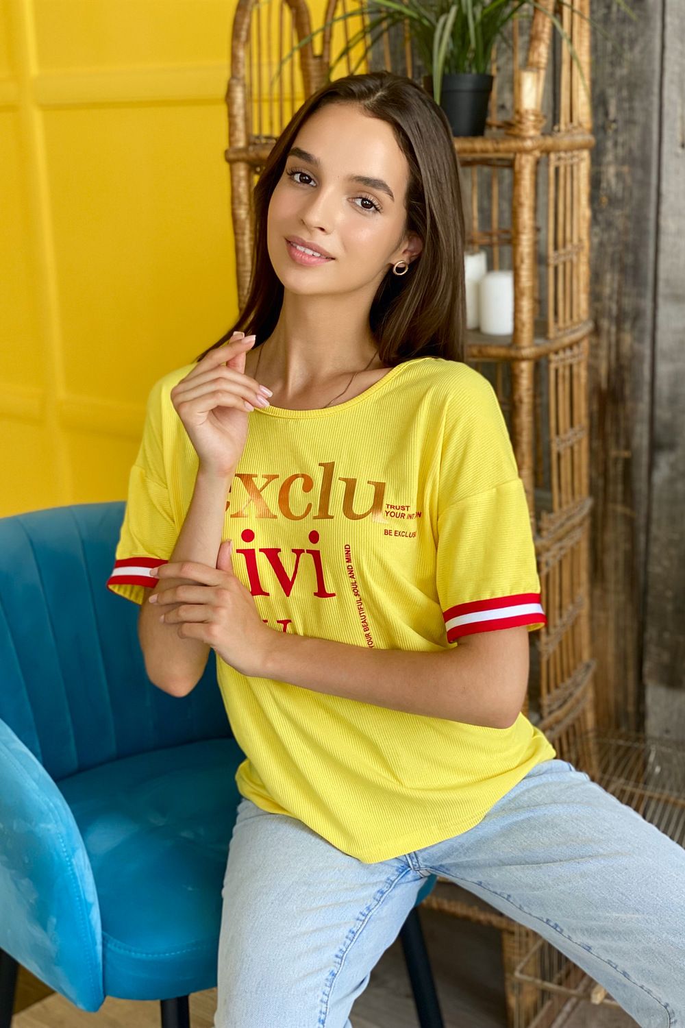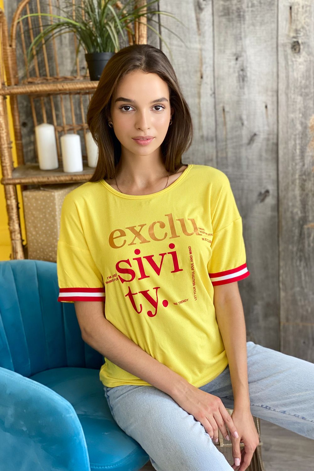 Футболка прямого силуэта, с округлой горловиной спереди, с удлиненной спинкой. Рукав короткий, обработанный декоративной тесьмой. В верхней части спинки обработан фигурный вырез с тесьмой. Горловина обработана бейкой из основного полотна.