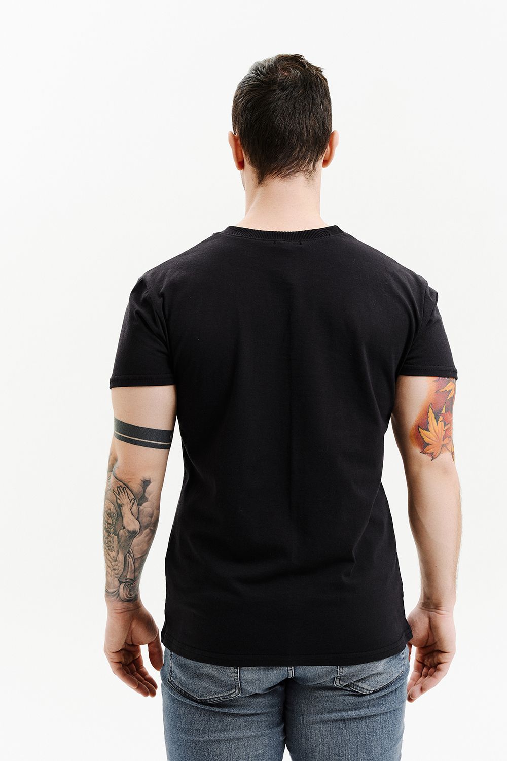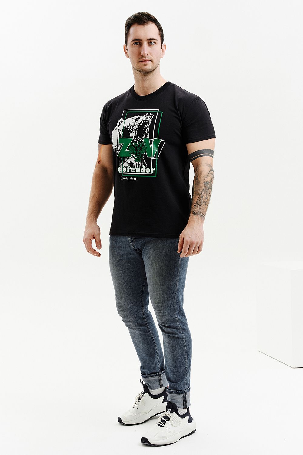 Футболка прямая, свободная, средней длины, с округлой горловиной. Рукав короткий. Горловина обработана эластичной обтачкой.