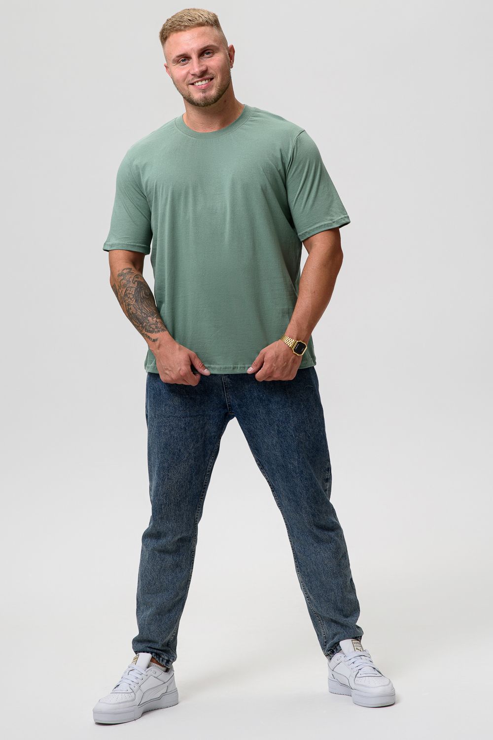 Классическая мужская футболка однотонного цвета. Базовая свободная трикотажная футболка из 100% хлопка - это стильная вещь, которая прекрасно подойдет для всех случаев: отдыха, активных тренировок, прогулки или офиса. Благодаря своему классическому дизайну, она легко сочетается с любой частью гардероба, а ее удлиненная форма и круглый вырез горловины придают удобство и стиль. Производство Узбекистан. Плотность ткани 150-160гр. Допускается небольшое различие в цвете от представленного на фото. В светло-сером возможна меланжированная расцветка. Размер возможен двойной, ориентируйтесь по меньшему размеру.