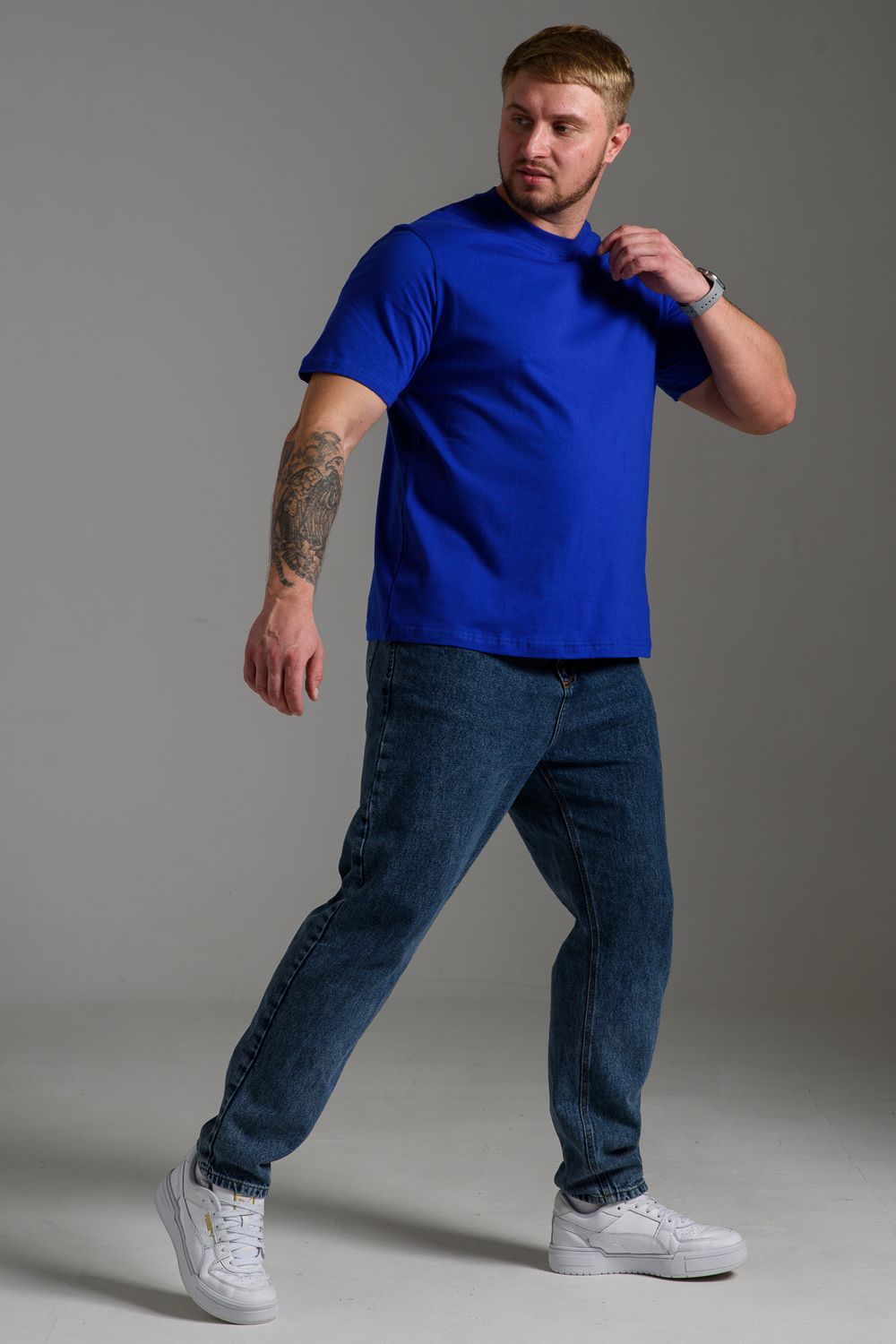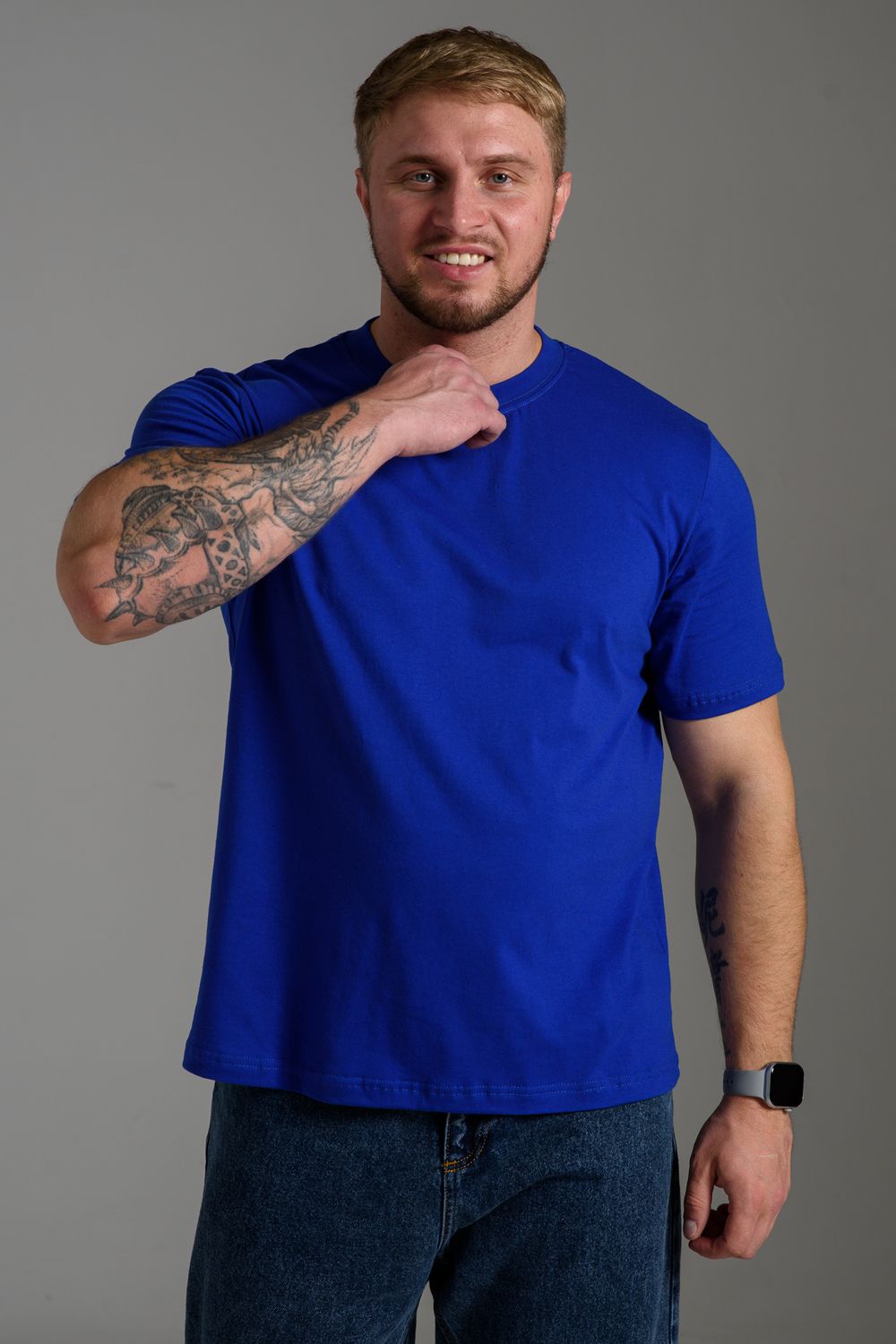 Классическая мужская футболка однотонного цвета. Базовая свободная трикотажная футболка из 100% хлопка - это стильная вещь, которая прекрасно подойдет для всех случаев: отдыха, активных тренировок, прогулки или офиса. Благодаря своему классическому дизайну, она легко сочетается с любой частью гардероба, а ее удлиненная форма и круглый вырез горловины придают удобство и стиль. Производство Узбекистан. Плотность ткани 150-160гр. Допускается небольшое различие в цвете от представленного на фото. В светло-сером возможна меланжированная расцветка. Размер возможен двойной, ориентируйтесь по меньшему размеру.
