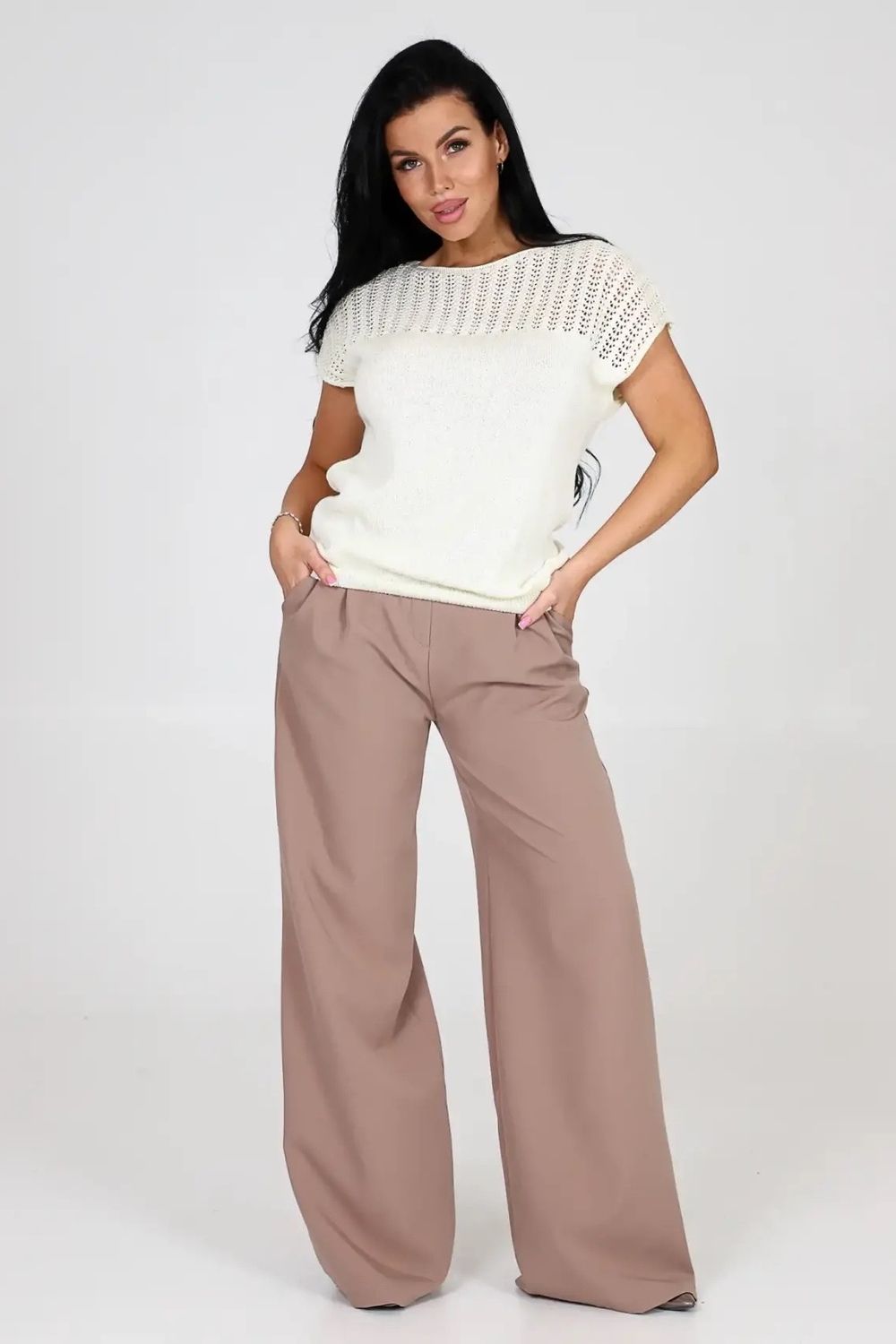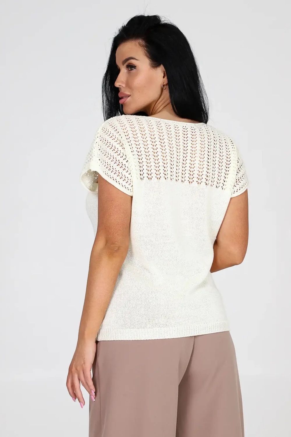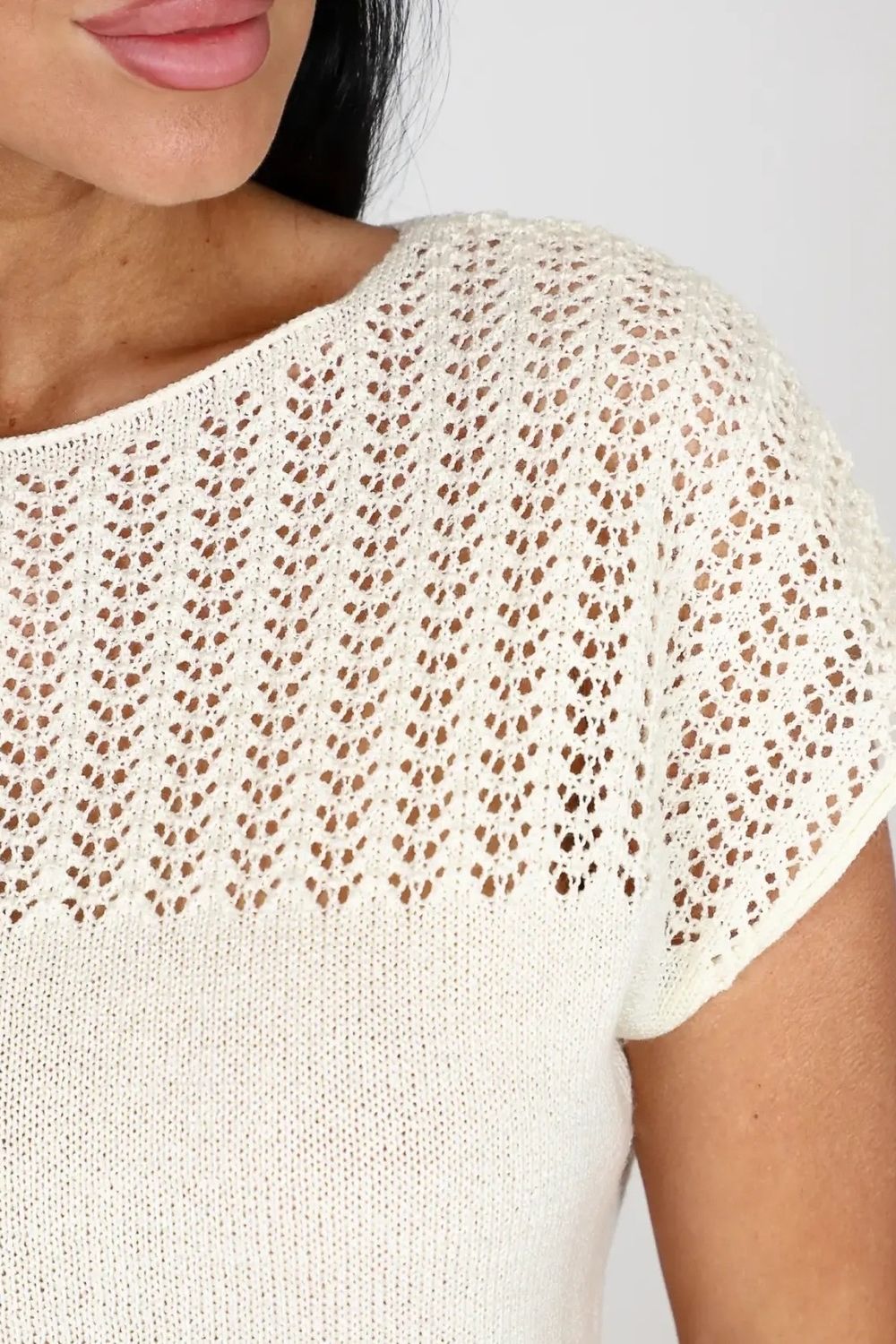 Невероятно мягкий и легкий материал, создаст стильный нарядный и модный образ и станет неотъемлемой частью вашего гардероба, благодаря свободному крою скрывает все лишнее. Наша вязанная футболка женская оверсайз - это идеальный выбор для тех, кто ценит комфорт, стиль и моду. Футболка женская oversize ажурная имеет длинную посадку, что делает ее универсальной для различных типов фигуры. Она также подходит для беременных женщин, благодаря своей приталенной посадке и возможности растягиваться. Уникальный узор и оверсайз силуэт делает эту футболку модной и актуальной. Вы можете носить ее как в повседневной жизни или дома, так и на специальных мероприятиях или в офис под пиджак. Она идеально сочетается с джинсами, юбками или шортами, также с деловым стилем и подойдет полным женщинам больших размеров, создавая модный образ. Вязаная ажурная текстура добавляет особый шарм и интригу этой футболке зимой, осенью ,весной и летом. Она привлекает внимание и позволяет создавать разнообразные образы. Будьте стильными и уверенными в себе с нашей вязанной ажурной oversize футболкой. Она подчеркнет вашу индивидуальность и добавит неповторимости в ваш образ на прогулке или в ресторане на празднике.