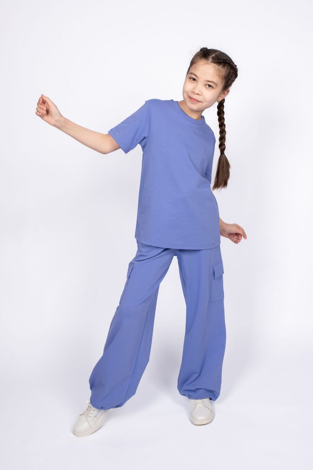 Футболка детская прямого силуэта с втачным коротким рукавом. Горловина круглая, обработана воротником из кашкорсе. Горловина спинки внутри укреплена бейкой из кулирки. Низ изделия и рукава обработан швом вподгибку. На спинке принт Шелкография. Надпись переводится как "Спорт".