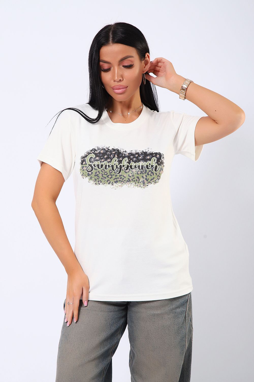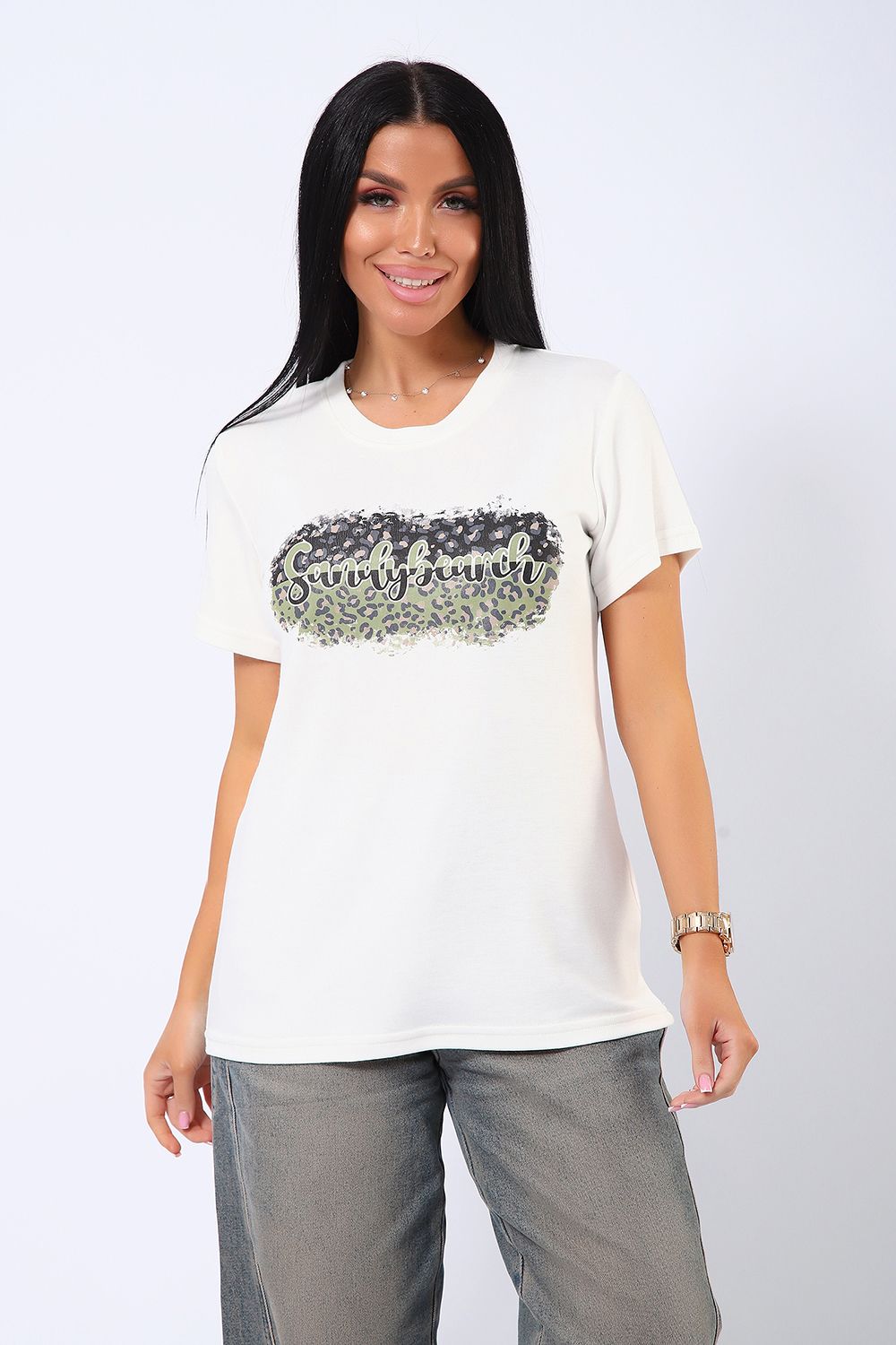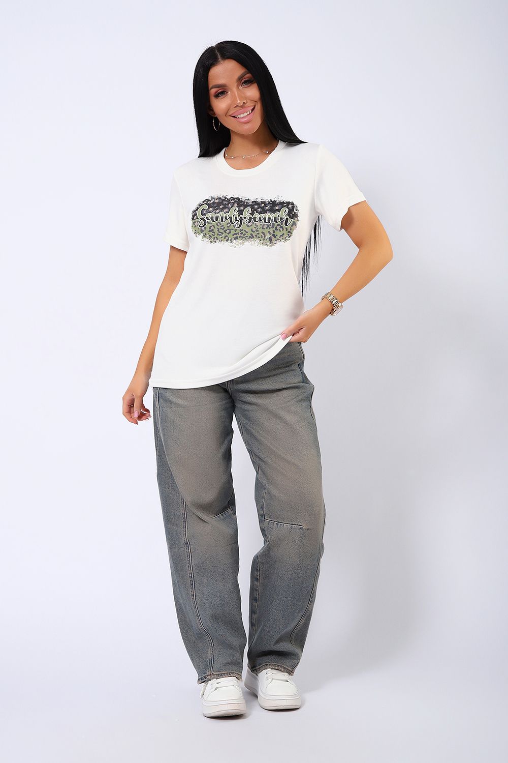 Классическая белая футболка с неброским принтом на полочке - незаменимая вещь летнего гардероба! Прекрасно сочетается с любым видом одежды, освежит и выгодно подчеркнет загар1 Благодаря большому содержанию хлопка в ткани футболка прекрасно пропускает воздух, что так актуально в жаркие летние дни!