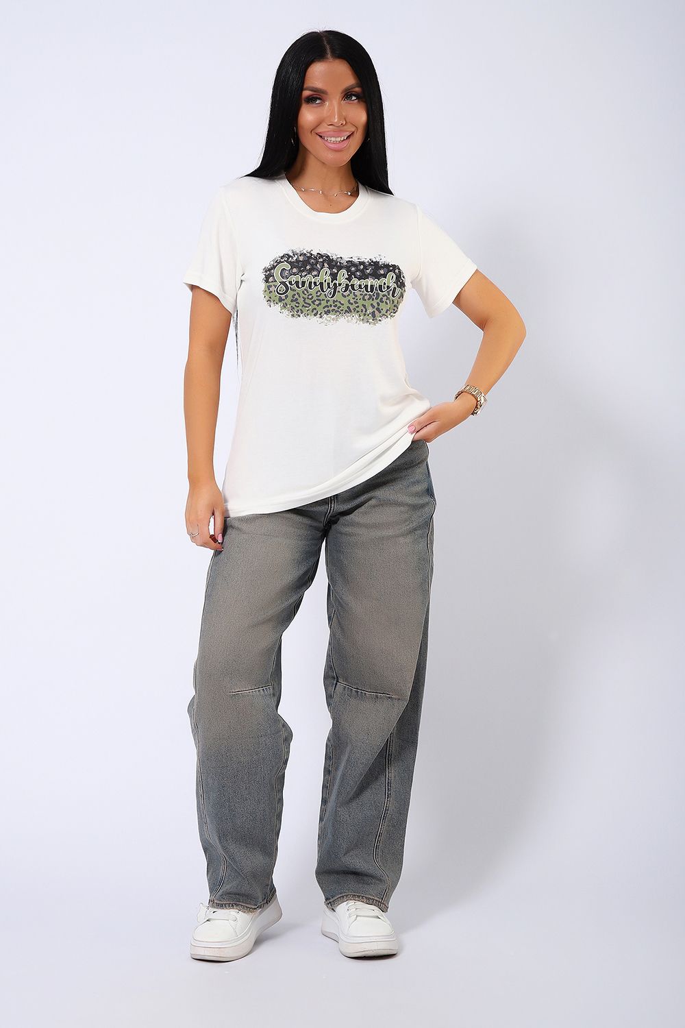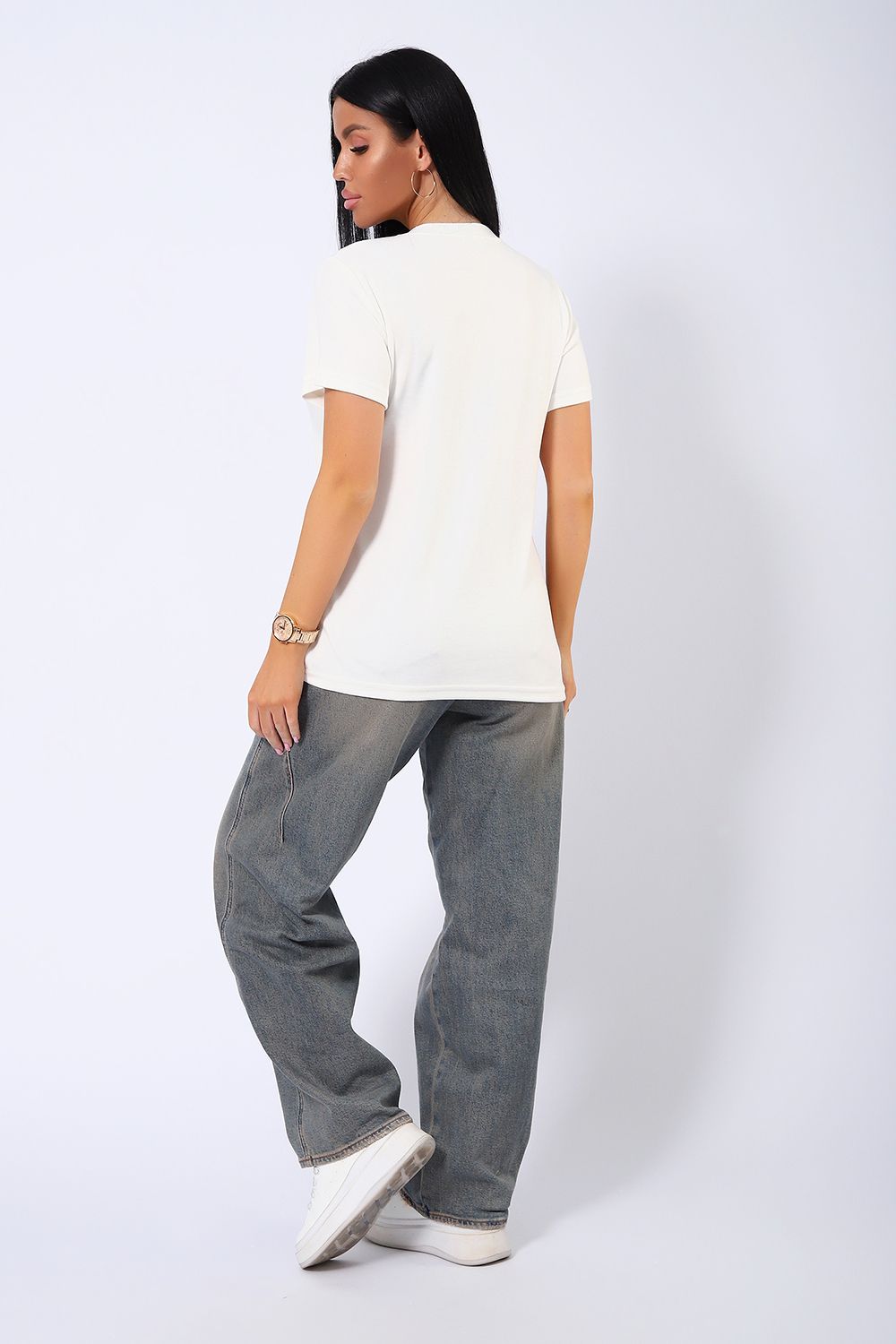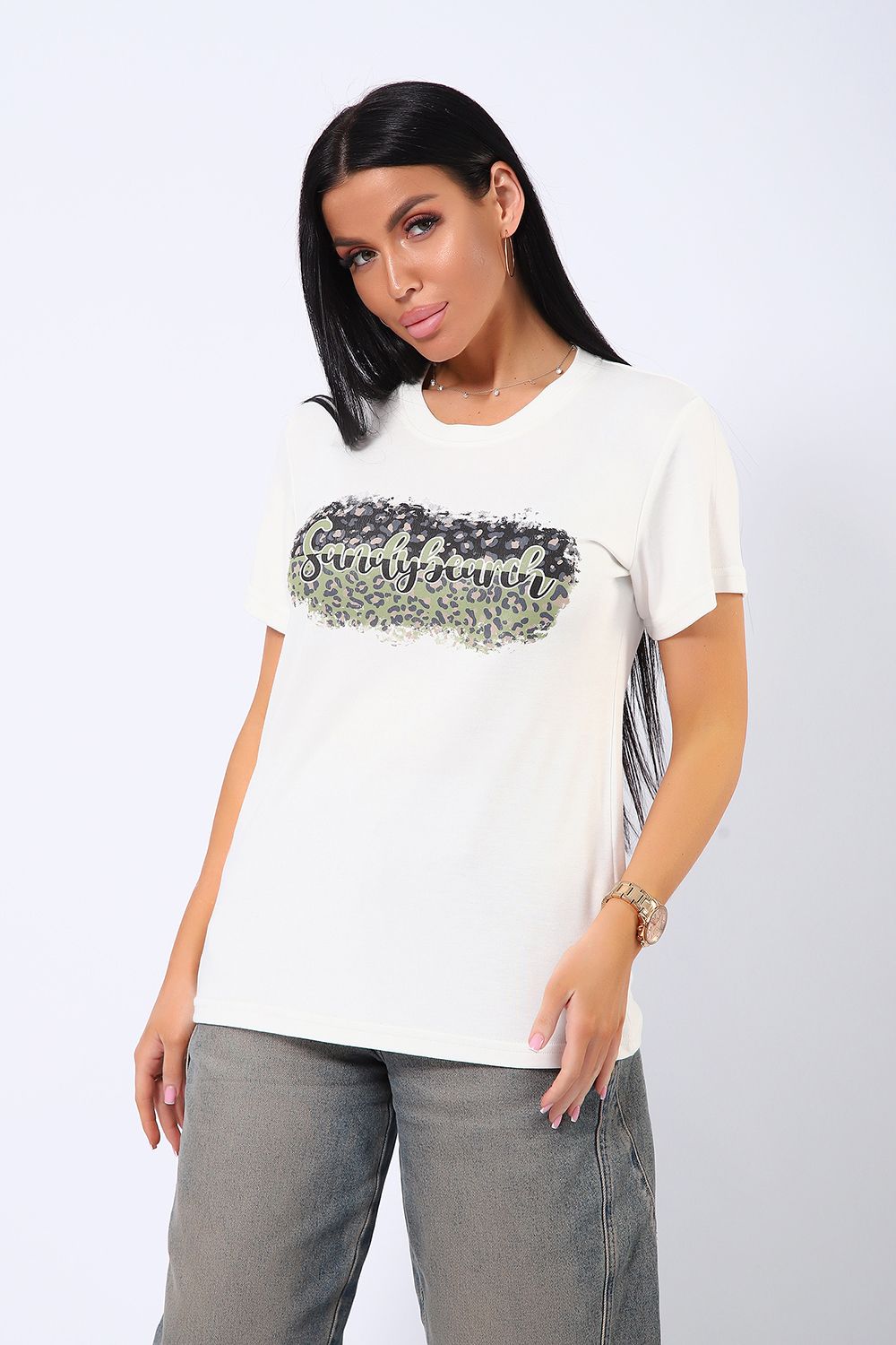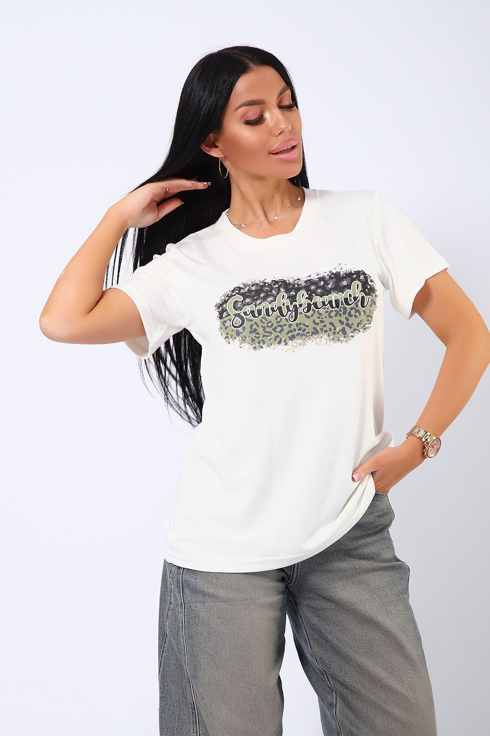 Классическая белая футболка с неброским принтом на полочке - незаменимая вещь летнего гардероба! Прекрасно сочетается с любым видом одежды, освежит и выгодно подчеркнет загар1 Благодаря большому содержанию хлопка в ткани футболка прекрасно пропускает воздух, что так актуально в жаркие летние дни!