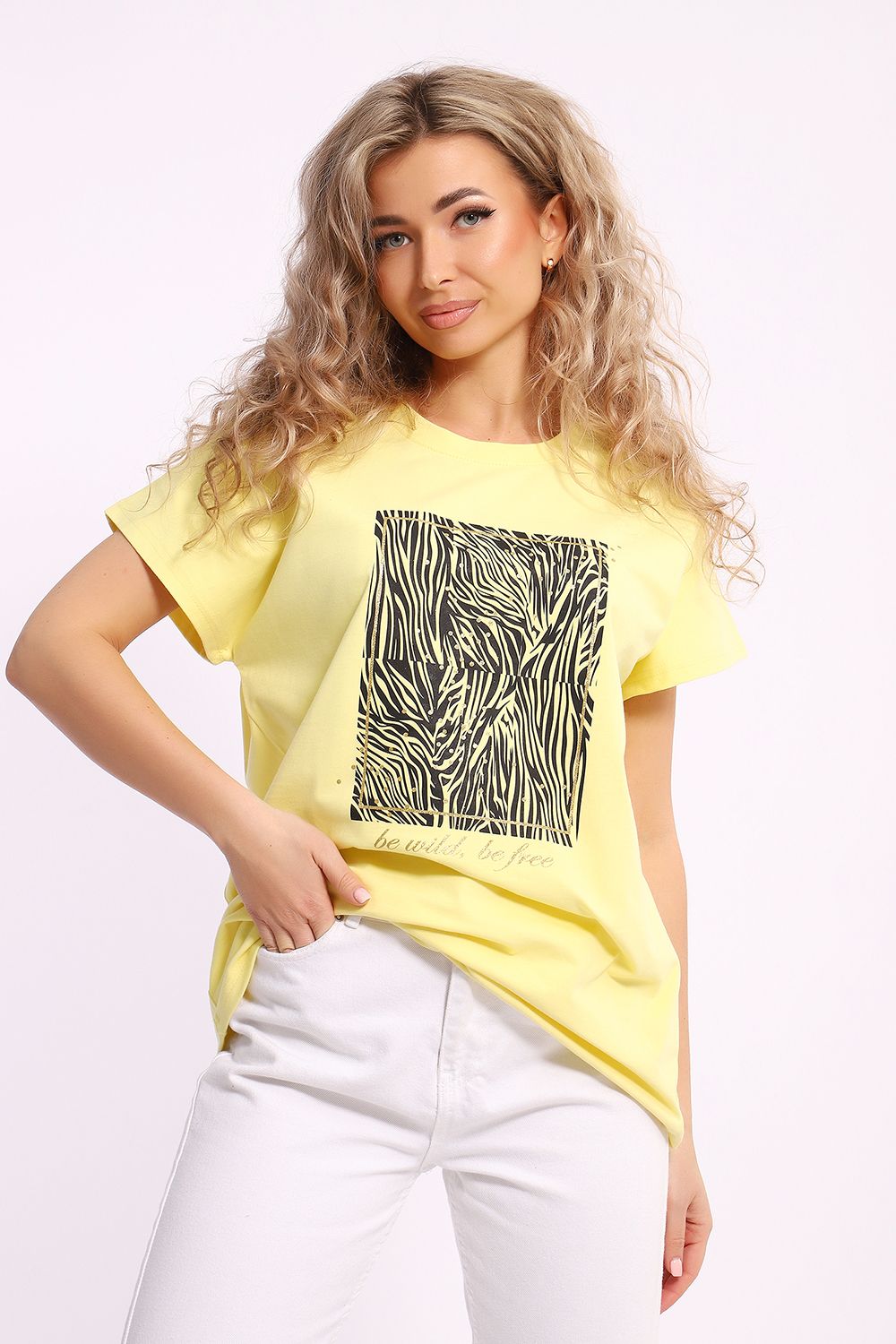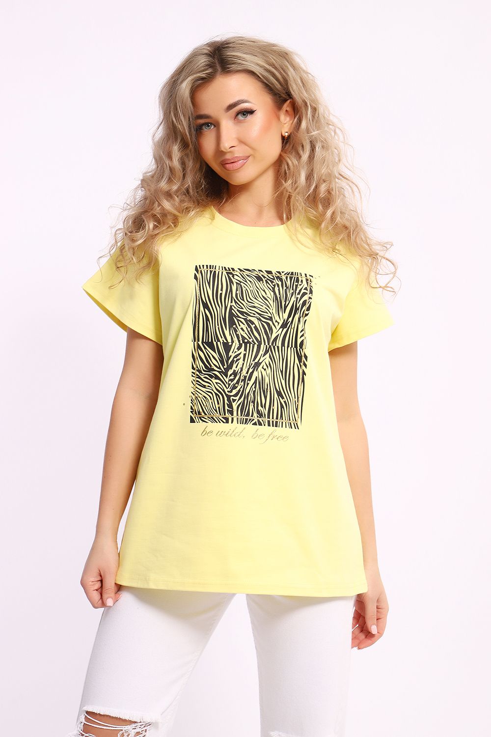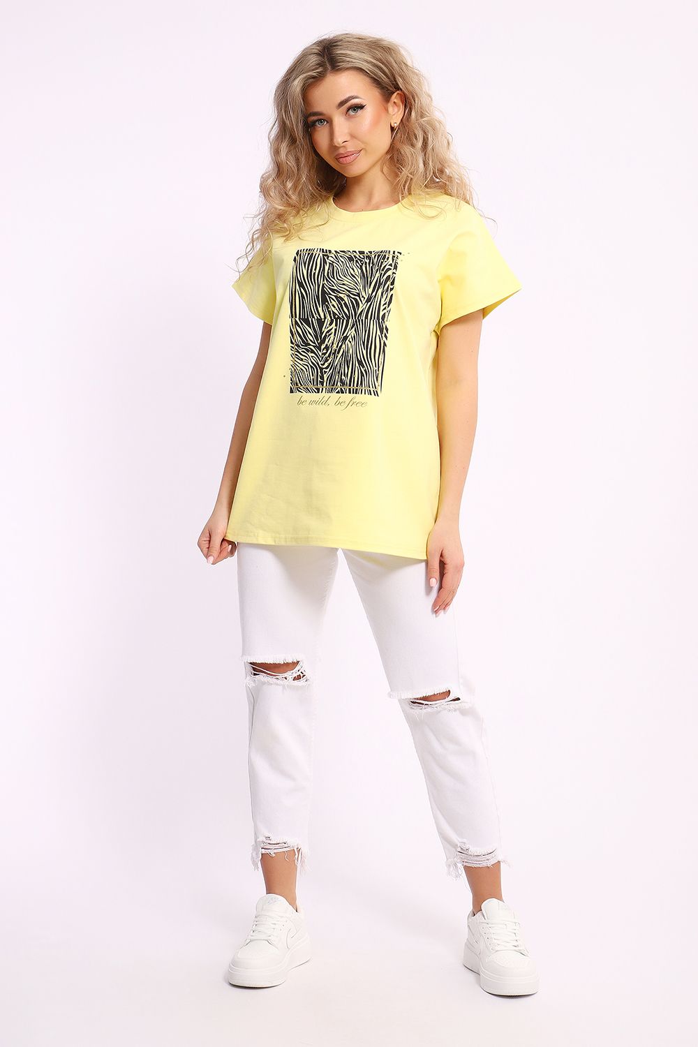Стильная женская футболка прямого кроя, сшита в модном стиле cversize. Футболка представлена в ярких летних расцветках, которые позволят вам выделяться из толпы. Полочка декорирована ярким принтом, который придает изделию особый шик . Универсальная и нарядная модель футболки отлично подойдет для любого образа и станет необходимой вещью в вашем гардеробе наравне с повседневными белыми, черными футболками.