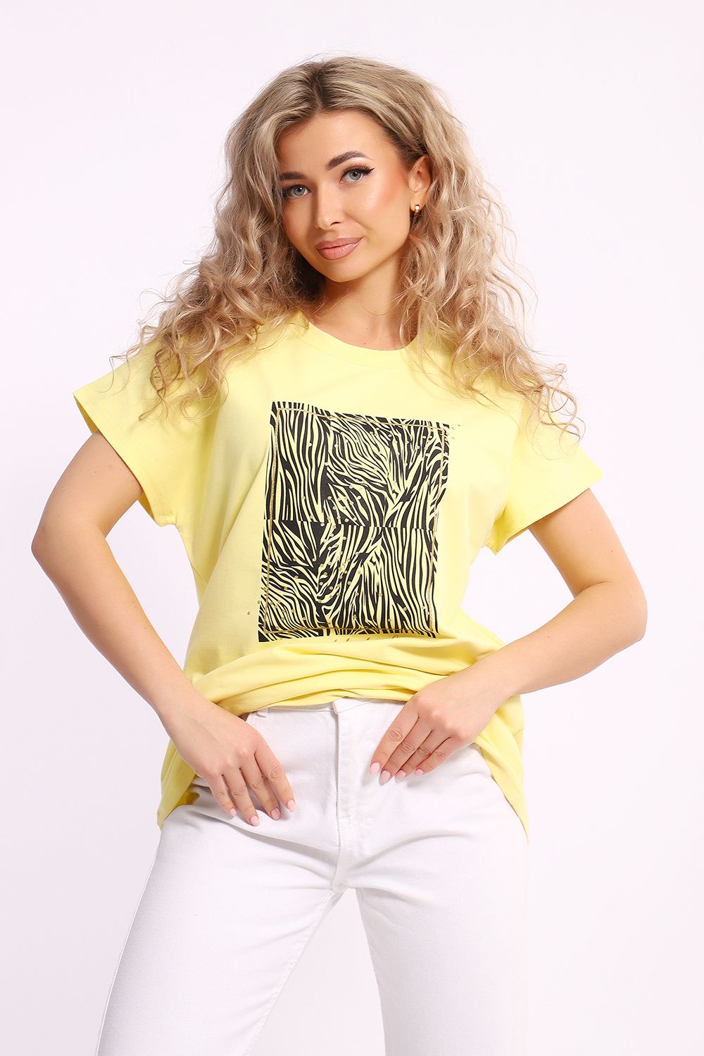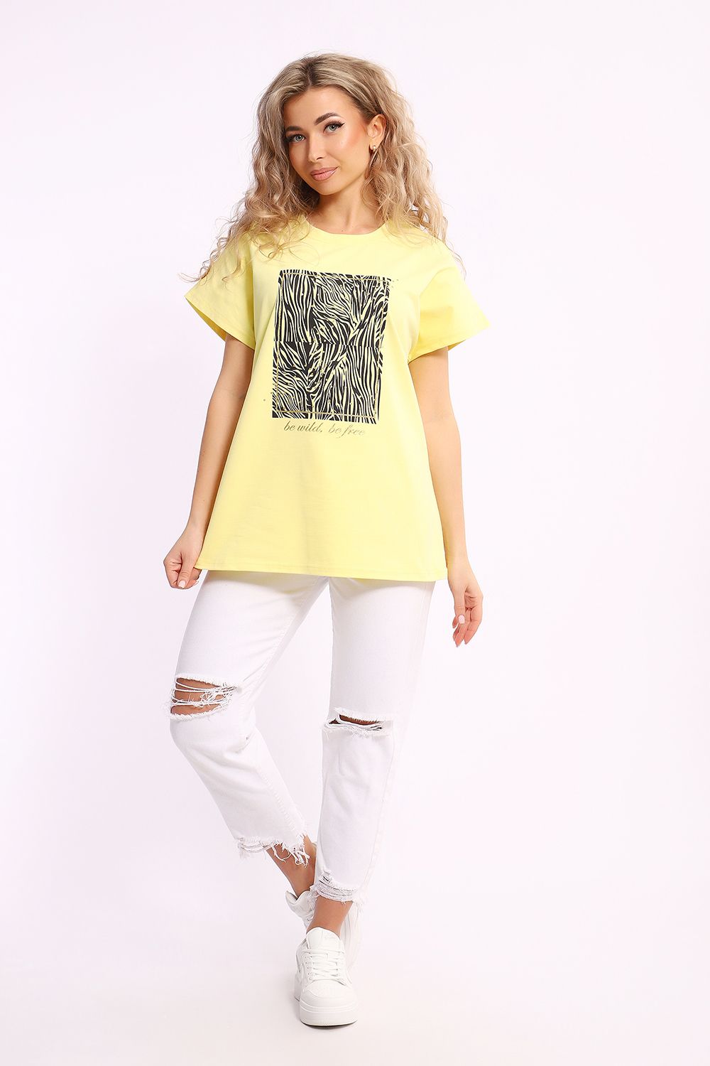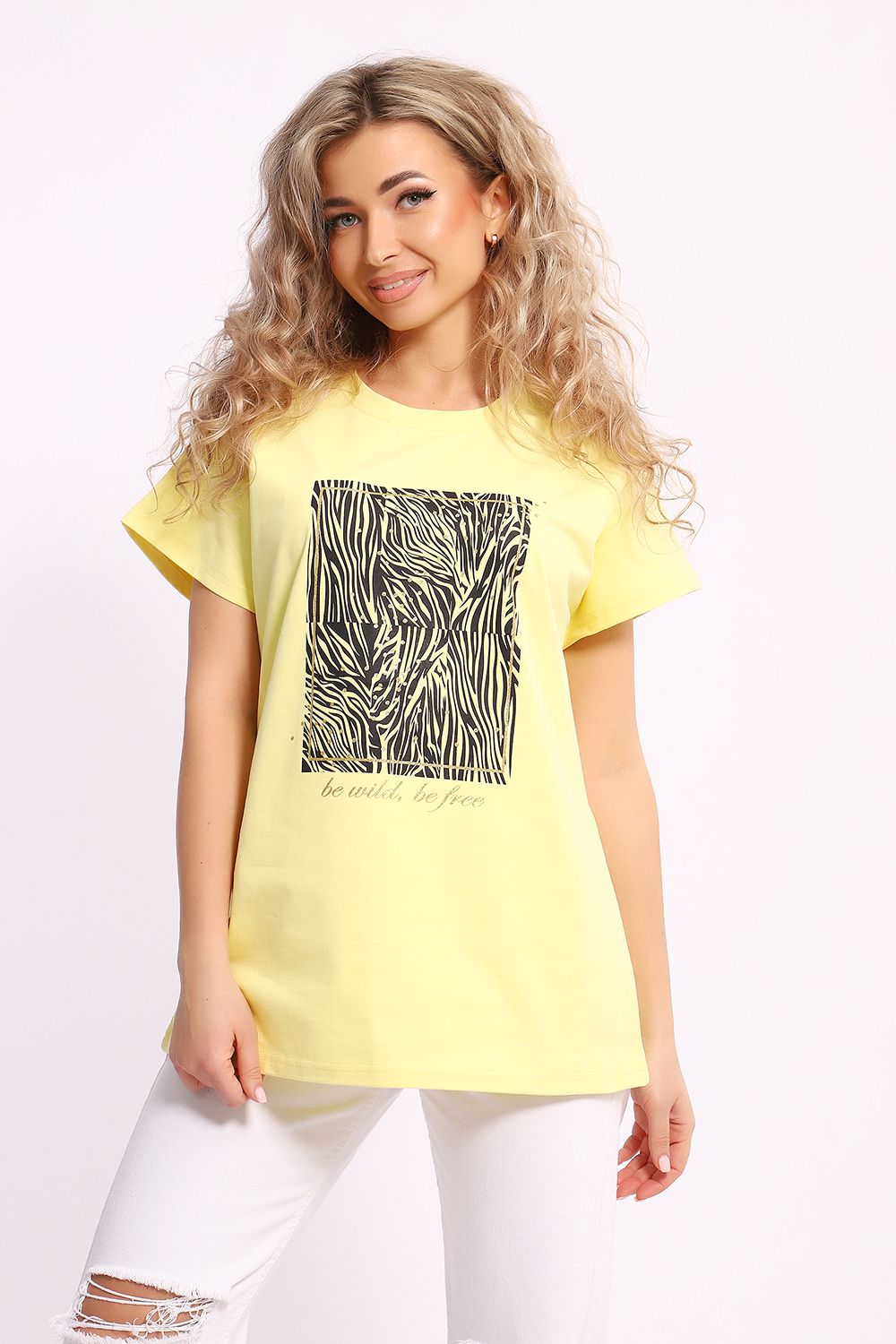 Стильная женская футболка прямого кроя, сшита в модном стиле cversize. Футболка представлена в ярких летних расцветках, которые позволят вам выделяться из толпы. Полочка декорирована ярким принтом, который придает изделию особый шик . Универсальная и нарядная модель футболки отлично подойдет для любого образа и станет необходимой вещью в вашем гардеробе наравне с повседневными белыми, черными футболками.