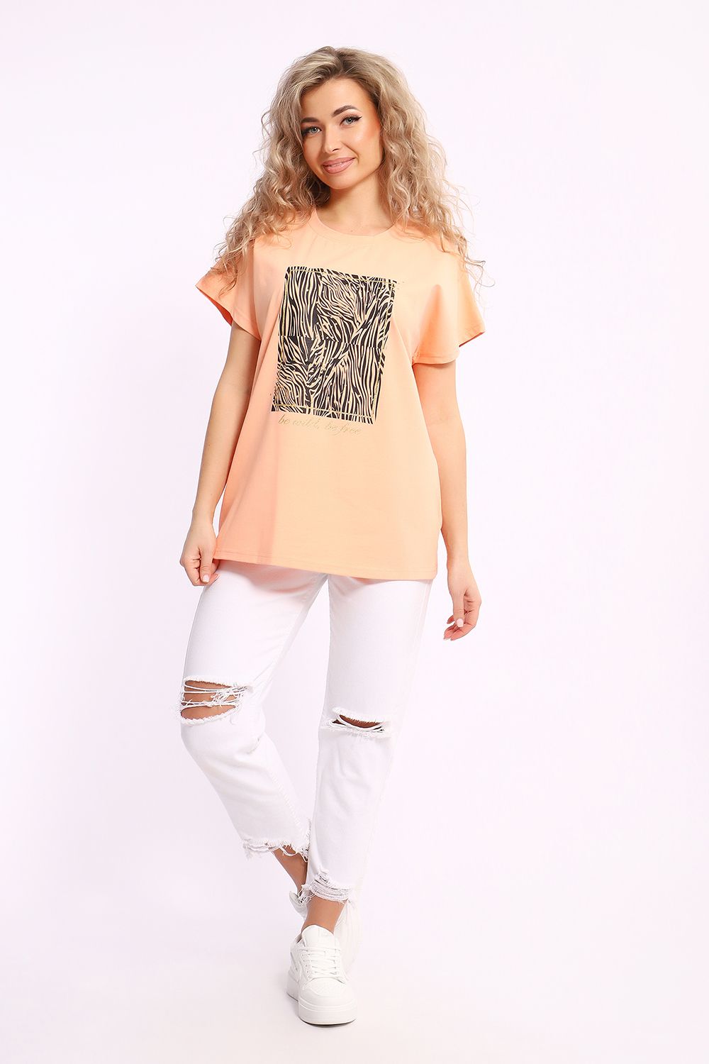 Стильная женская футболка прямого кроя, сшита в модном стиле cversize. Футболка представлена в ярких летних расцветках, которые позволят вам выделяться из толпы. Полочка декорирована ярким принтом, который придает изделию особый шик . Универсальная и нарядная модель футболки отлично подойдет для любого образа и станет необходимой вещью в вашем гардеробе наравне с повседневными белыми, черными футболками.