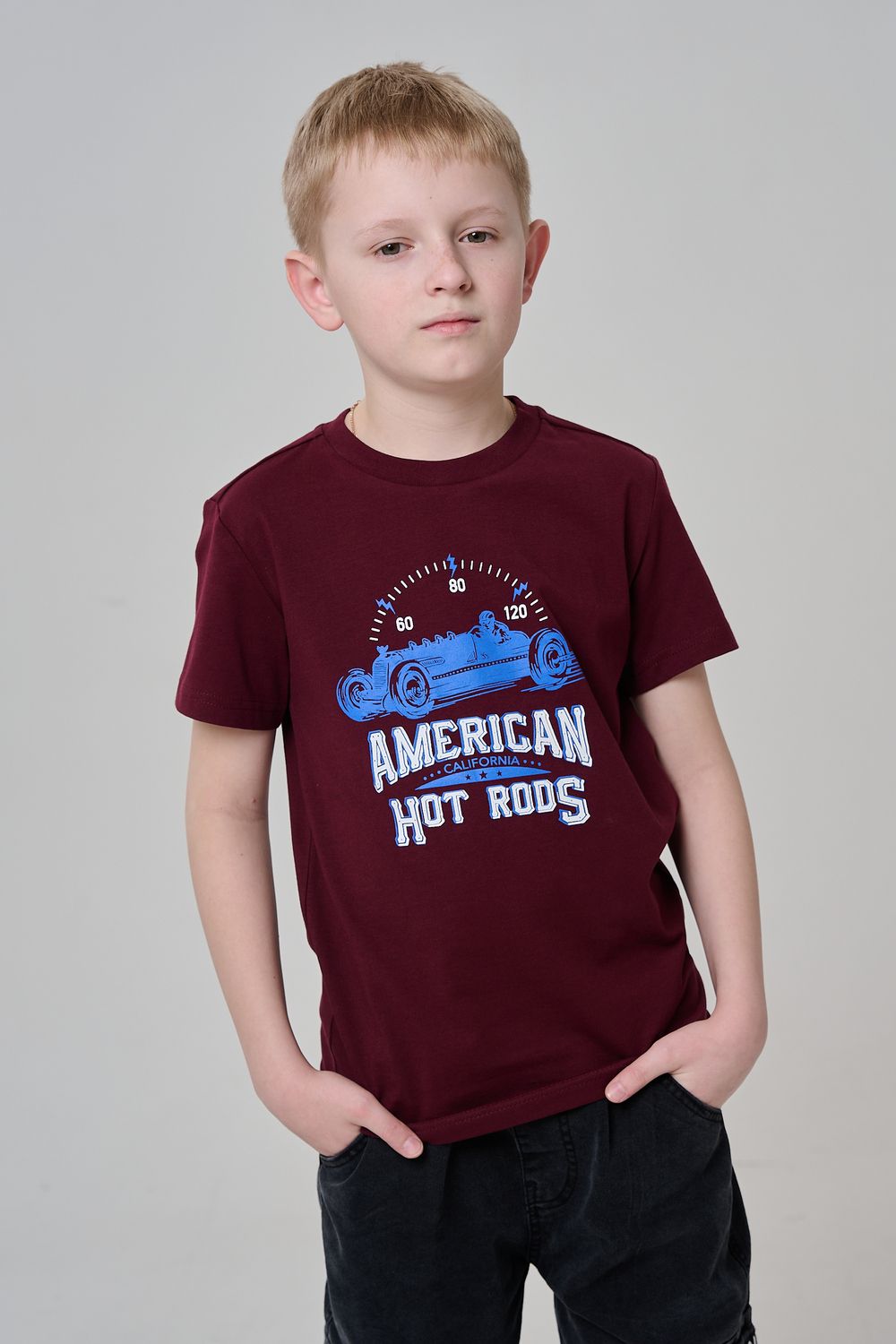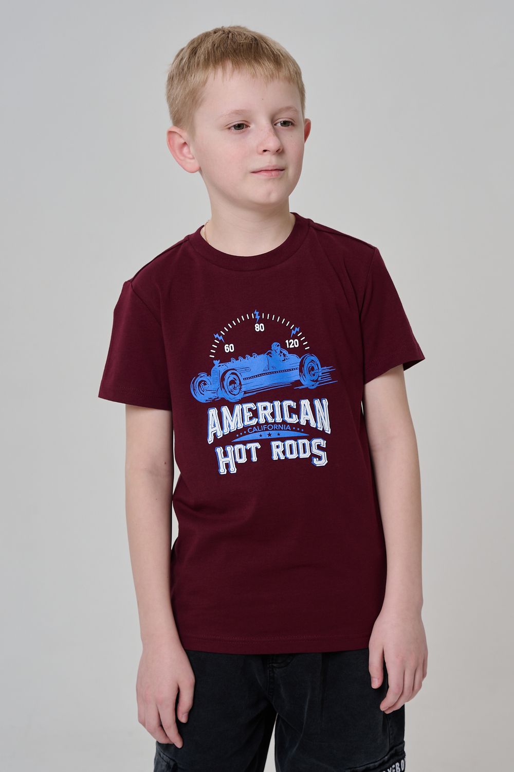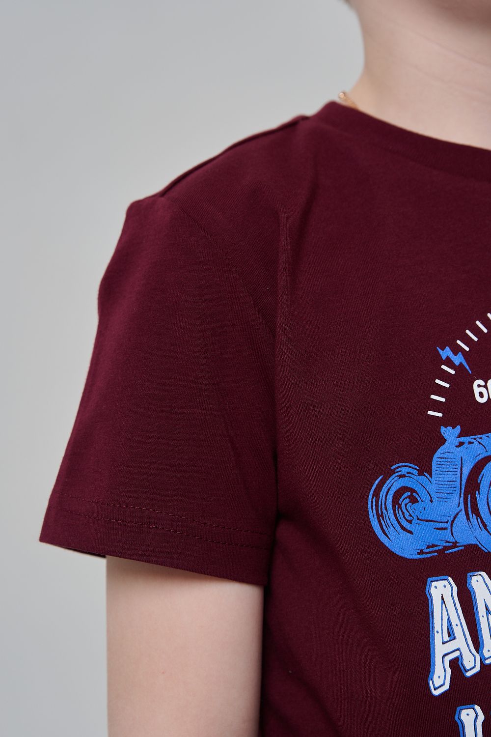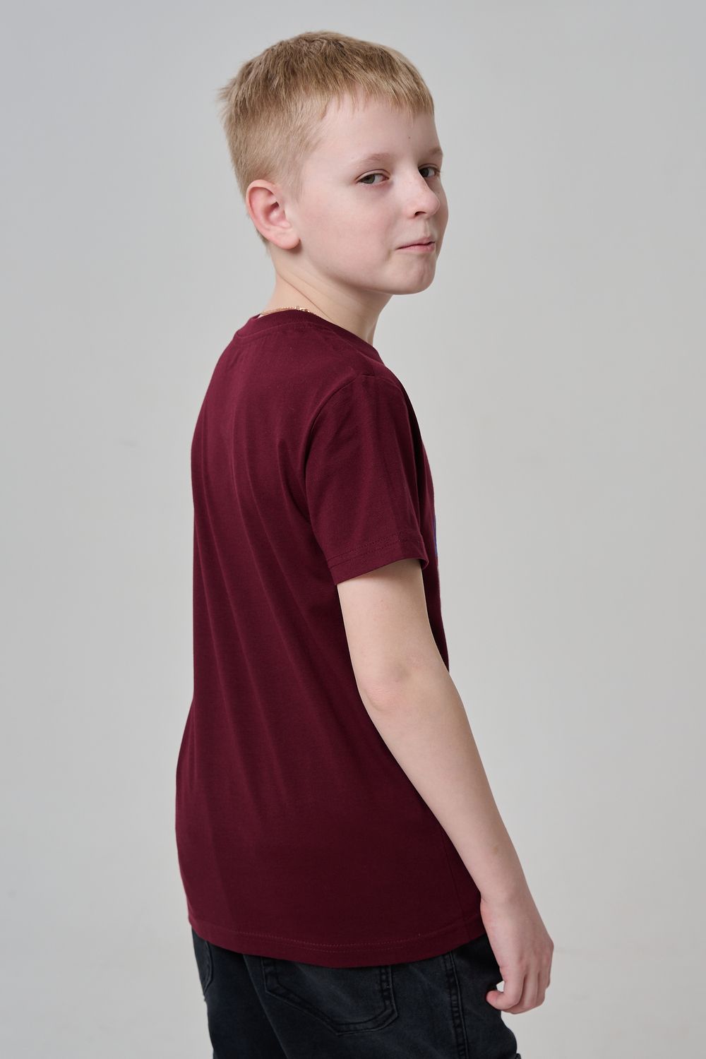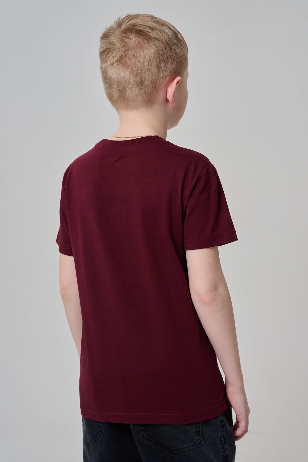 Футболка для мальчика бордовая с принтом. Свободный крой, дышащий материал - 100% хлопок. Подходит для повседневной носки.