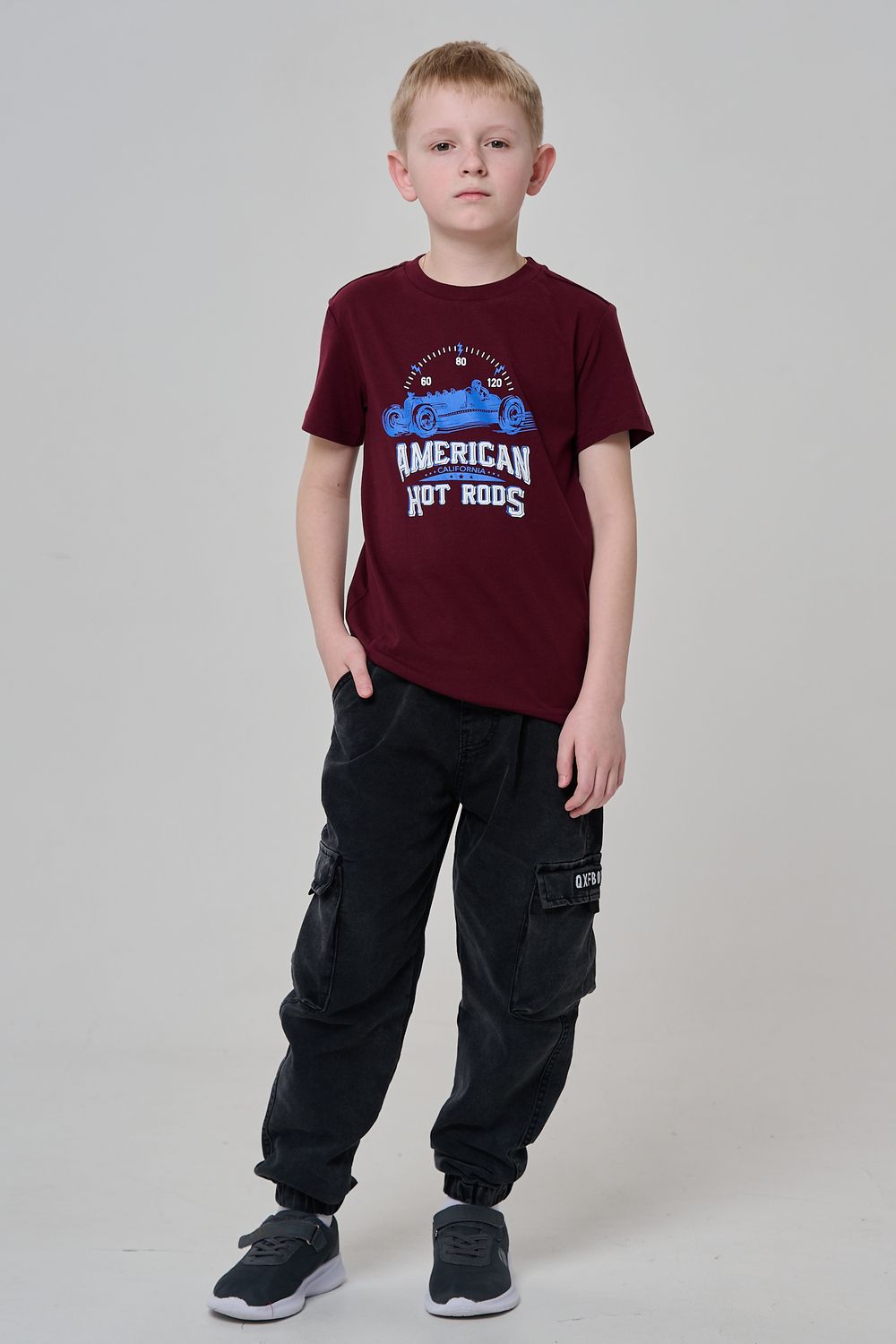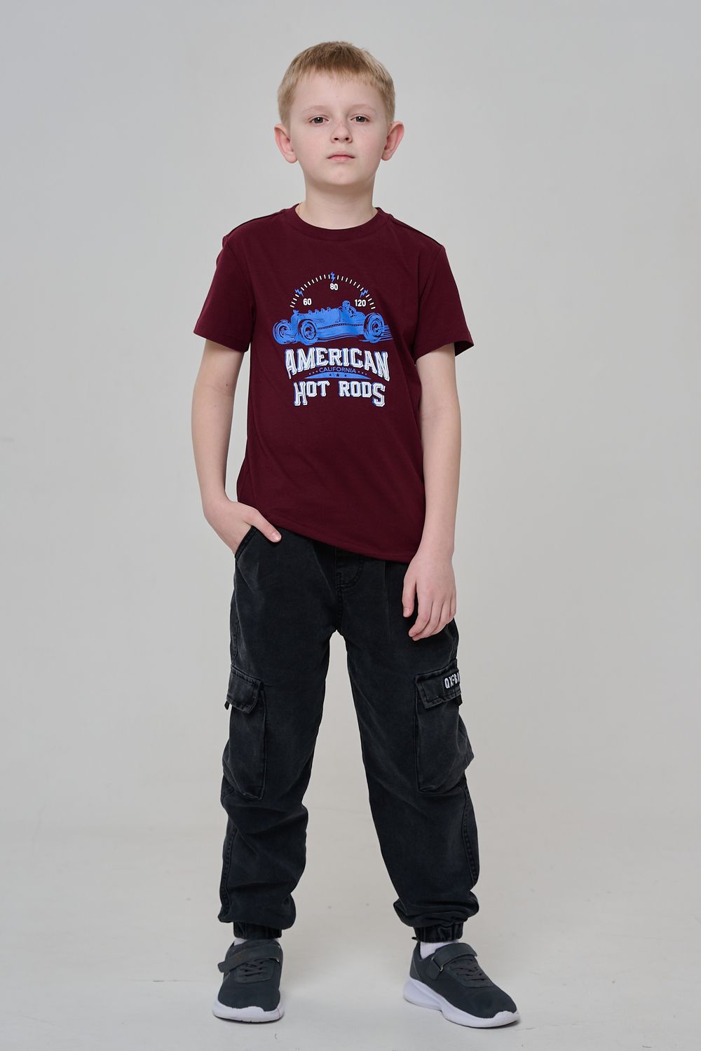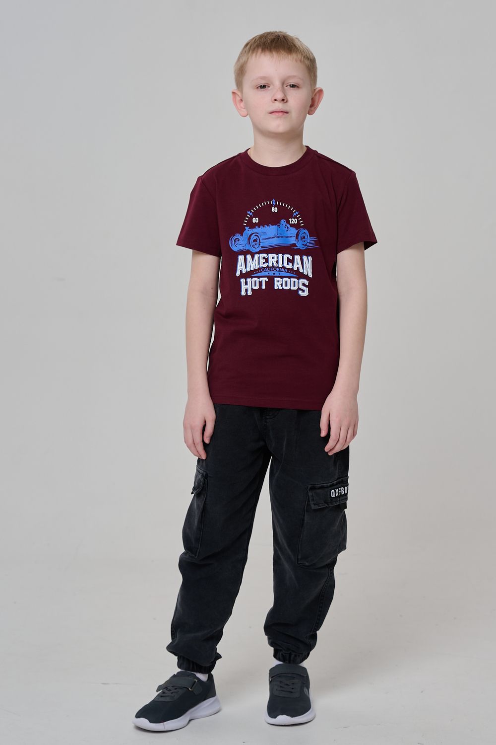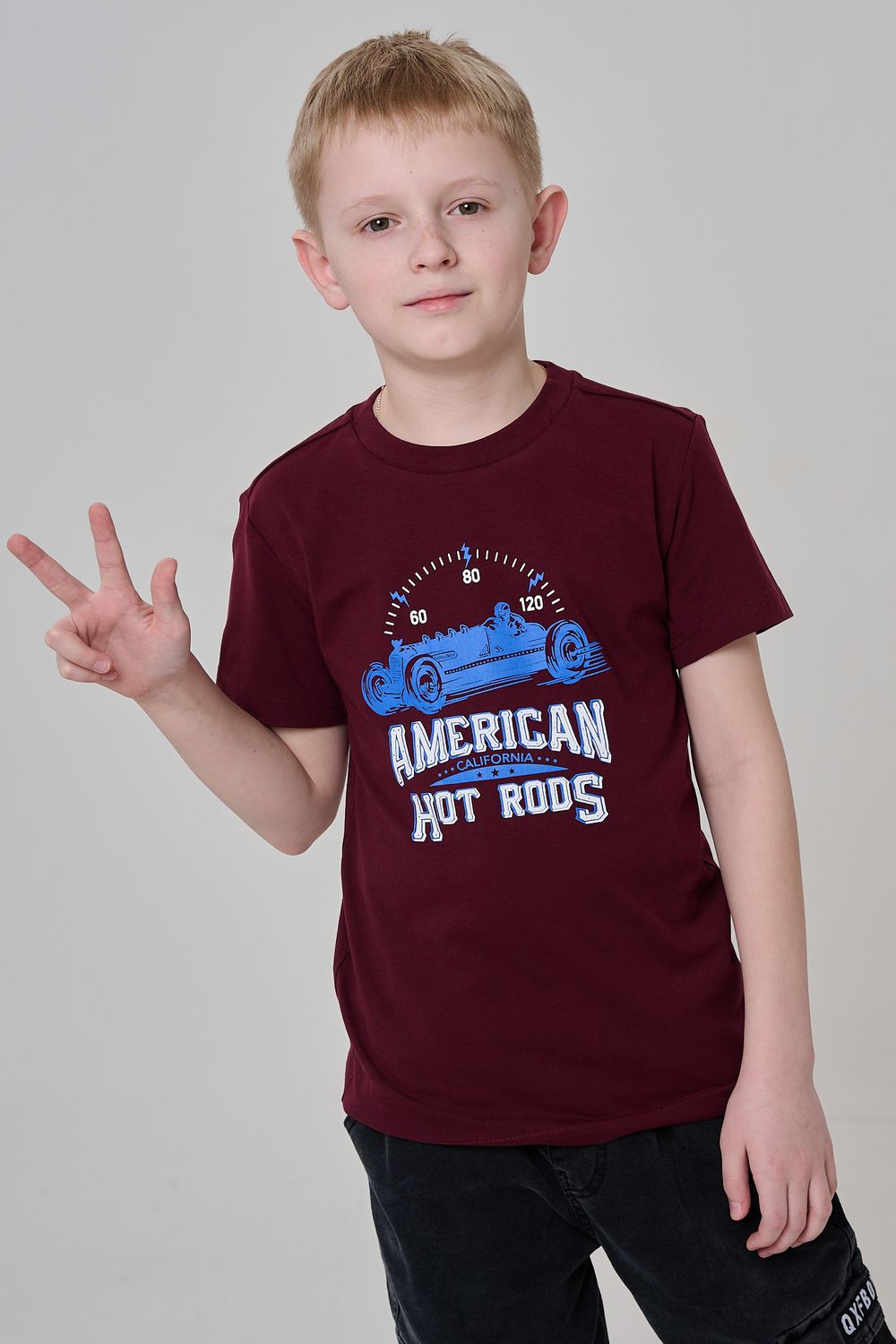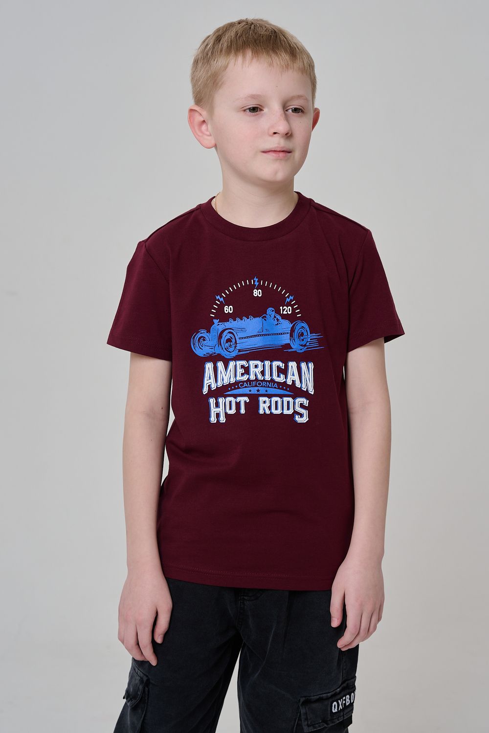 Футболка для мальчика бордовая с принтом. Свободный крой, дышащий материал - 100% хлопок. Подходит для повседневной носки.