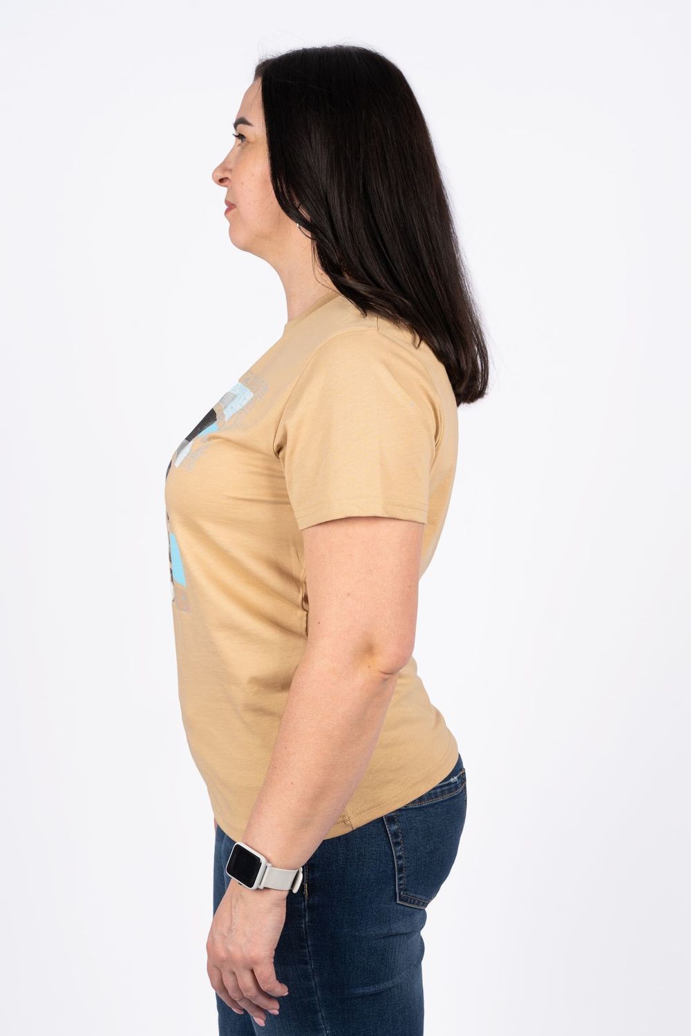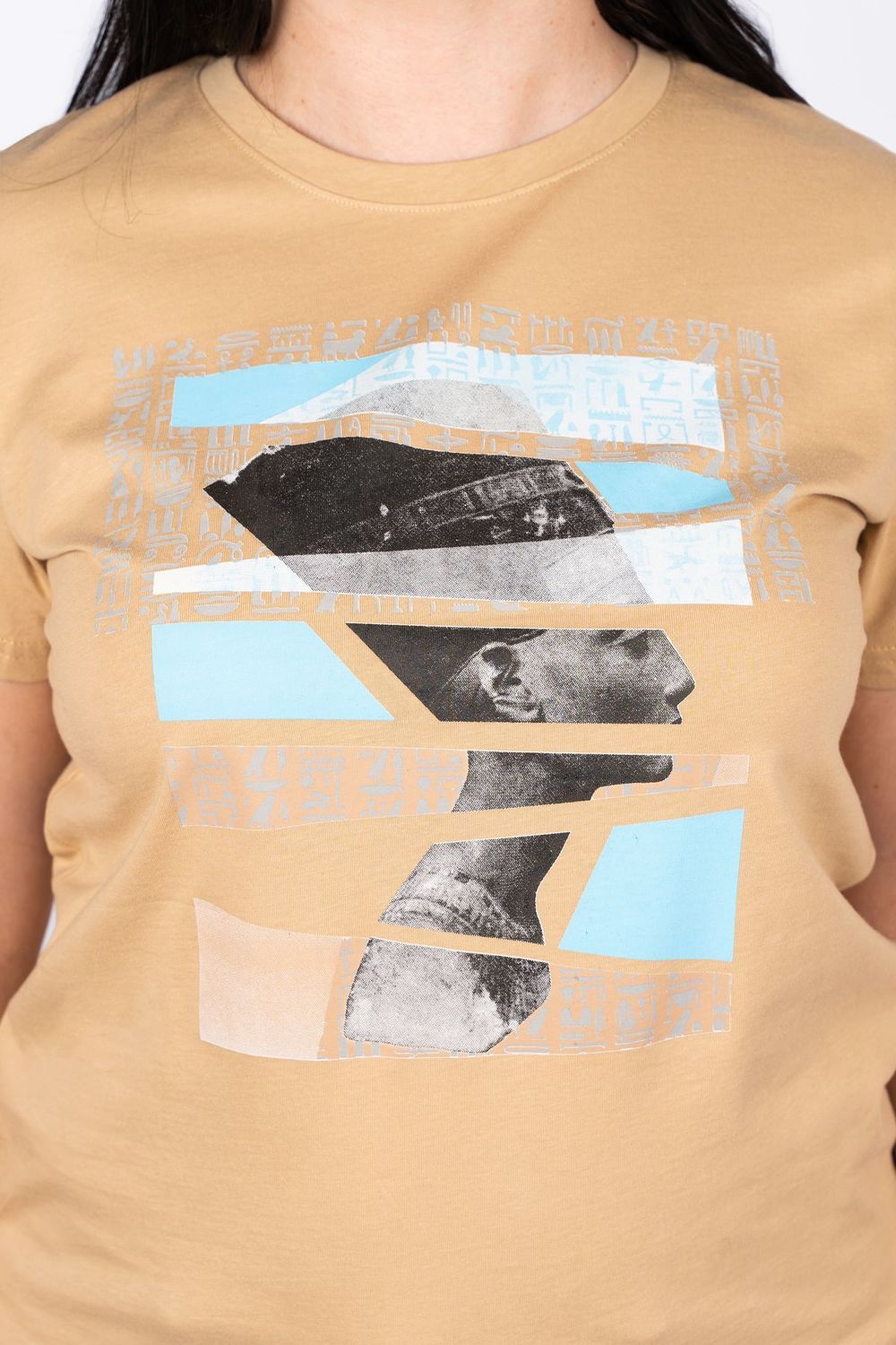 Благодаря цвету и принту, эта футболка придаст обладательнице статусность и подчеркнет характер! Отлично впишется в деловой, праздничный, спортивный и повседневный образы. Материал из натурального хлопка пропускает воздух, не вызывает раздражения и аллергии ― идеально на каждый день. Прямой силуэт, втачной рукав, горловина круглая, обработана воротником из кулирки. Горловина по полочке отстрочена. Горловина спинки внутри обработана настрочной планкой из кулирки. Рукава выполнены с притачным манжетом с отворотом из кулирки. Низ изделия обработан швом вподгибку. На полочке фотопринт.