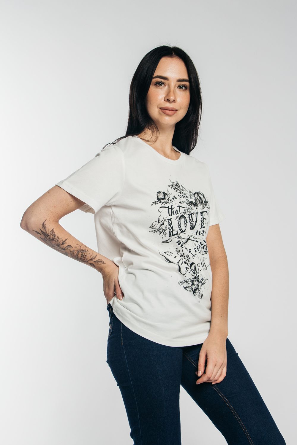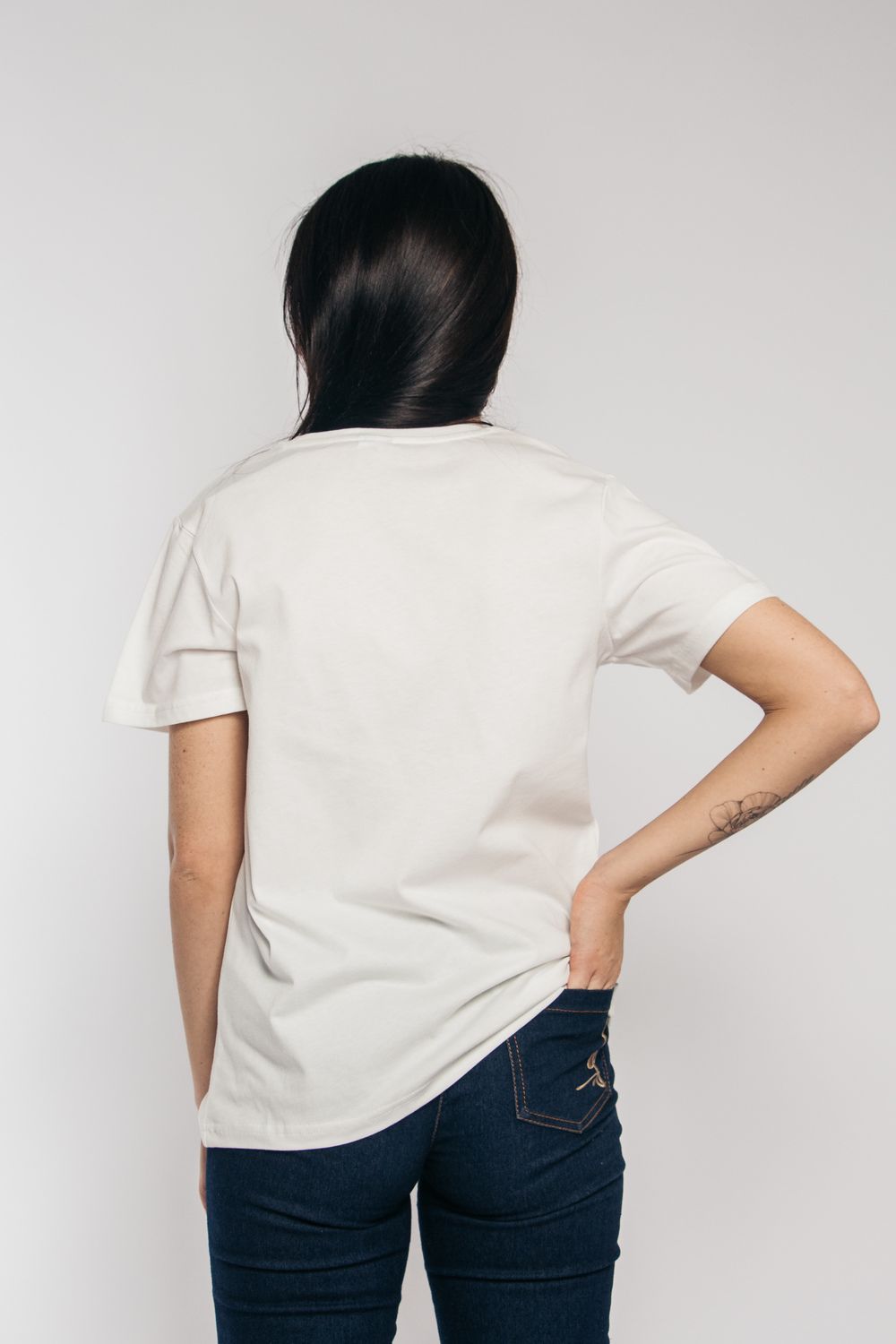 .Футболка классического фасона, прямого кроя, с коротким рукавом и округлым вырезом с усилением горловины. Декорирована принтом. Универсальная модель футболки отлично подойдет для любого образа и станет необходимой вещью в вашем гардеробе. Стильная женская футболка с принтом отличный подарок на День рождения. Посадка свободная, футболку будет удобно носить навыпуск или заправлять, отлично сочетается с юбкой, брюками с джинсами, а также можно одеть под пиджак, жакет или кардиган. Футболка выполнена из мягкого хлопкового полотна средней плотности приятного к телу. Ориентируйтесь при выборе на российские размеры, но, если предпочитаете более свободный крой, закажите на размер больше. Футболка будет хорошо сидеть на женщинах и девушках с любым типом фигуры. Стирать футболку с вещами похожего цвета и вынимать сразу после стирки. Гладить с изнаночной стороны. Модель рассчитана на рост 164-170 см.