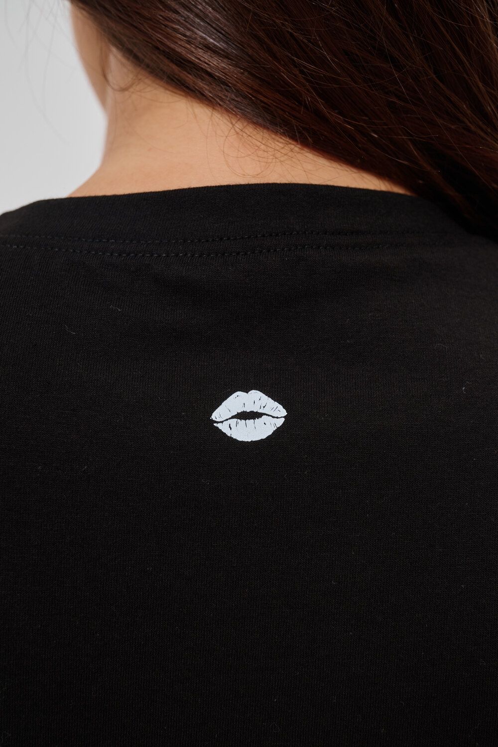Женская футболка приталенного силуэта, выполненная из мягкой и приятной к телу кулирки. Модель отличается лаконичностью и удобством благодаря укороченным рукавам и аккуратному круглому вырезу горловины. Изюминкой изделия является минималистичный принт в виде груб, выполненные в чёрном оттенке. Футболка универсальна, легко сочетается с различными элементами гардероба и станет отличным выбором для повседневной носки, подчёркивая женственную фигуру и индивидуальность своей обладательницы.