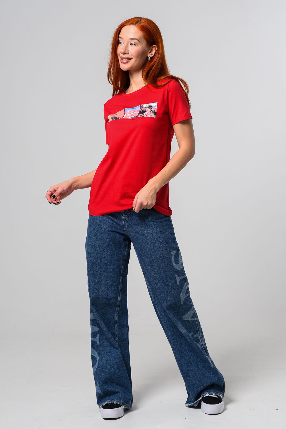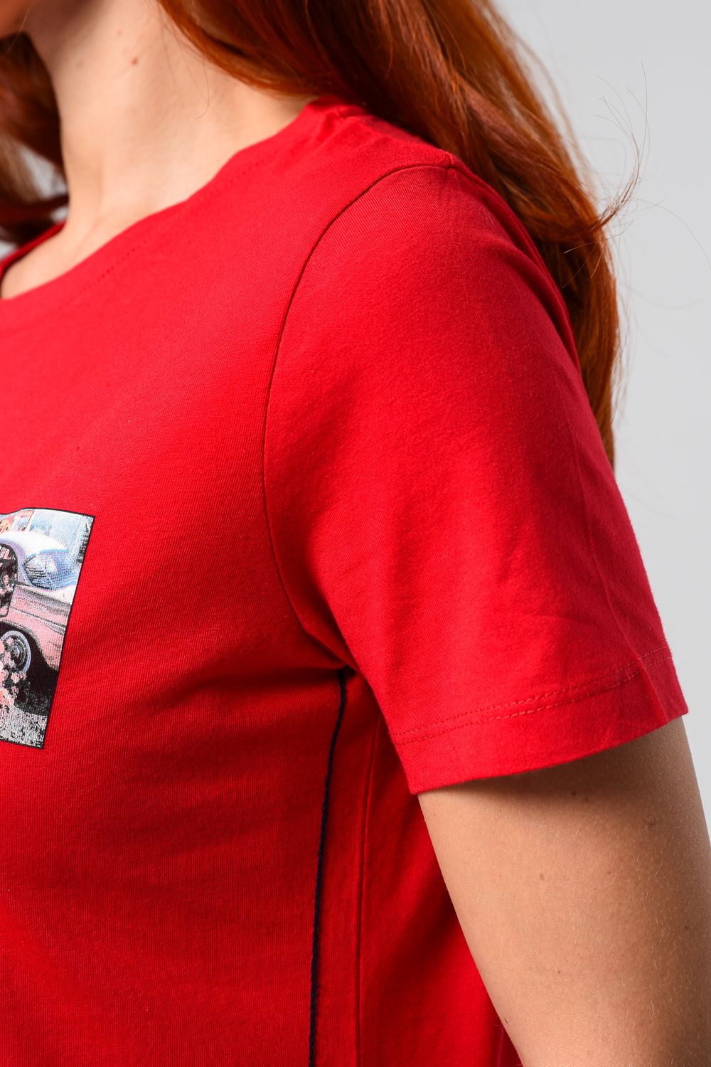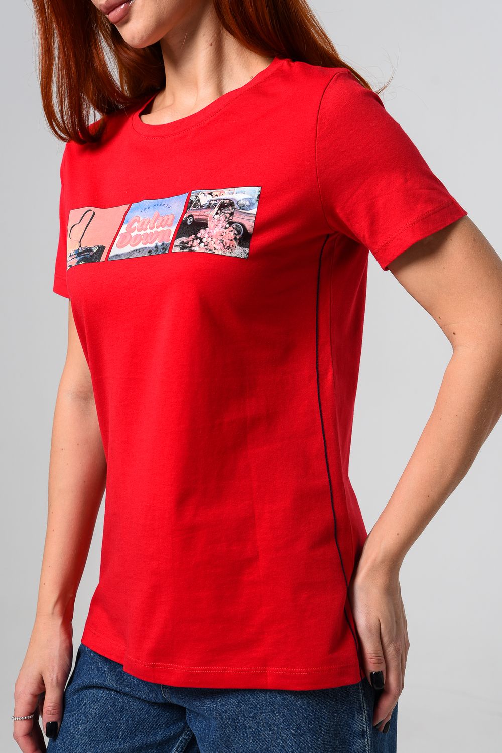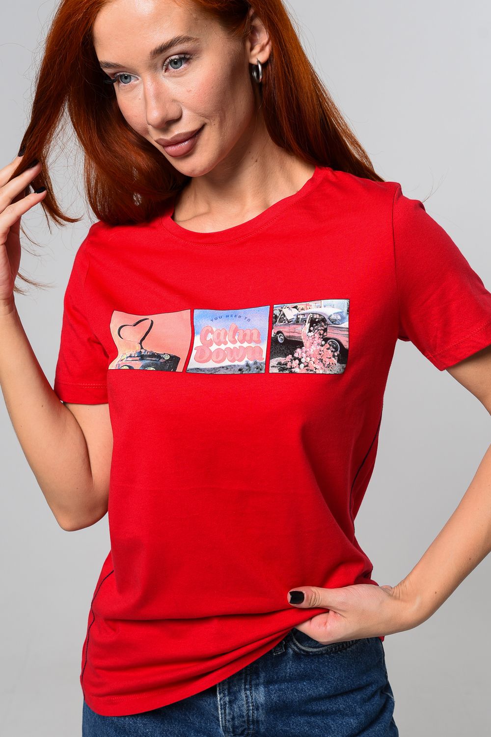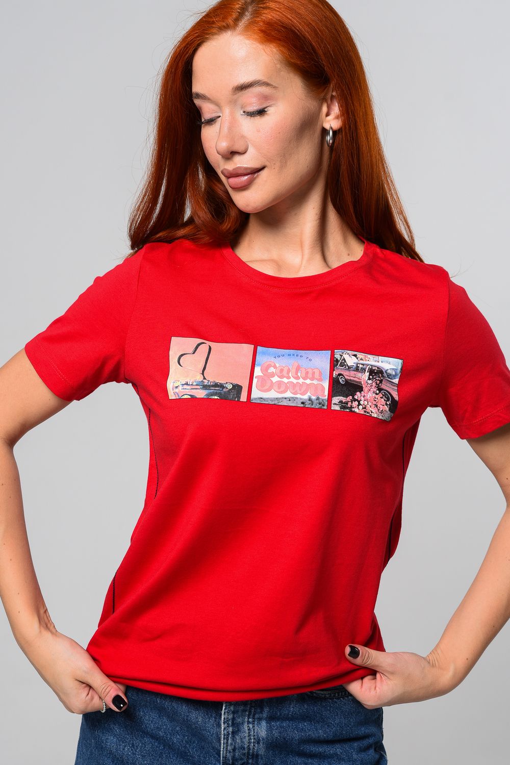 Футболка женская красная. Подойдет на повседневный образ, модель свободного кроя, не сковывает движения. Красивый принт придает изюминку футболке. Приятный и дышащий материал. Состав: хлопок 100%