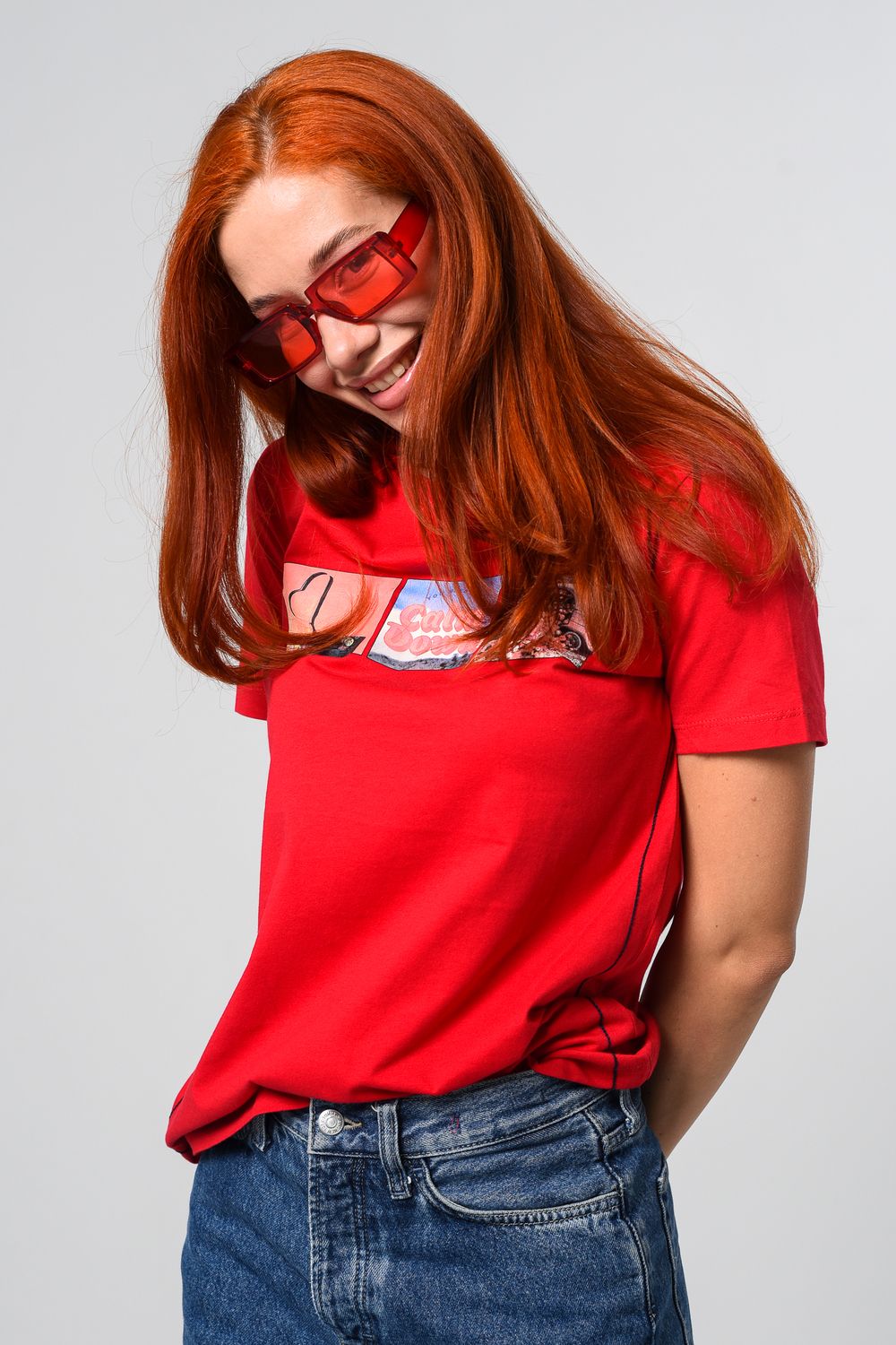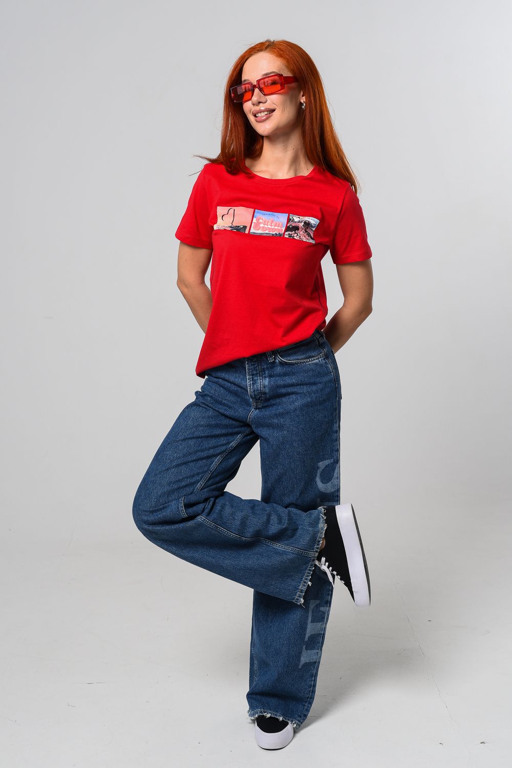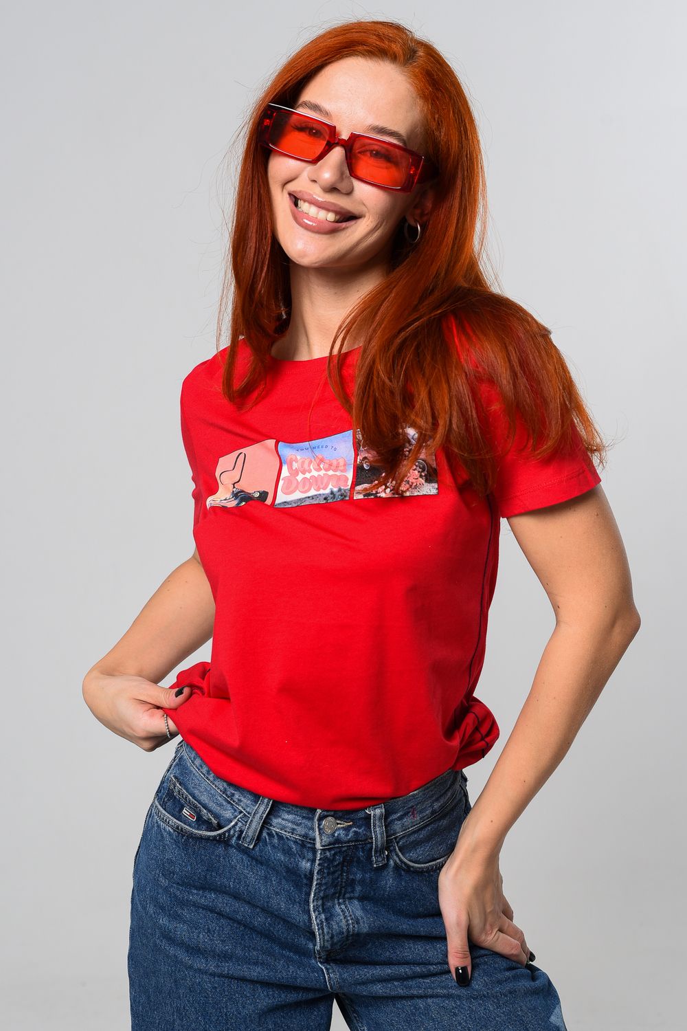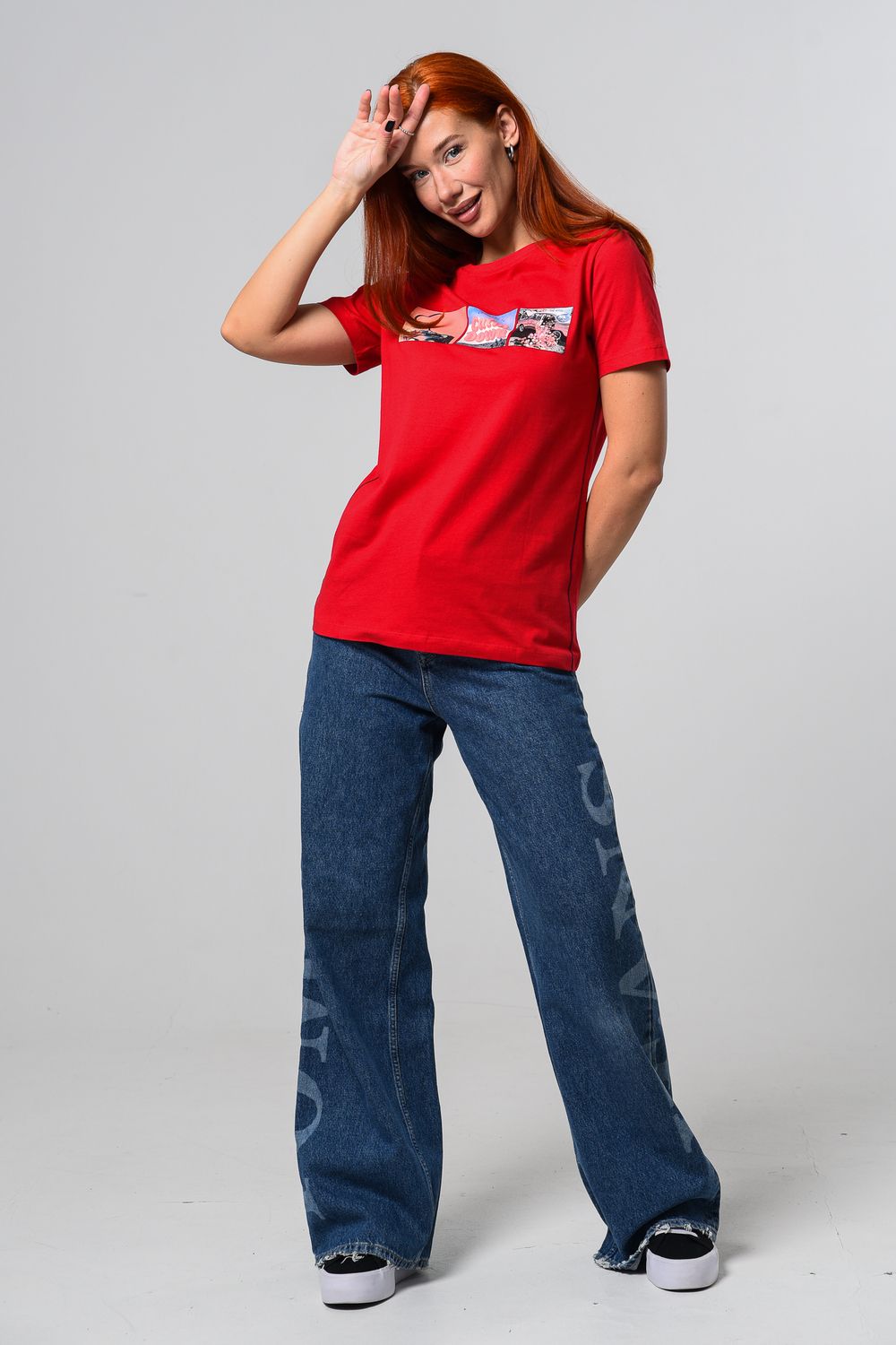 Футболка женская красная. Подойдет на повседневный образ, модель свободного кроя, не сковывает движения. Красивый принт придает изюминку футболке. Приятный и дышащий материал. Состав: хлопок 100%