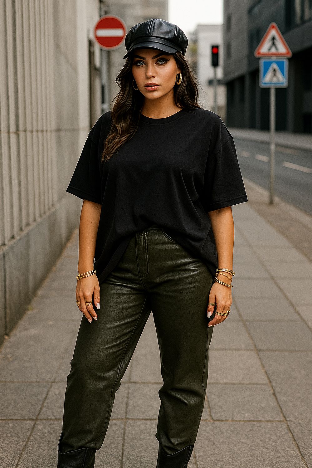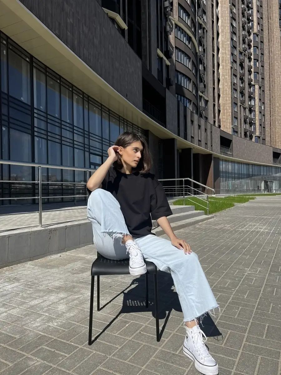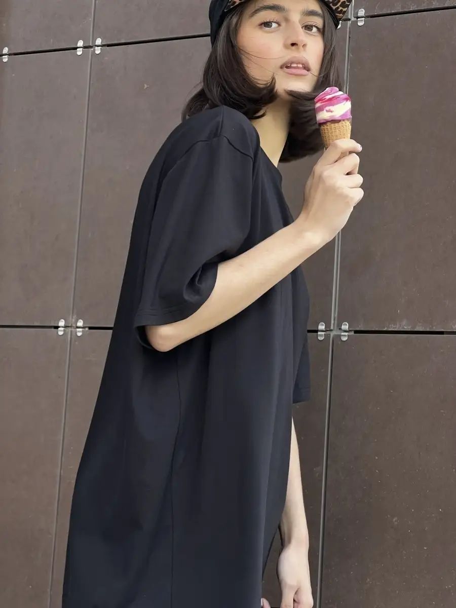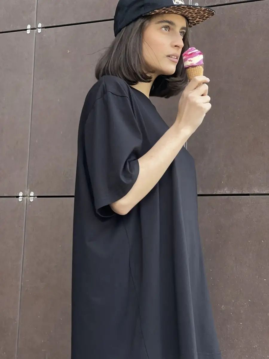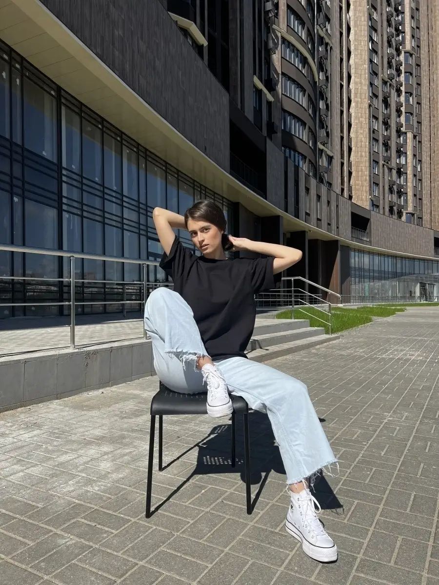 Футболка оверсайз из плотного кулирного полотна, очень комфортная в носке, базовая универсальная модель. Идеальна с джинсами, кедами, шортами юбкой, можно стилизовать с чем угодно и как удобно. Абсолютно базовая вещь. Футболка удлиненная, оверсайз, свободного широкого кроя. За счет длины дополнит многослойный образ, что видно на последних фотографиях в галерее. Подойдет для тренировок, бега, особенно на улице, скроет все неровности фигуры, да и саму фигуру скроет, если Вам захочется собрать неприступный образ. Так же можно завызять узелком края футболки и носить с брюками и джинсами низкой или высокой посадки. Подойдет как высоким так и миниатюрным девочкам. Если хотите семейный образх - на Вашем мужчине тоже отлично будет смотреться. Носите с удовольствием.
