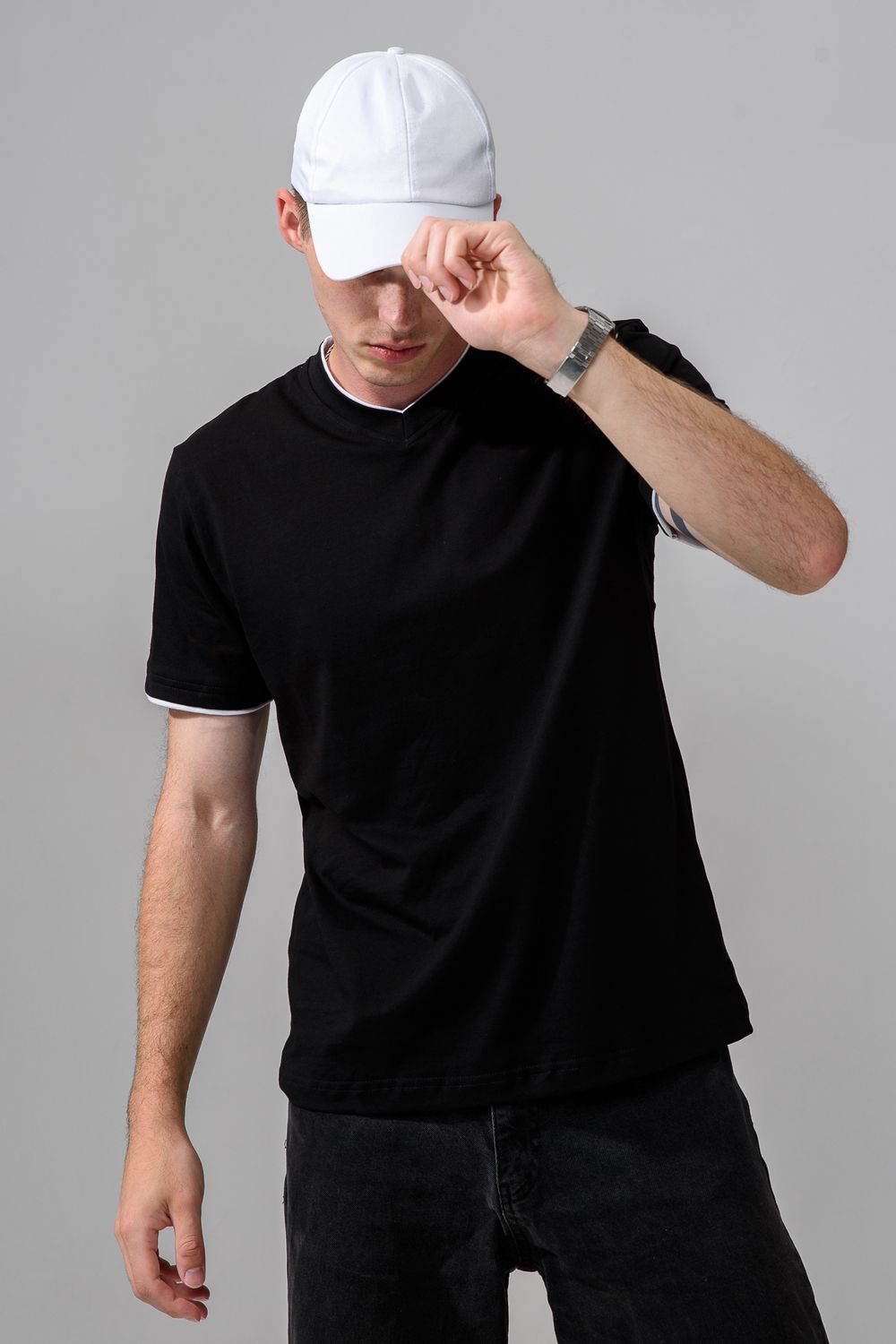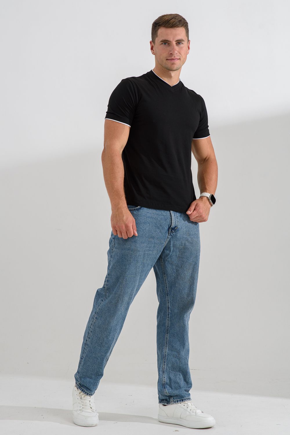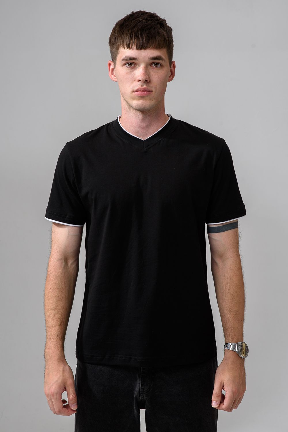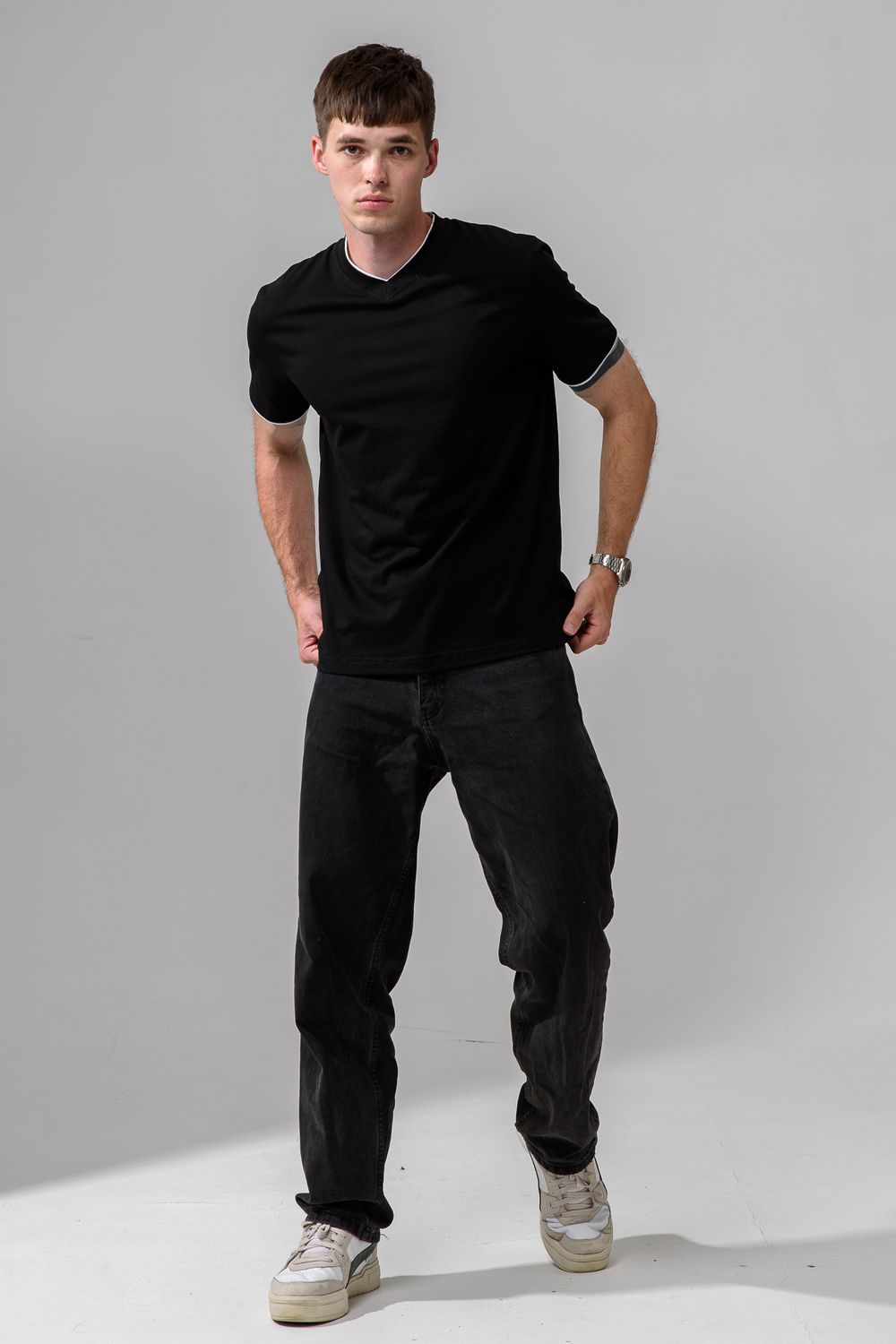 Футболка мужская однотонная с окантовкой из плотного дышащего хлопка. Модель в расслабленном молодежном стиле. Свободный прямой крой – база для любого гардероба. Представлены мягкие футболки стандартных размеров, подходят на высокий рост. С усиленным V-Образным вырезом и окантовкой, подойдет для тренировок, офиса, учебы, активного отдыха, туристических поездок, встреч с друзьями и дома.