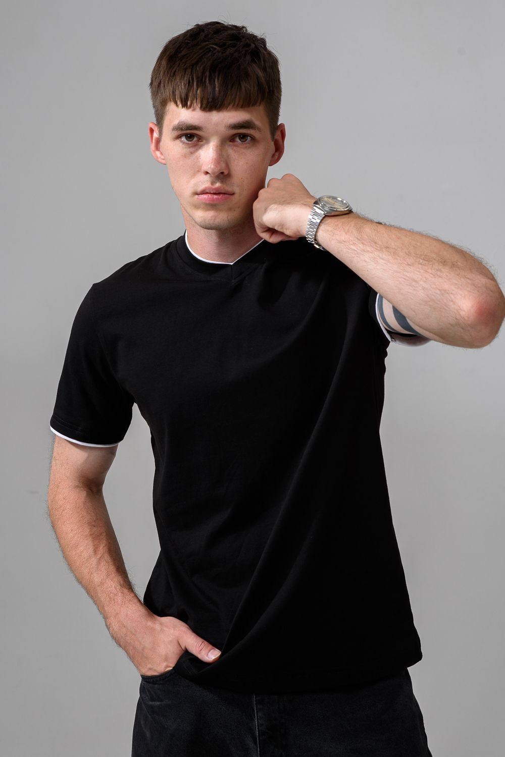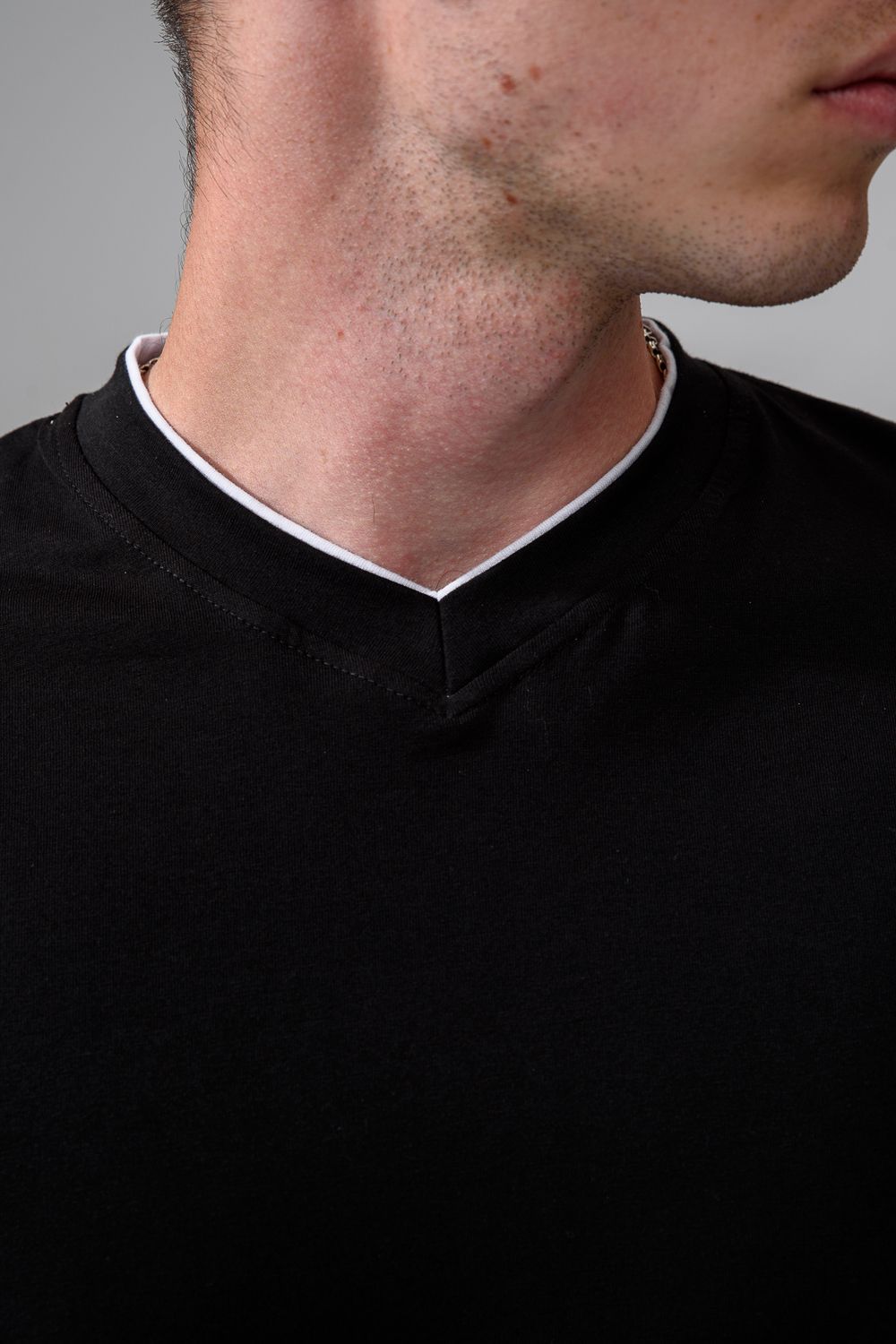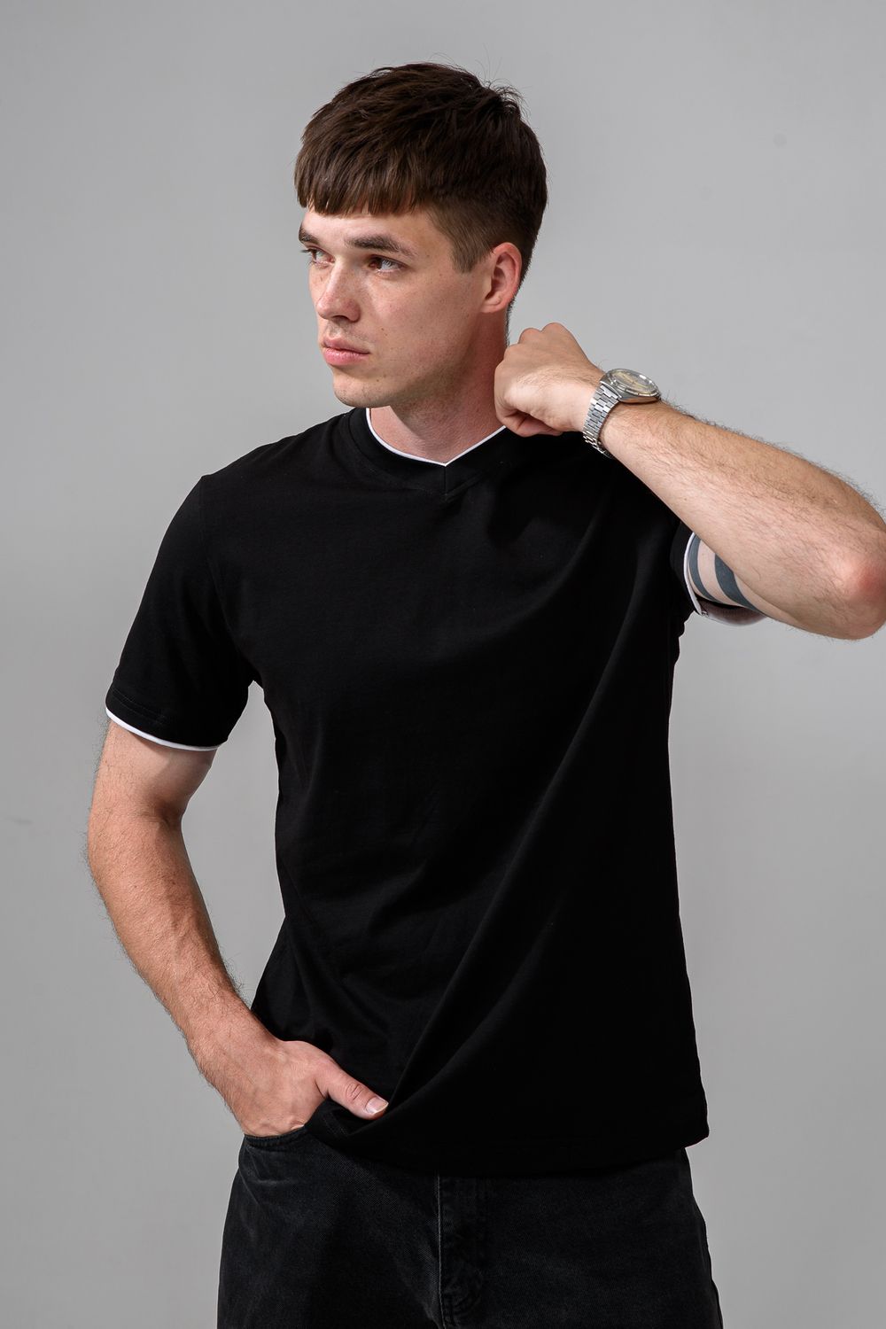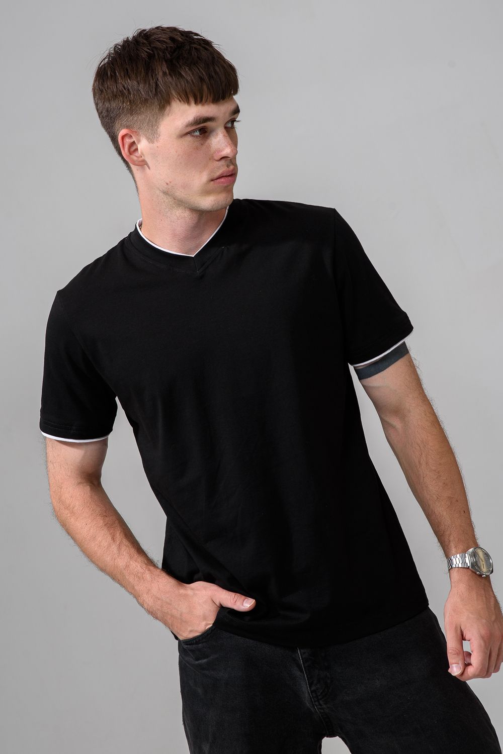 Футболка мужская однотонная с окантовкой из плотного дышащего хлопка. Модель в расслабленном молодежном стиле. Свободный прямой крой – база для любого гардероба. Представлены мягкие футболки стандартных размеров, подходят на высокий рост. С усиленным V-Образным вырезом и окантовкой, подойдет для тренировок, офиса, учебы, активного отдыха, туристических поездок, встреч с друзьями и дома.